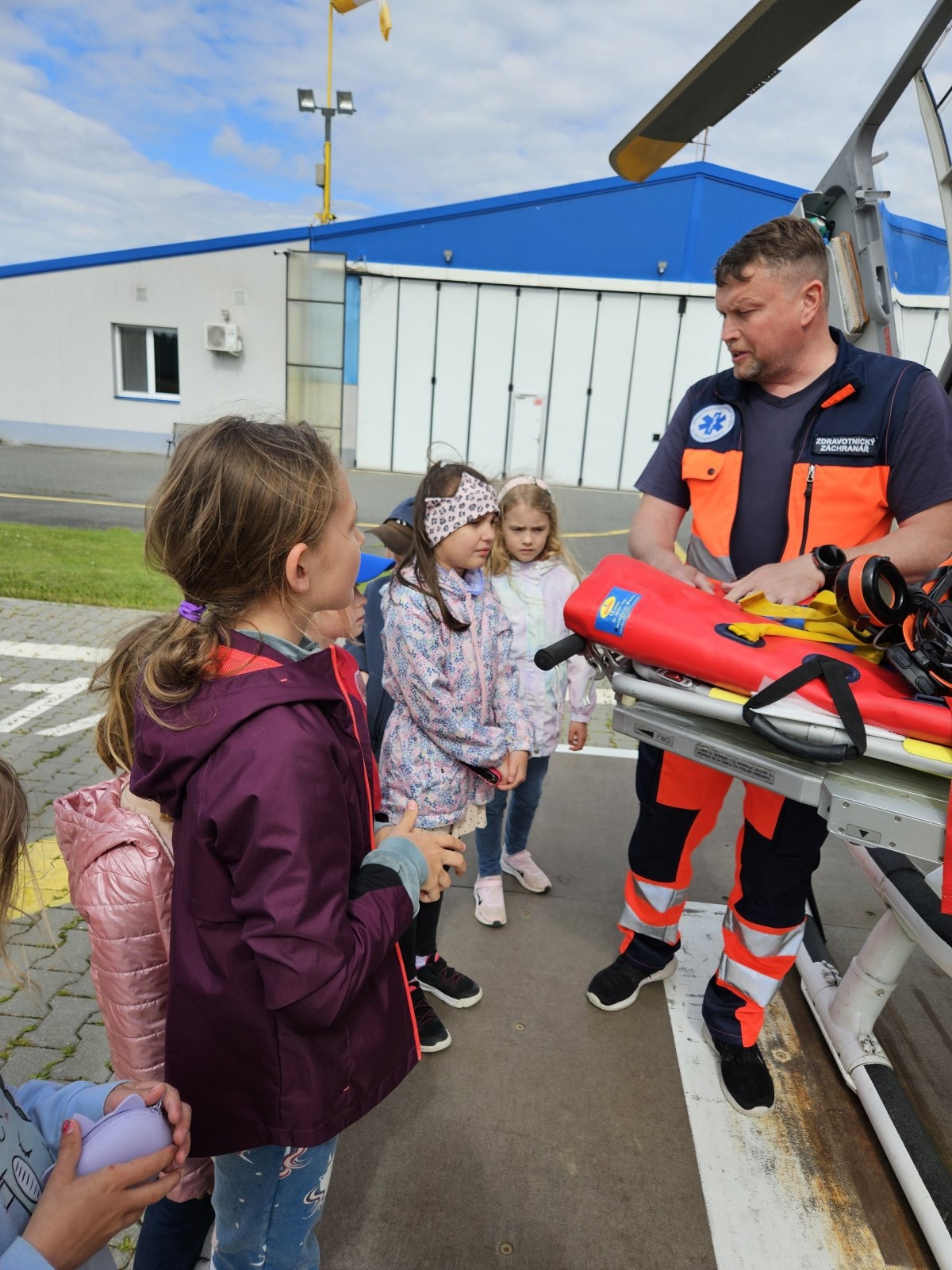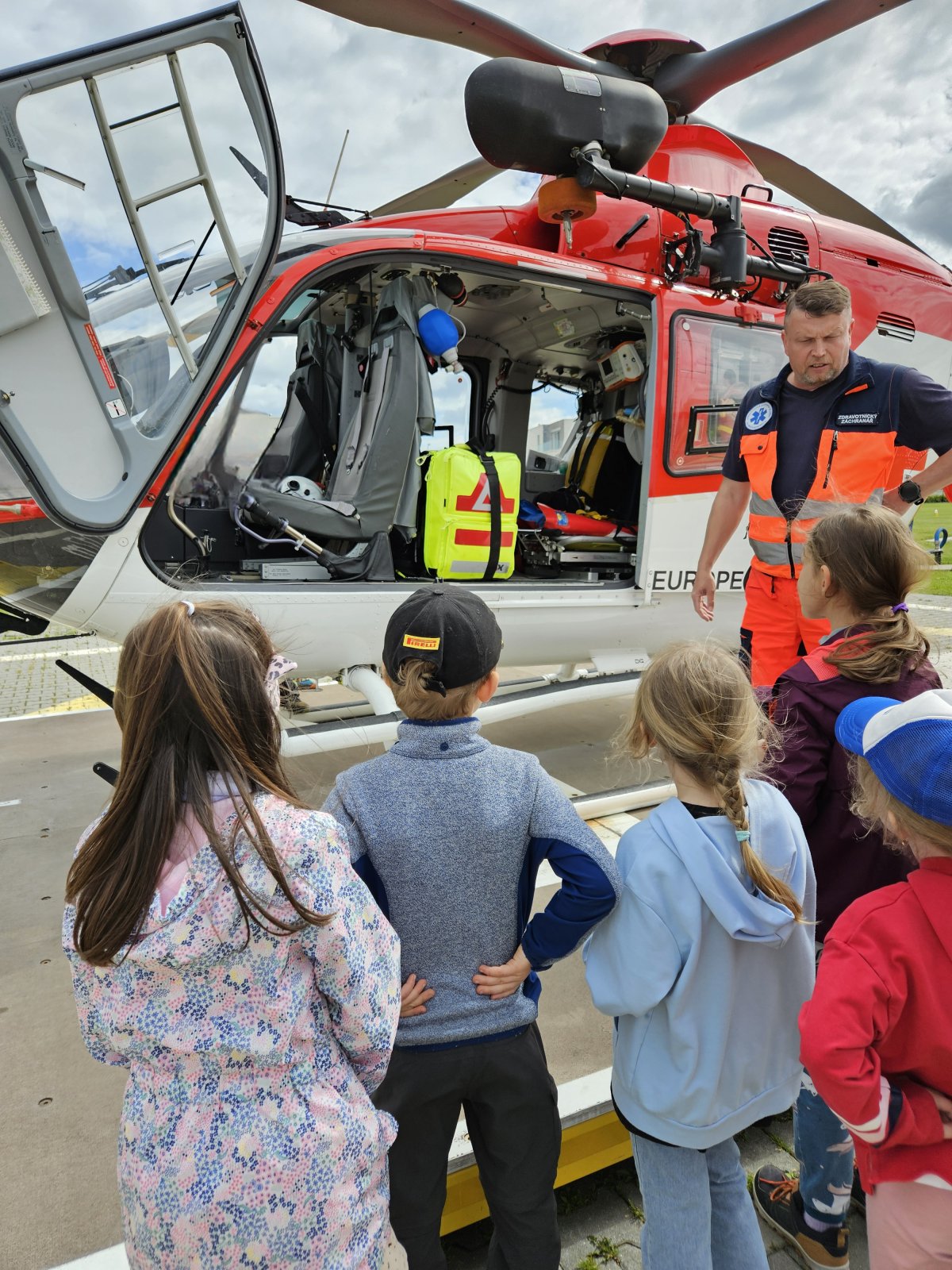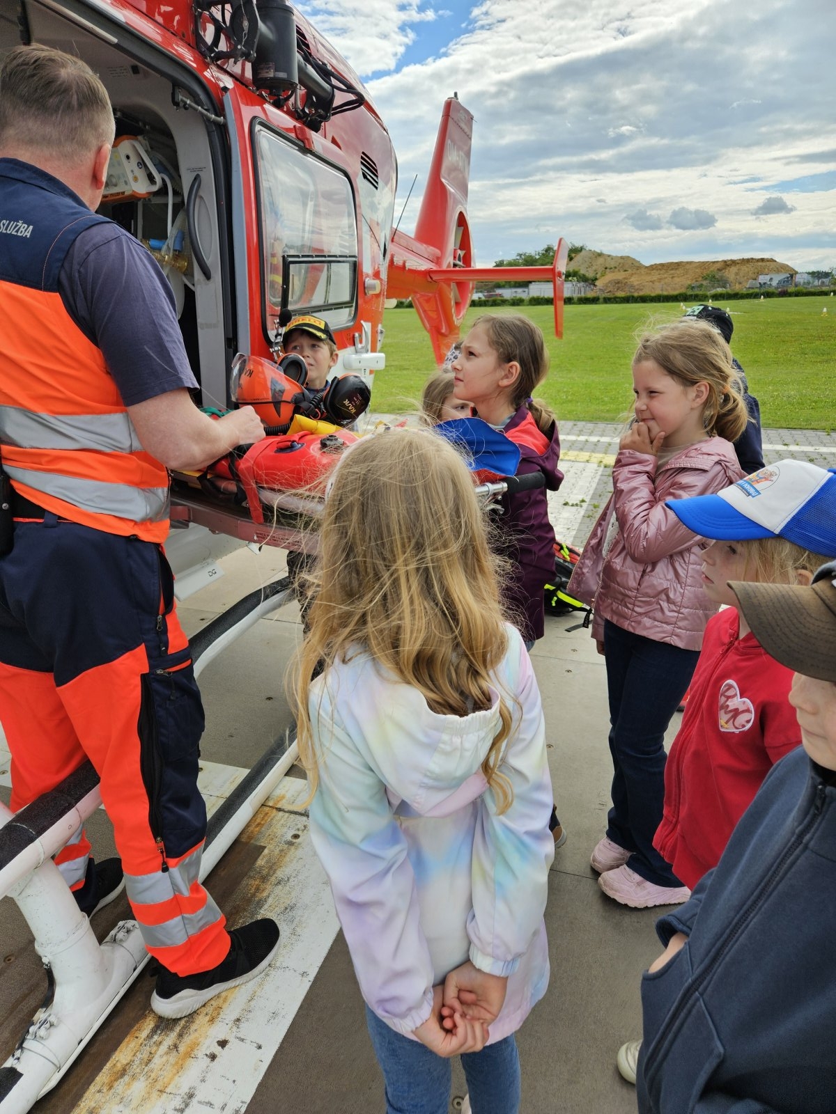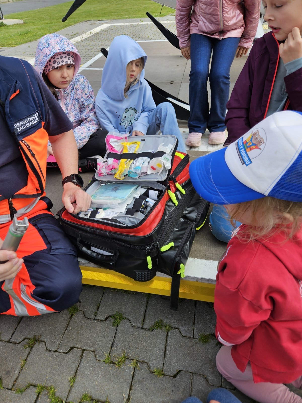 Součástí programu byla i návštěva záchranářského vrtulníku. Děti měly možnost sledovat jeho přistání a poslechnout si, jak vypadá práce leteckých záchranářů. Velký zájem vzbudila i ukázka terénního vybavení, které záchranáři běžně používají.