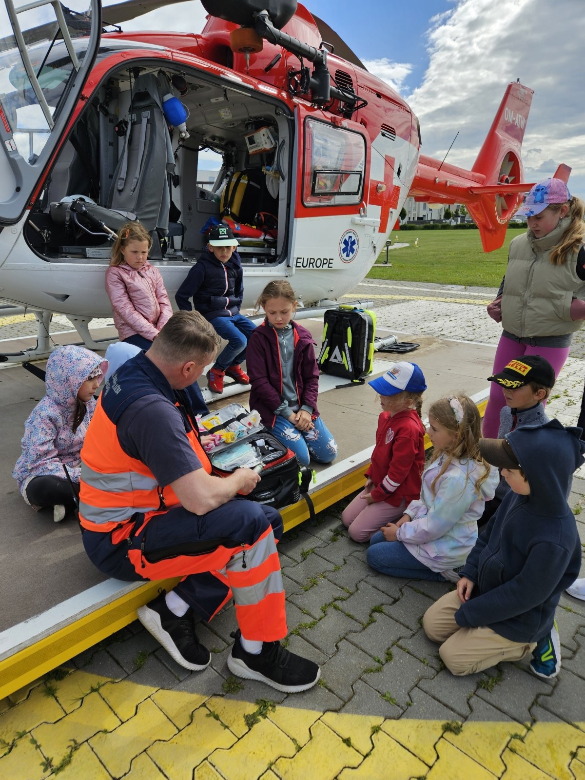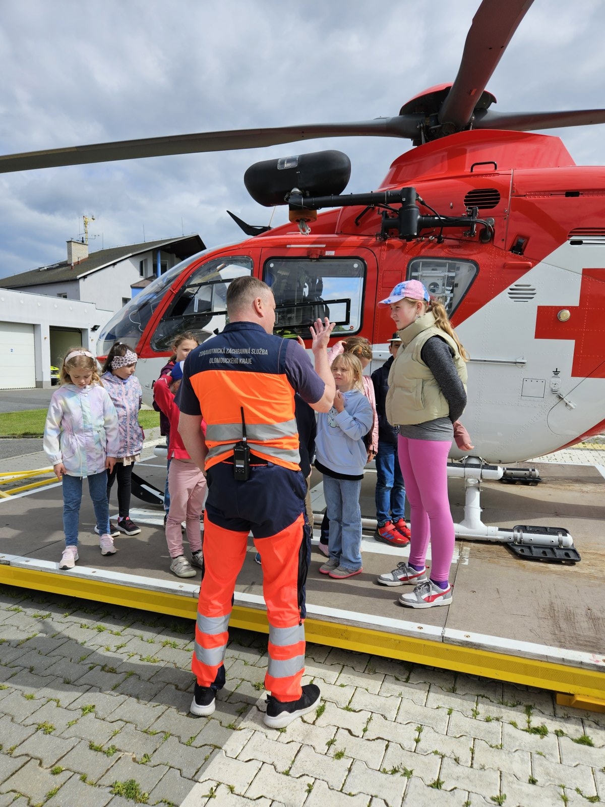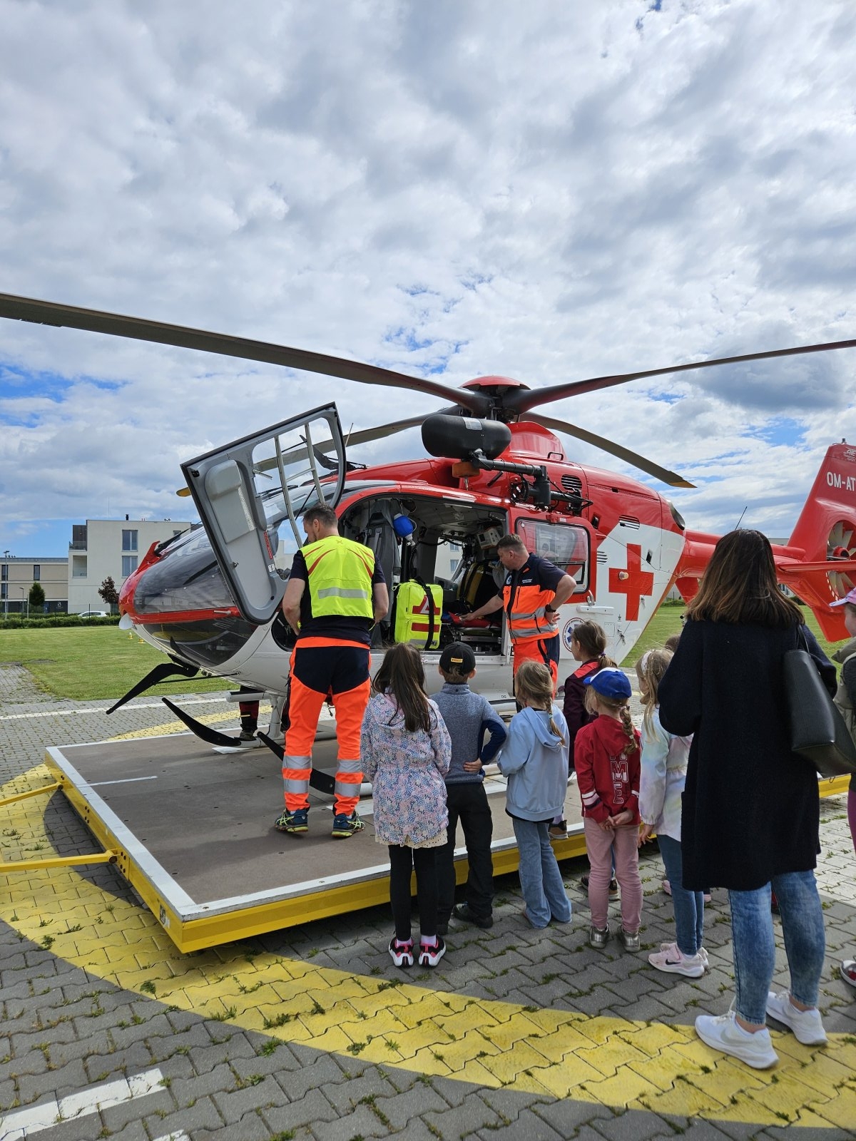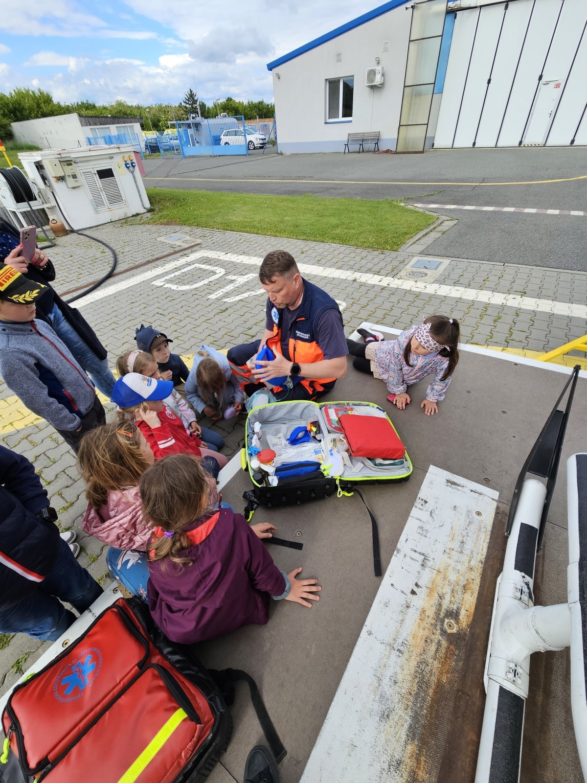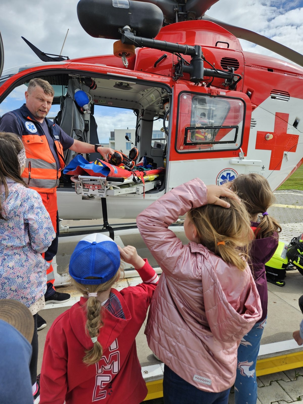 Součástí programu byla i návštěva záchranářského vrtulníku. Děti měly možnost sledovat jeho přistání a poslechnout si, jak vypadá práce leteckých záchranářů. Velký zájem vzbudila i ukázka terénního vybavení, které záchranáři běžně používají.