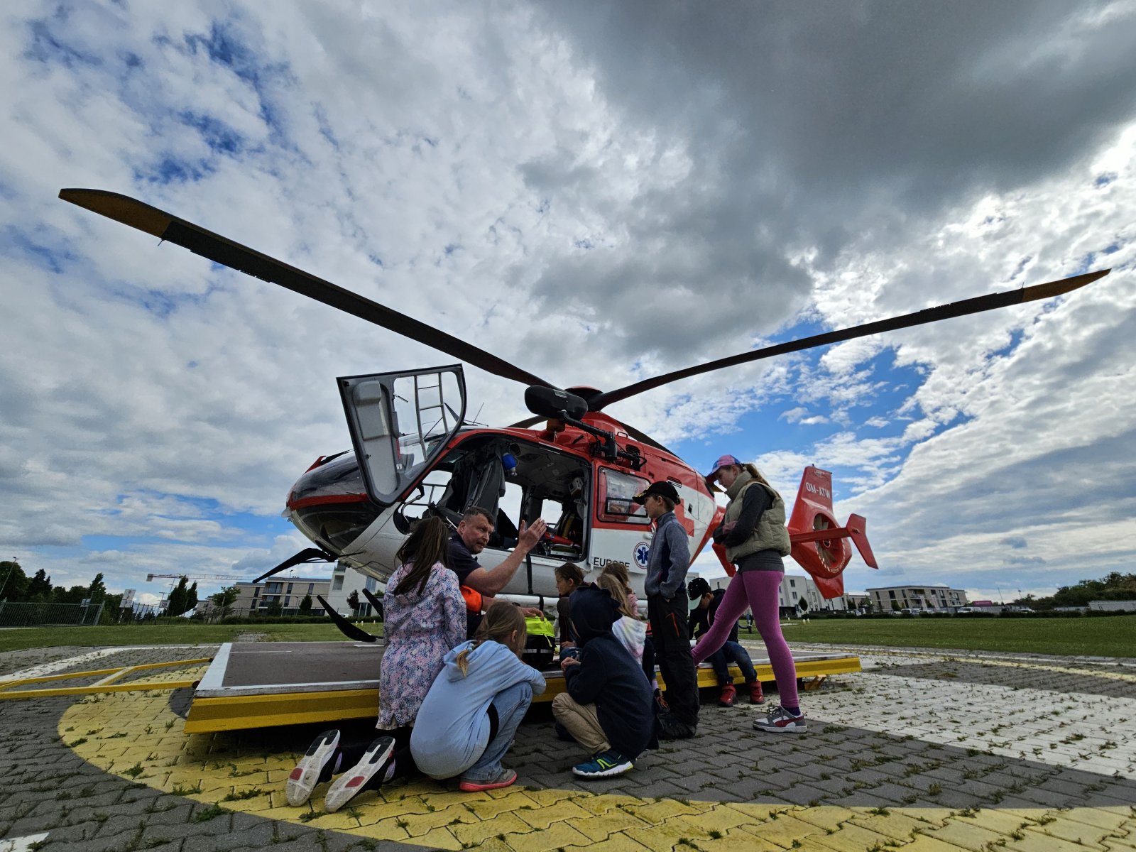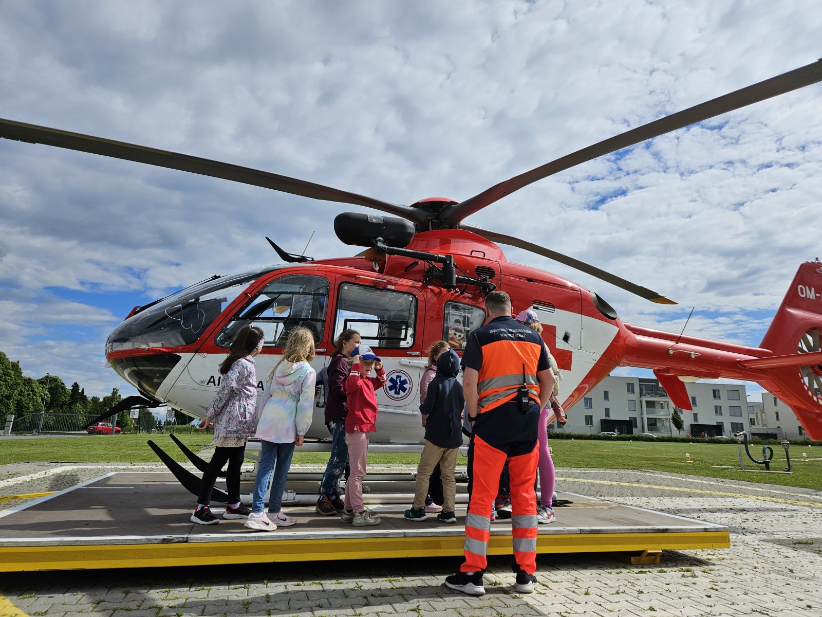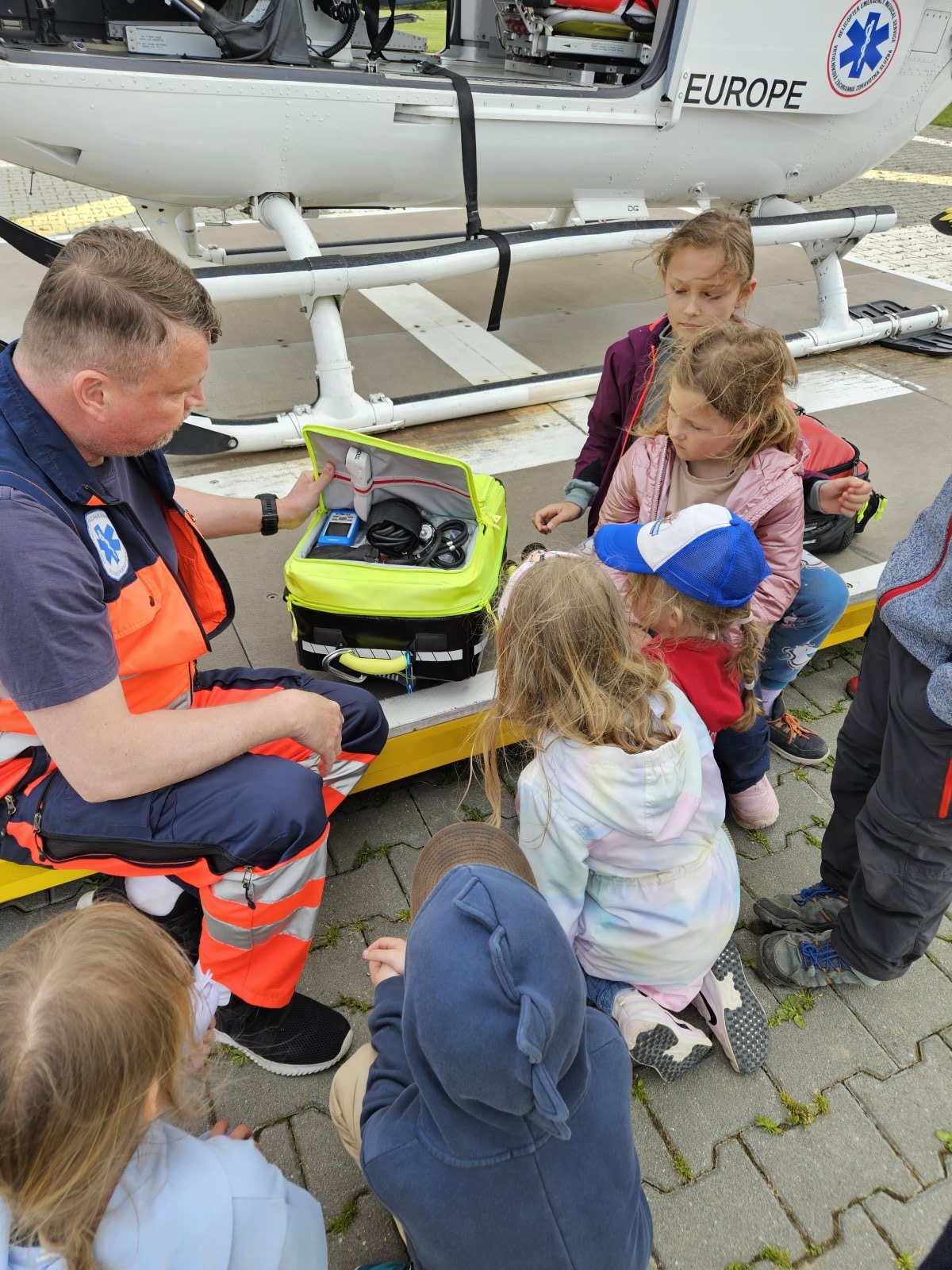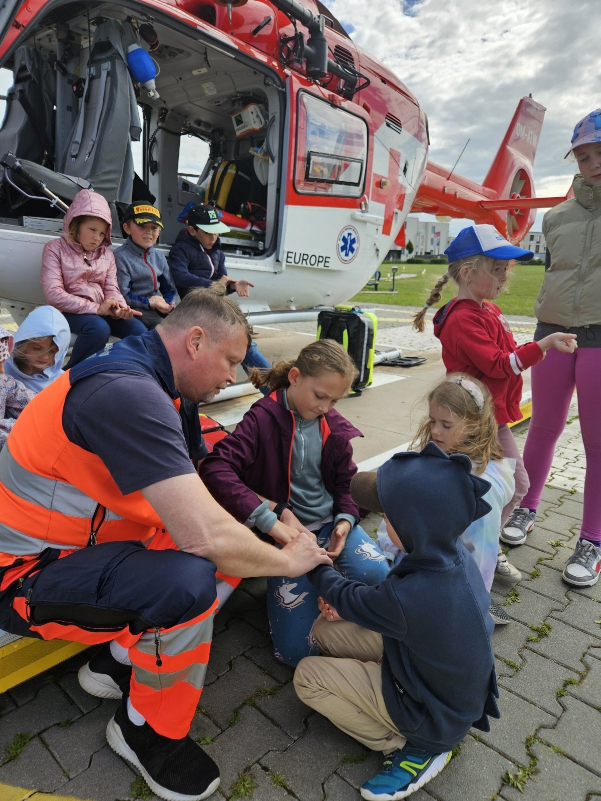 Součástí programu byla i návštěva záchranářského vrtulníku. Děti měly možnost sledovat jeho přistání a poslechnout si, jak vypadá práce leteckých záchranářů. Velký zájem vzbudila i ukázka terénního vybavení, které záchranáři běžně používají.