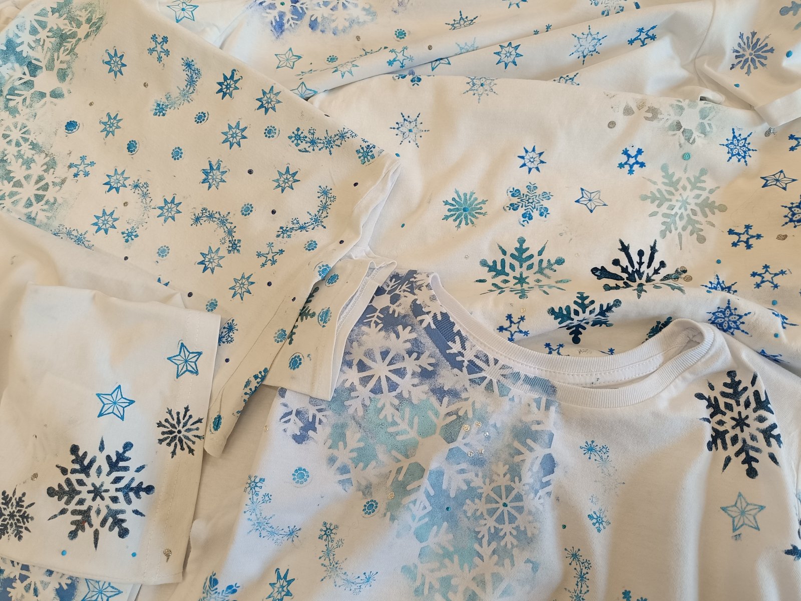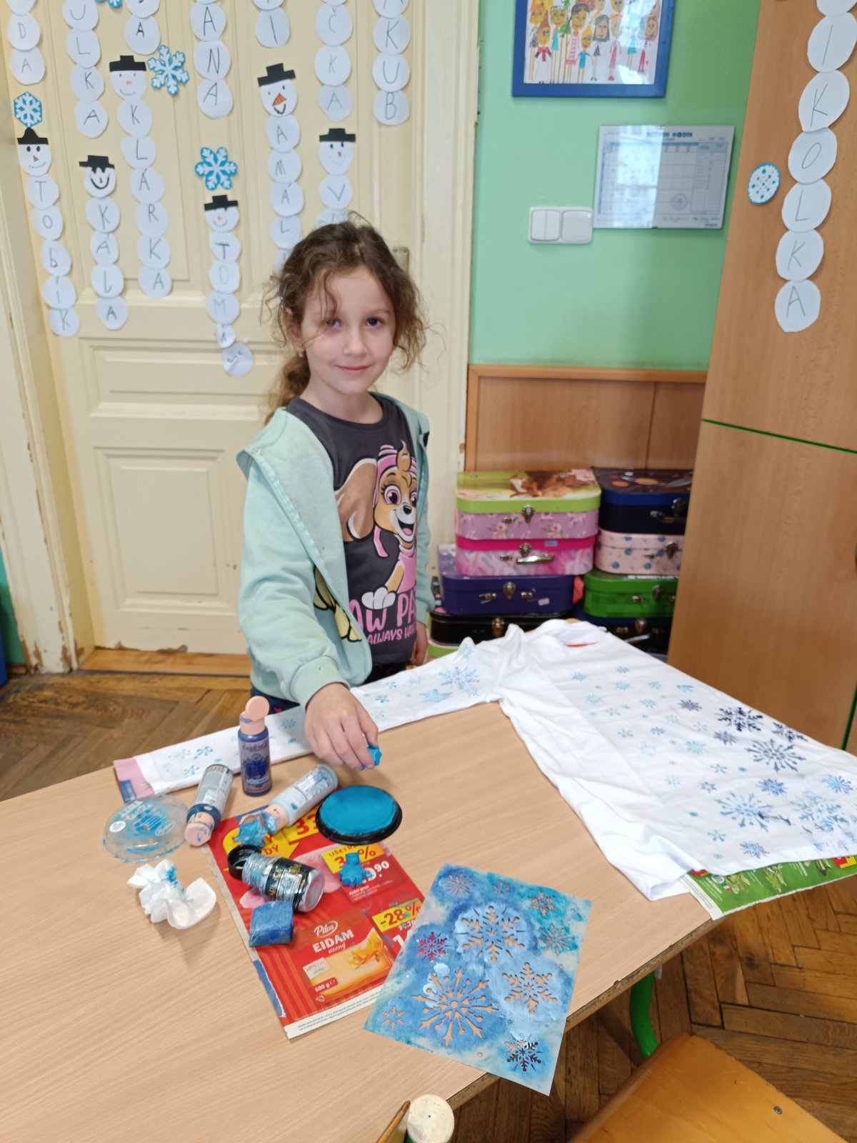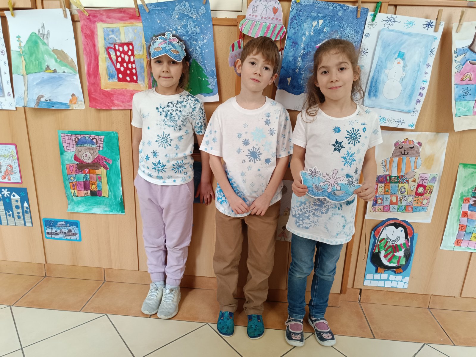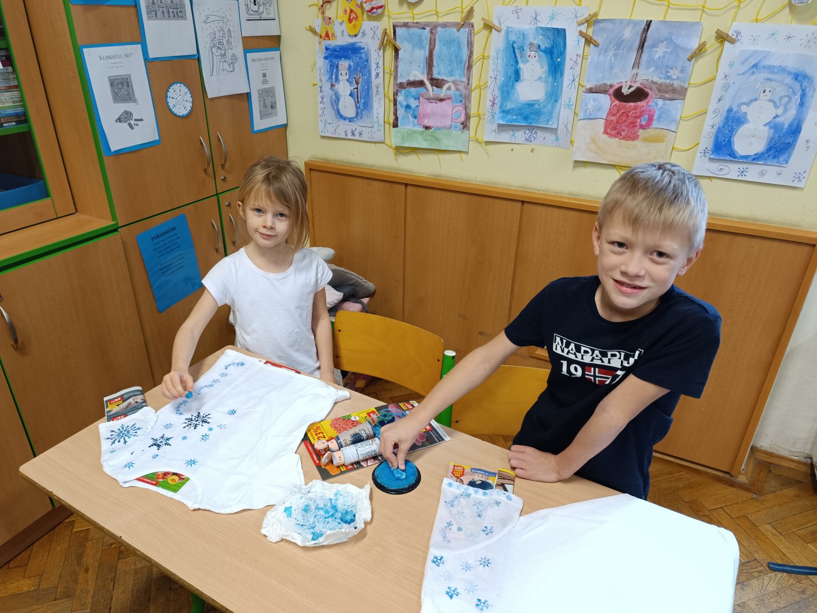 S využitím různých výtvarných technik, s použitím snad všech odstínů modré barvy a velkou dávkou šikovnosti a trpělivosti si vytvořily trička se zimní tematikou.