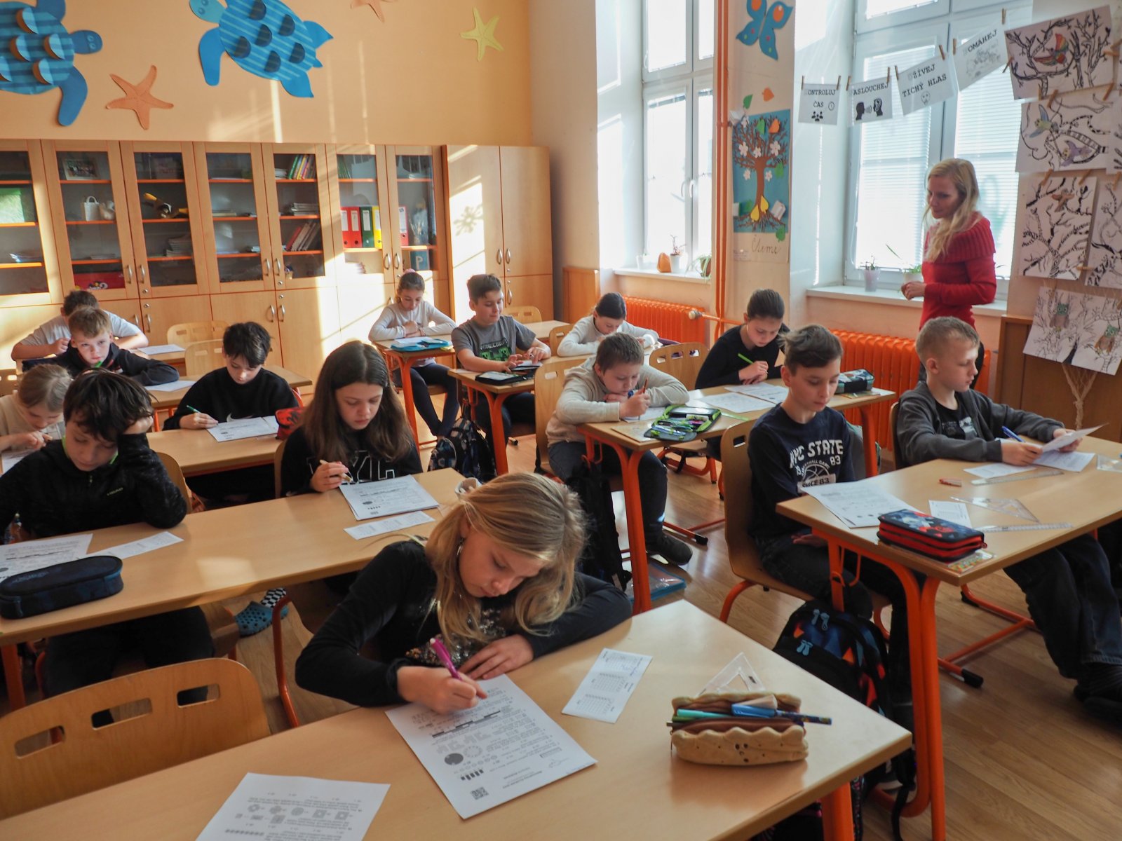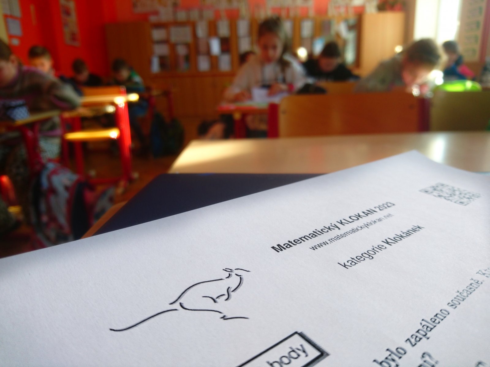 V pátek 17. března řešily děti od 2. do 9. ročníku logické úlohy letošního ročníku Matematického klokana. Žáci byli rozděleni do 4 kategorií podle věku, nejmladší Cvrčci řešili 18 úloh, Klokánci, Benjamíni a Kadeti přemýšleli nad 24 zajímavými úlohami. Celkem se soutěže zúčastnilo 334 dětí.