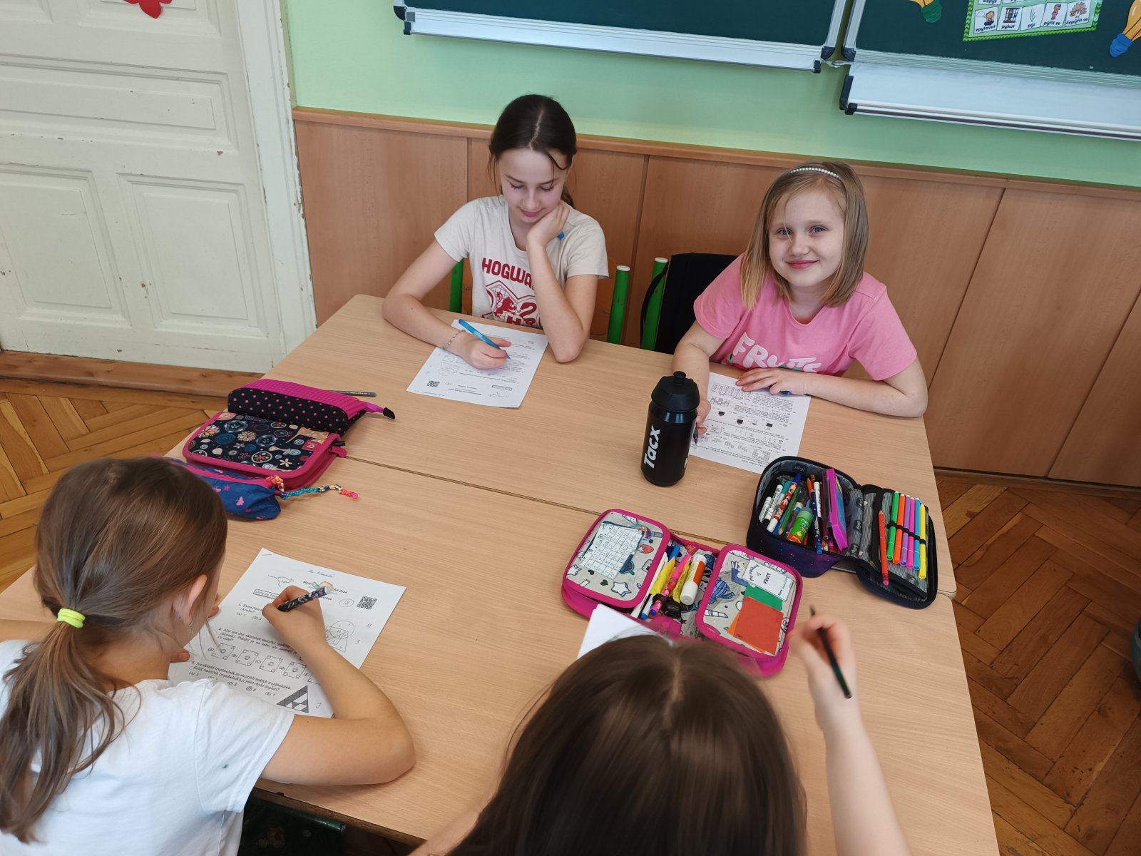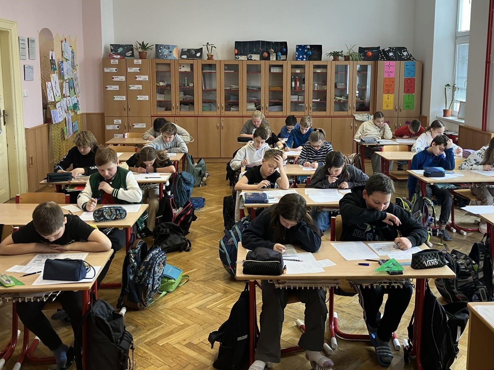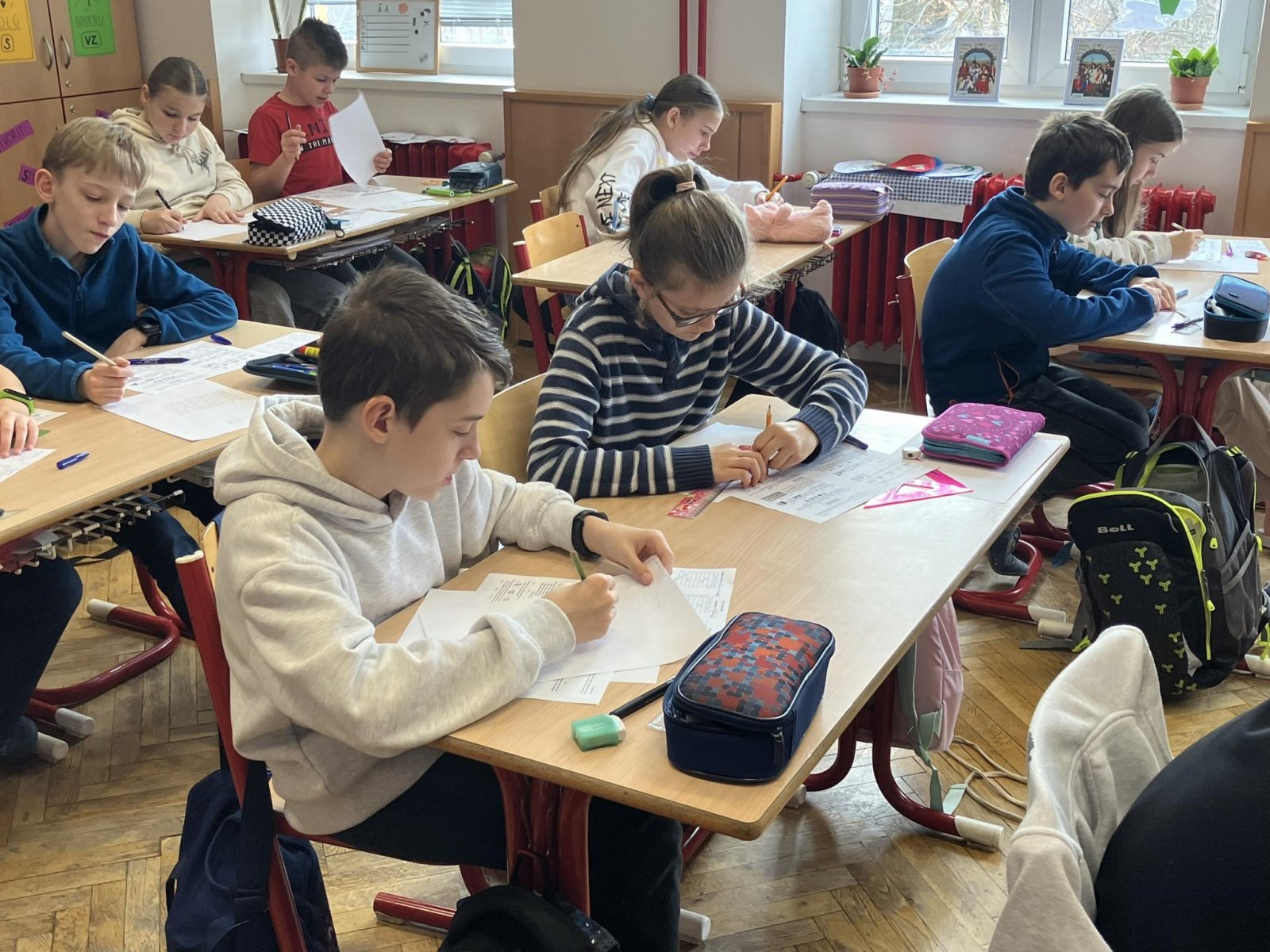 V pátek 22. března řešily děti od 2. do 9. ročníku logické úlohy letošního ročníku Matematického klokana. Žáci byli rozděleni do 4 kategorií podle věku, nejmladší Cvrčci řešili 18 úloh, Klokánci, Benjamíni a Kadeti přemýšleli nad 24 zajímavými úlohami. Celkem se soutěže zúčastnilo 322 dětí.