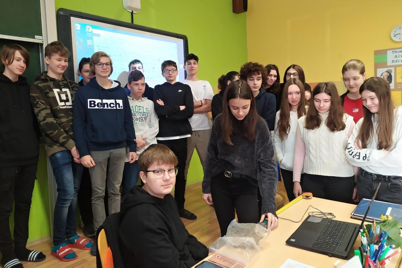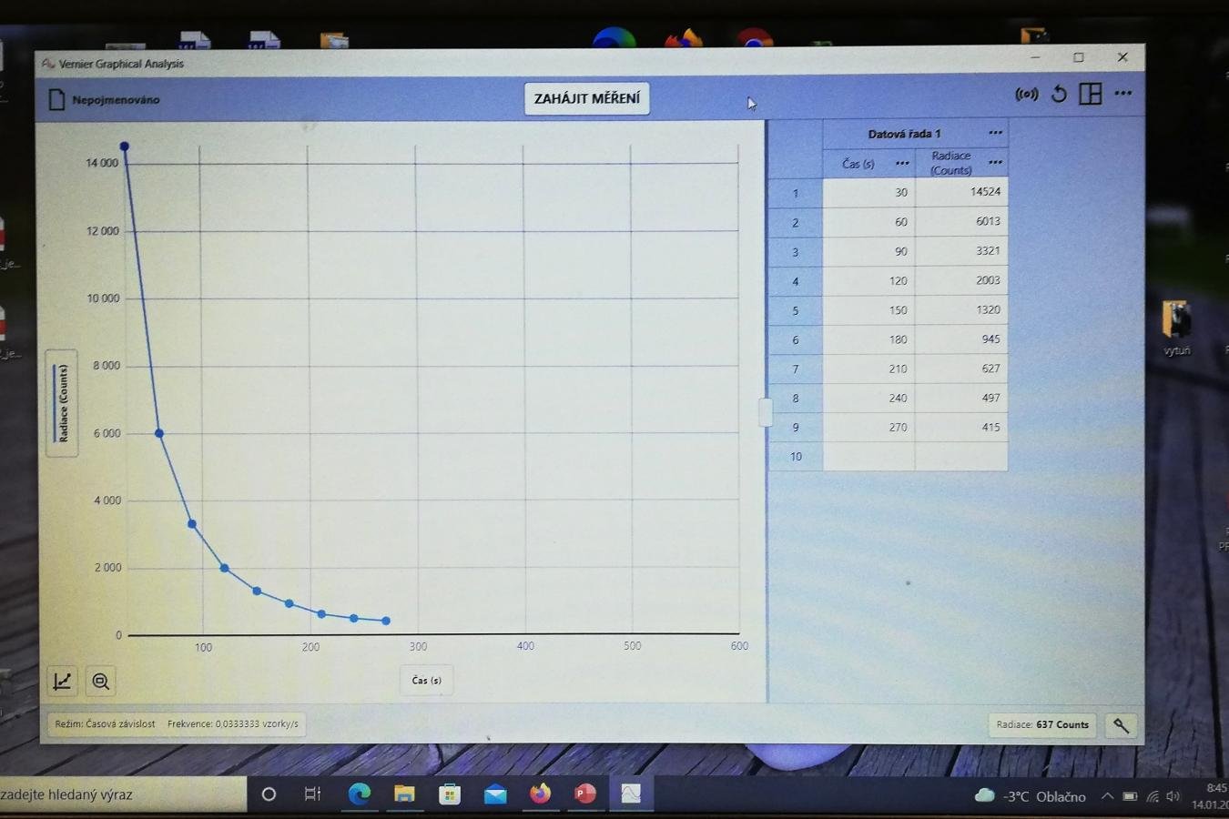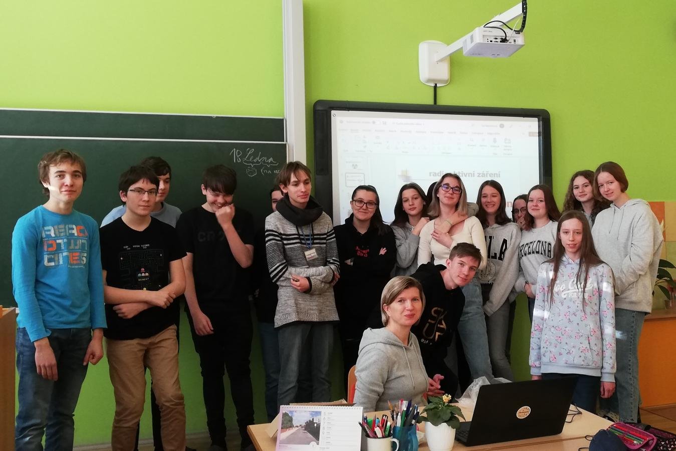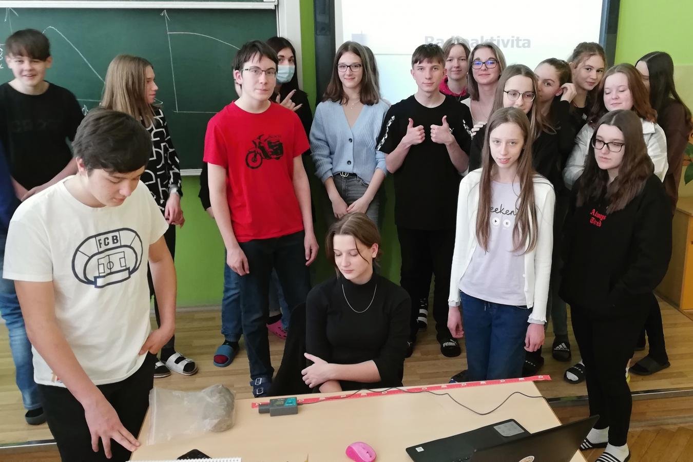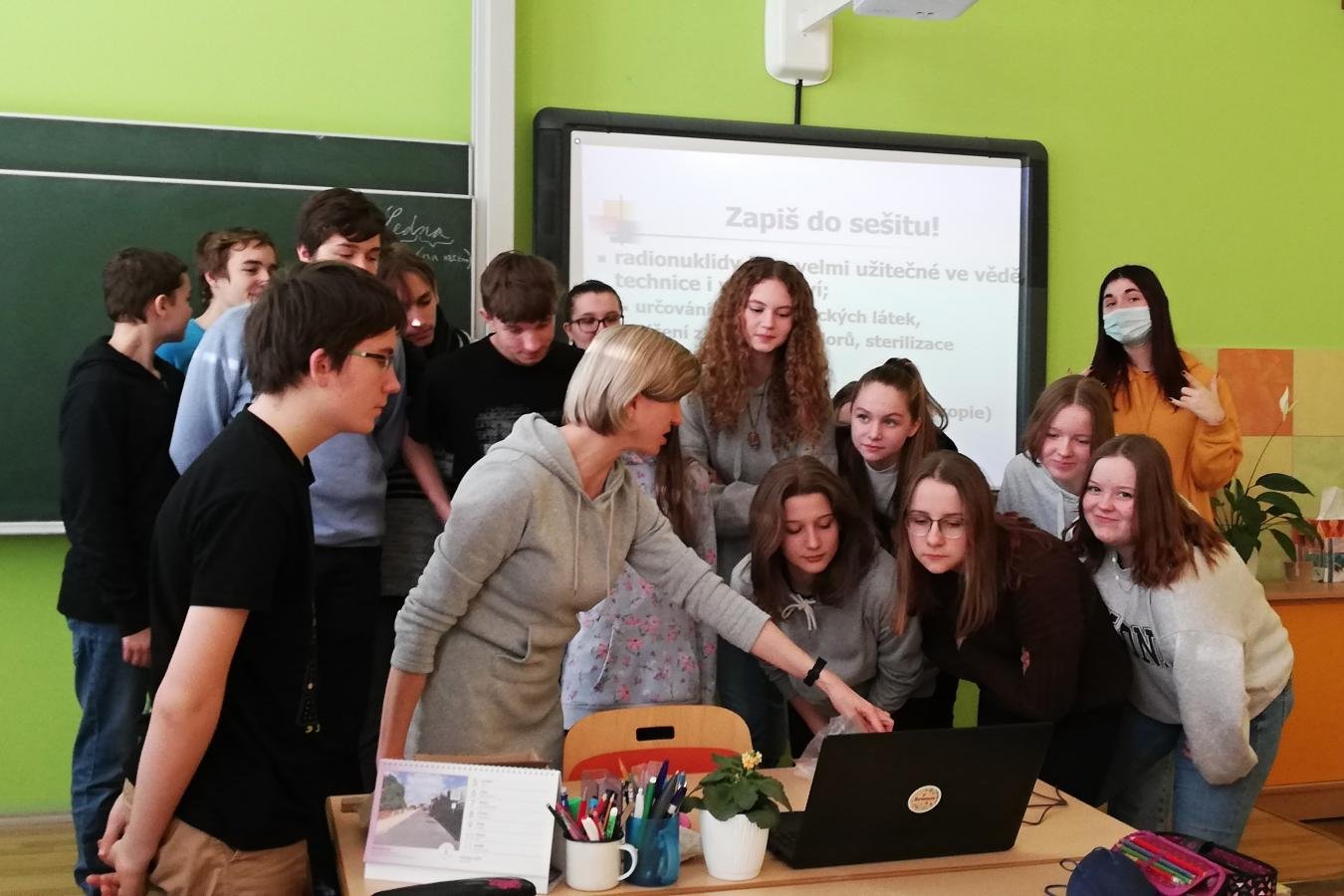 Jedním z nově zakoupených měřidel pro výuku přírodovědných předmětů je čidlo radiace, které poprvé využili žáci 9. ročníku v hodině fyziky v rámci tematického celku Jaderná energie. Žáci totiž měli za úkol zjistit intenzitu radioaktivního záření v závislosti na vzdálenosti od zdroje. Experiment spočíval v posunování čidla každých 30 sekund o 5 centimetrů od zdroje záření. Výsledkem měření byl graf, který dokazoval, že s rostoucí vzdáleností počet zachycených částic klesá. Zkoušeli jsme také změřit intenzitu záření uranového skla a možné způsoby stínění. Po společné diskuzi žáci došli k závěru, že držet se dostatečně daleko od zdroje záření je přirozený způsob jednoduché radiační ochrany.