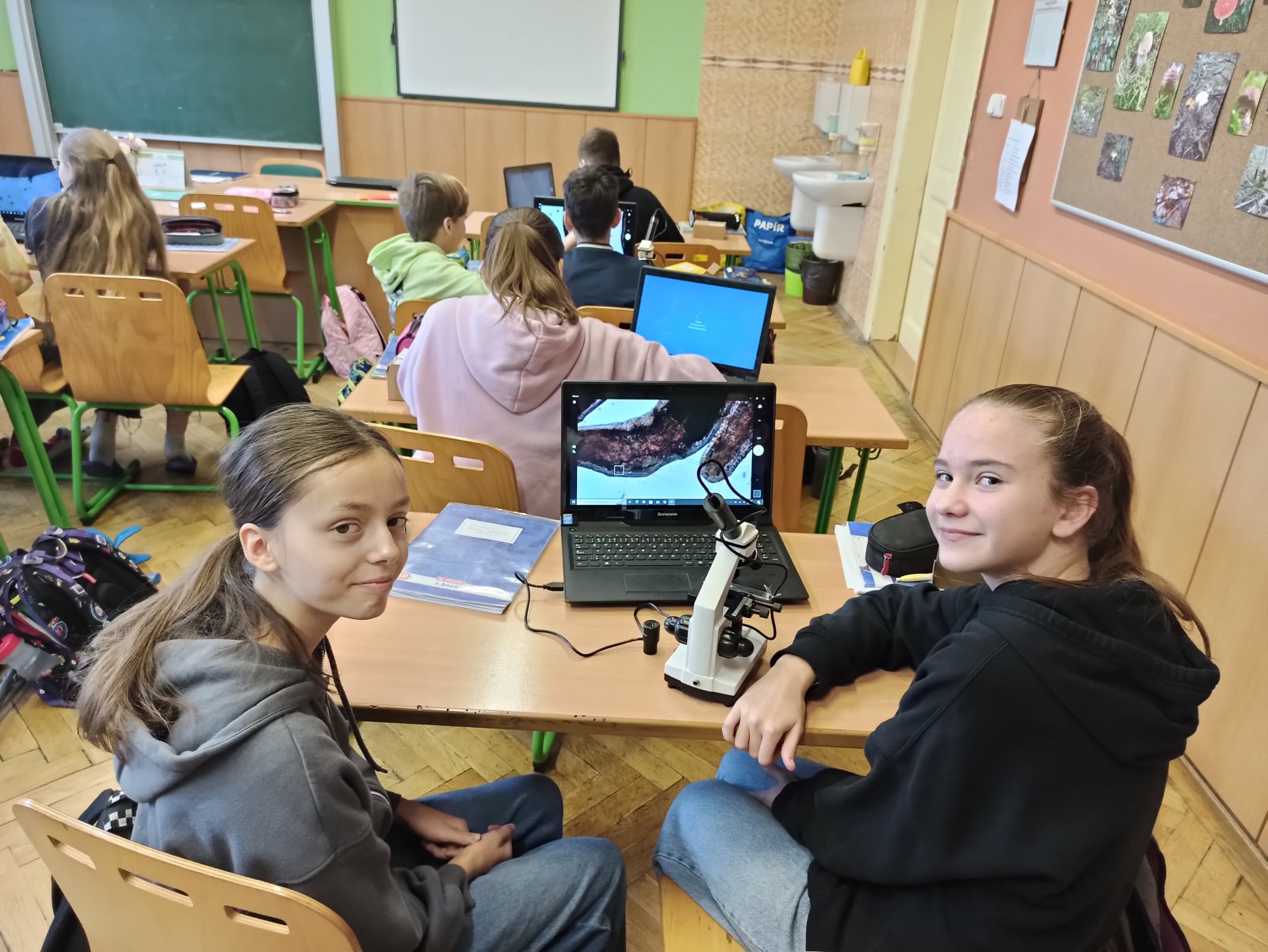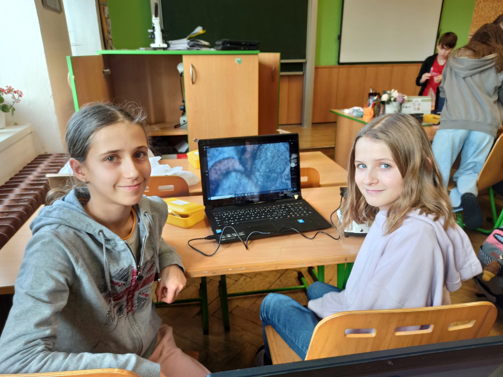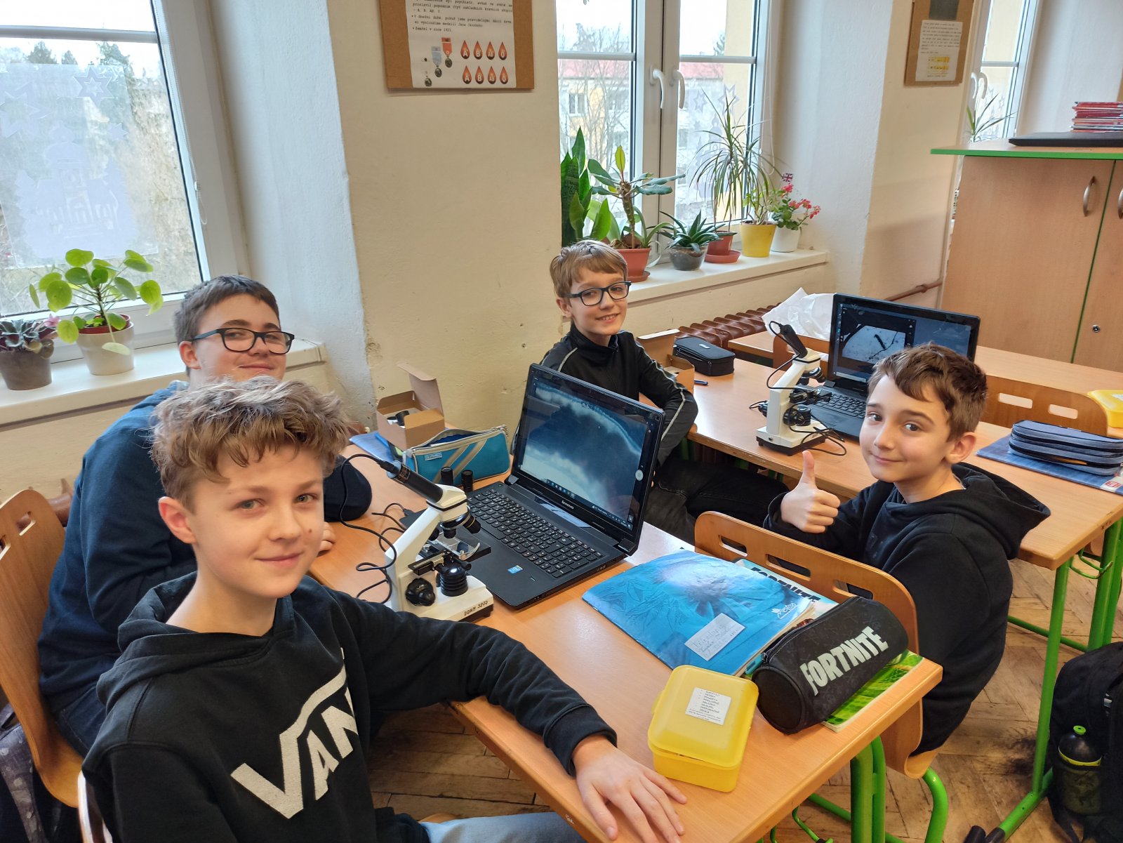 Žáky šestých ročníků čekalo v hodině přírodopisu velké překvapení. Jelikož tématem hodiny byli kroužkovci, do kterých patří i nitěnky (drobní živočichové podobní malé žížale), naskytla se ideální příležitost mikroskopem nahlédnout přímo do živého organismu. Po zmobilizování odvahy a přípravě preparátu již nic nestálo v cestě prohlédnout si její vnitřní prostředí – dlouhou trávicí trubici, kolem které se vinou pulzující cévy, svalovou tkáň, pokožku a kutikulu. Pro žáky to byl velký zážitek a z hodiny odcházeli plni dojmů.