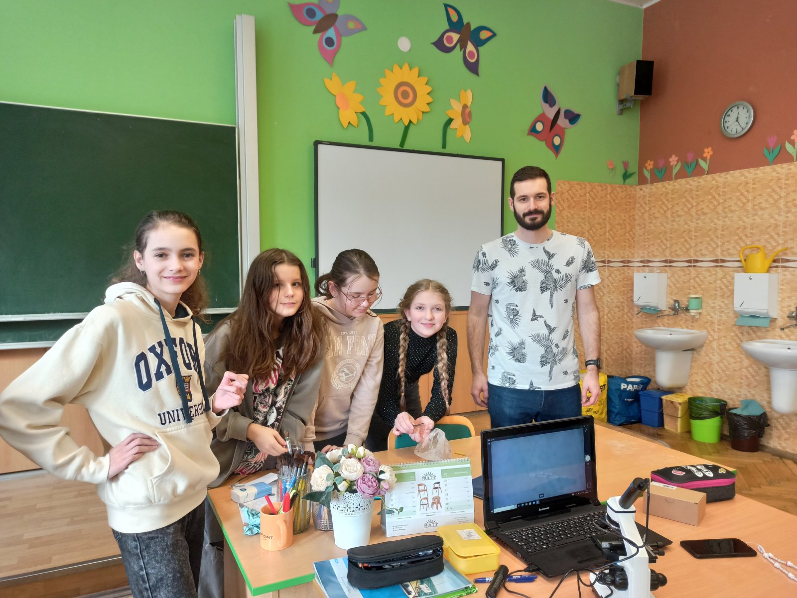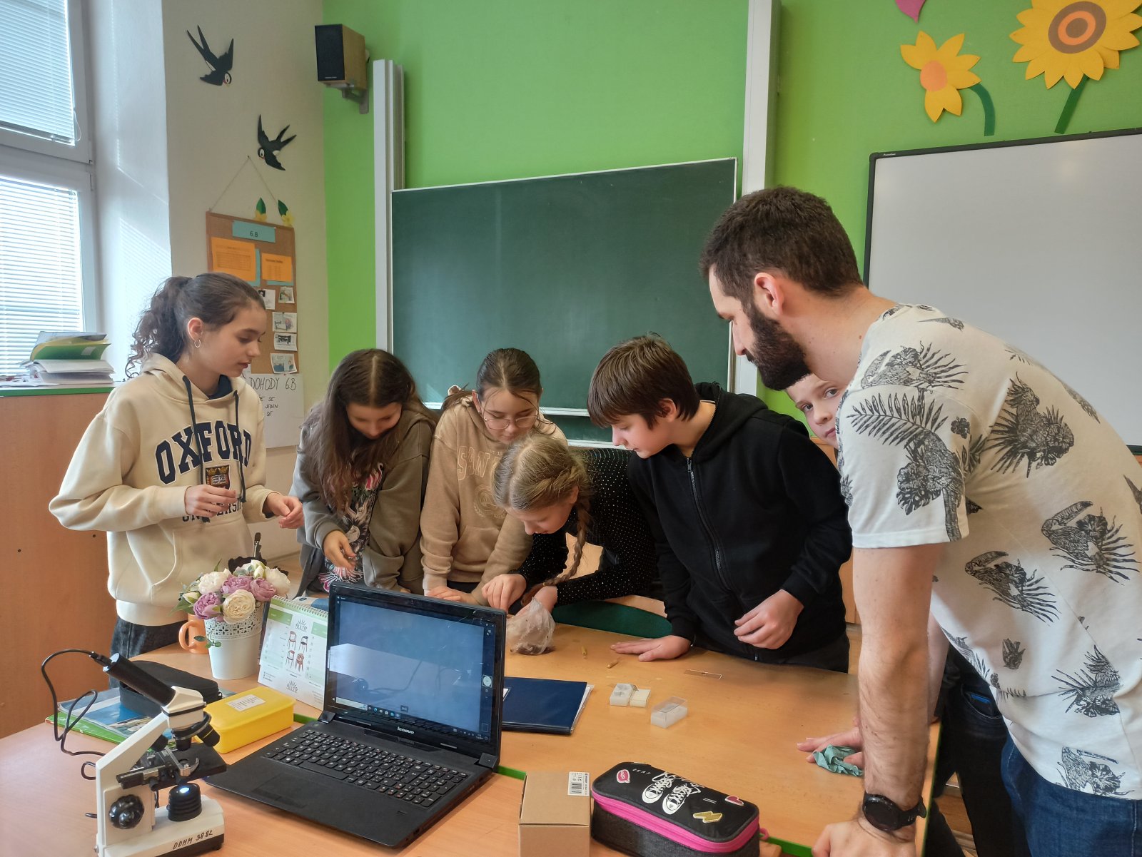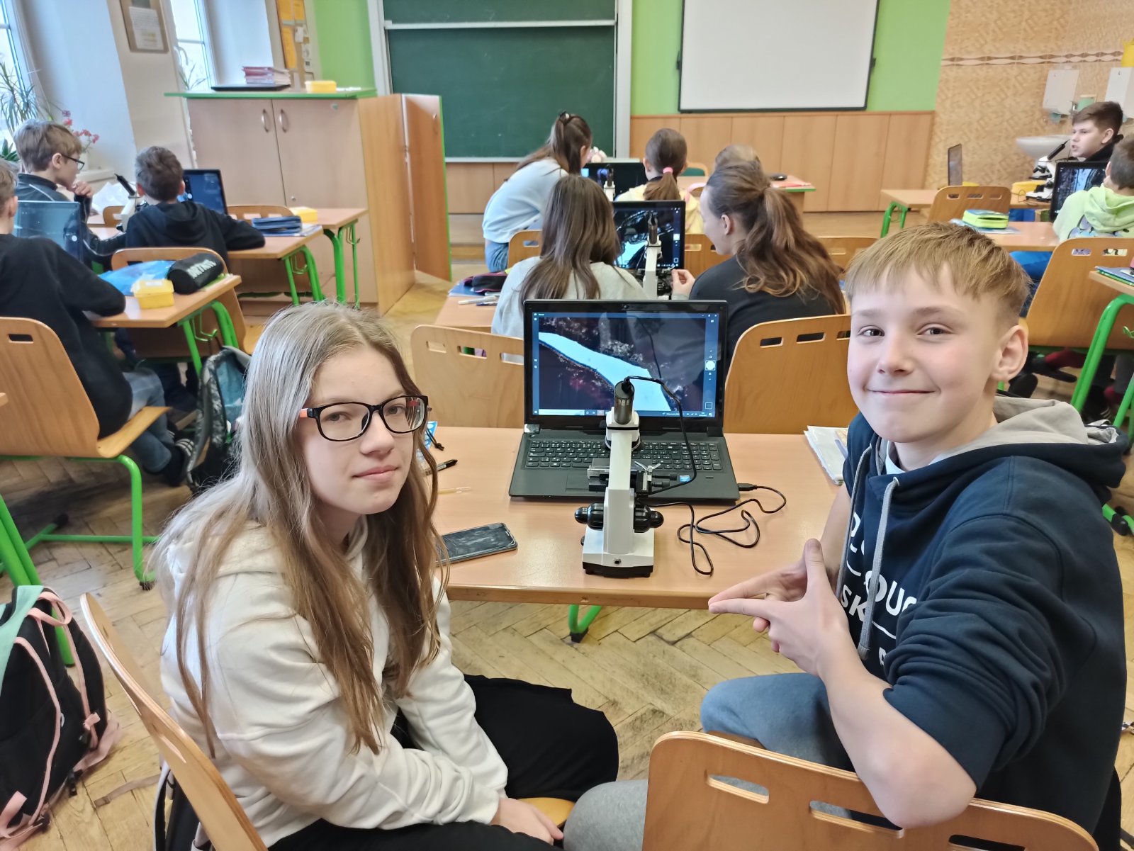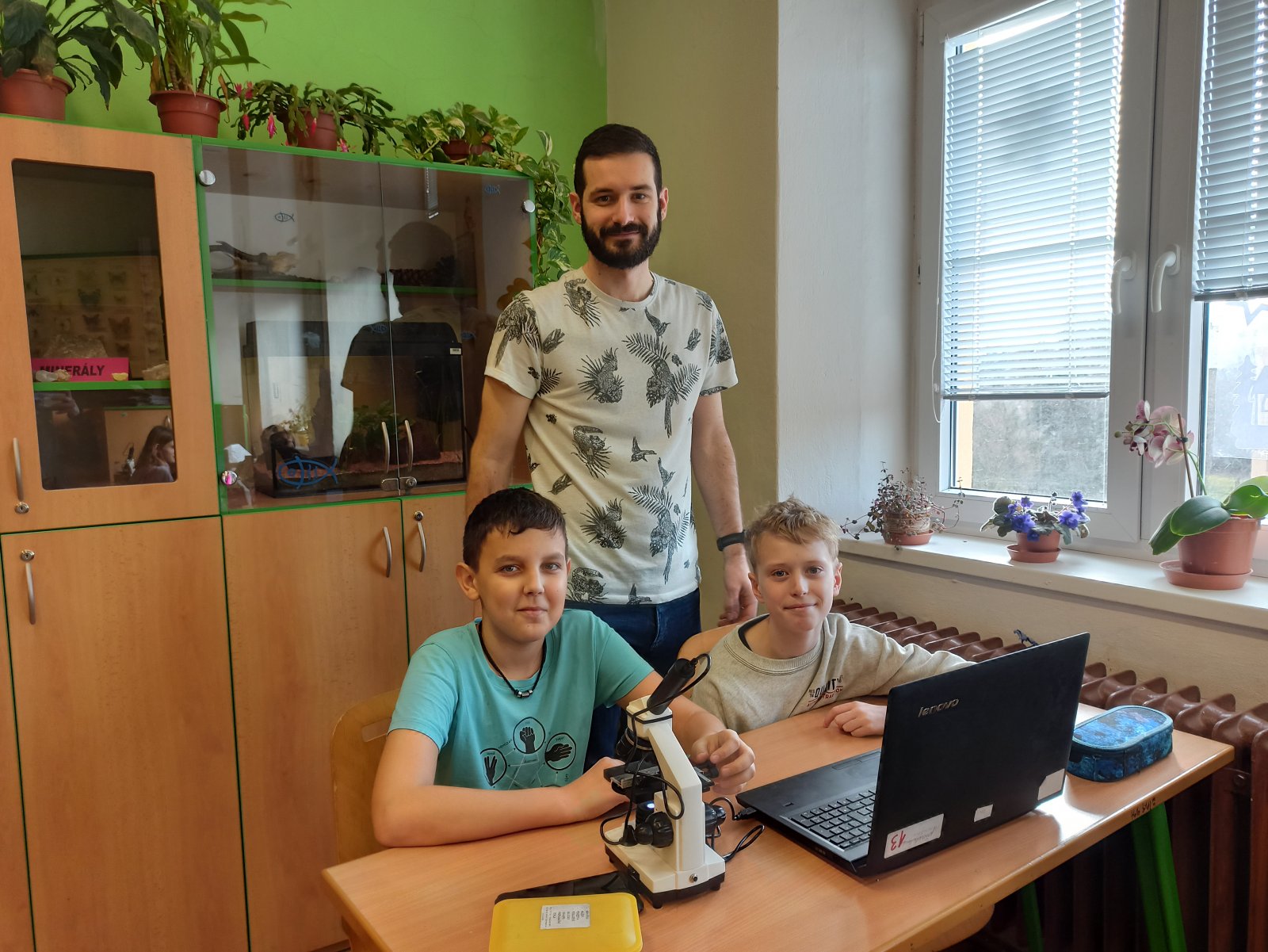 Žáky šestých ročníků čekalo v hodině přírodopisu velké překvapení. Jelikož tématem hodiny byli kroužkovci, do kterých patří i nitěnky (drobní živočichové podobní malé žížale), naskytla se ideální příležitost mikroskopem nahlédnout přímo do živého organismu. Po zmobilizování odvahy a přípravě preparátu již nic nestálo v cestě prohlédnout si její vnitřní prostředí – dlouhou trávicí trubici, kolem které se vinou pulzující cévy, svalovou tkáň, pokožku a kutikulu. Pro žáky to byl velký zážitek a z hodiny odcházeli plni dojmů.