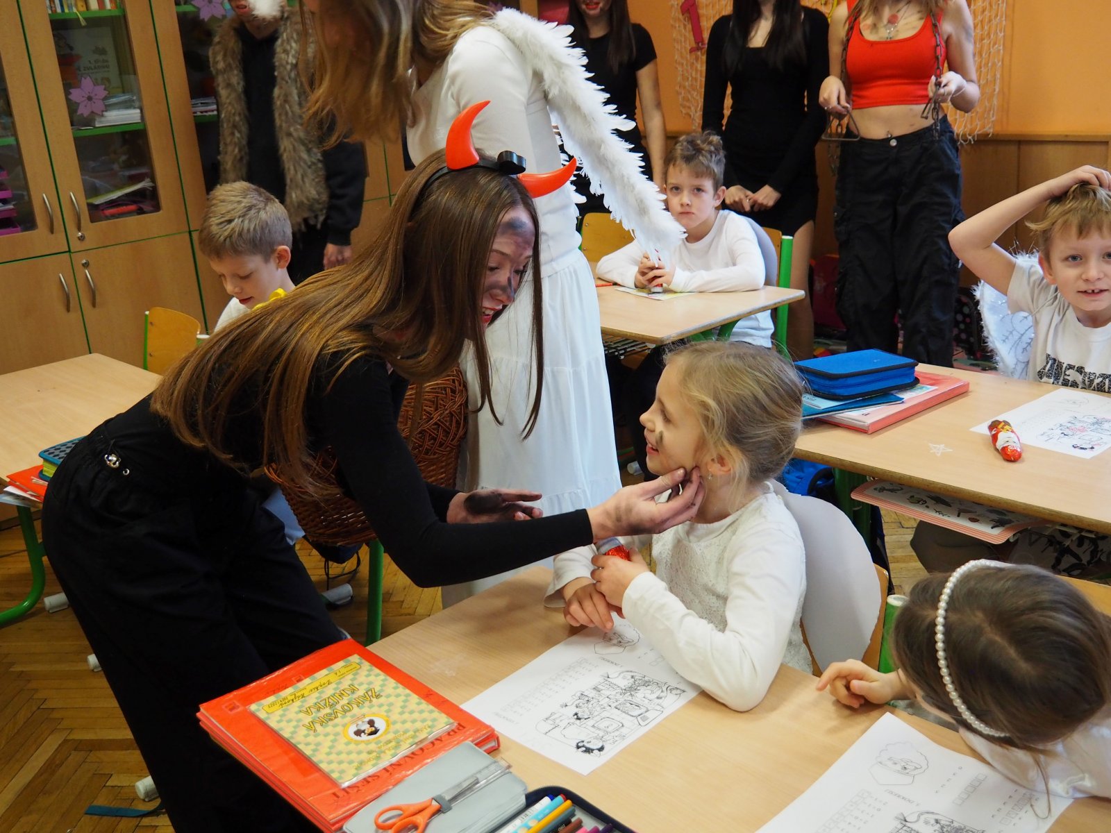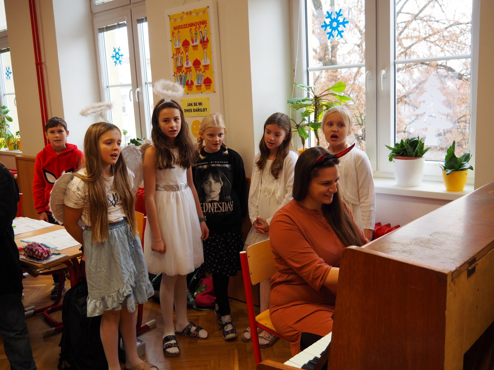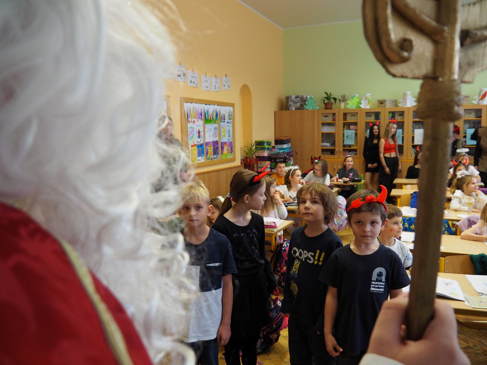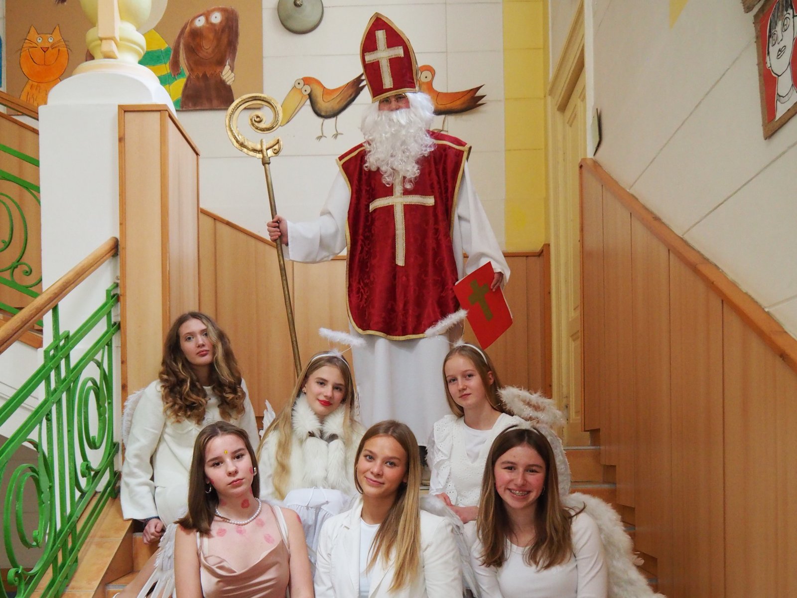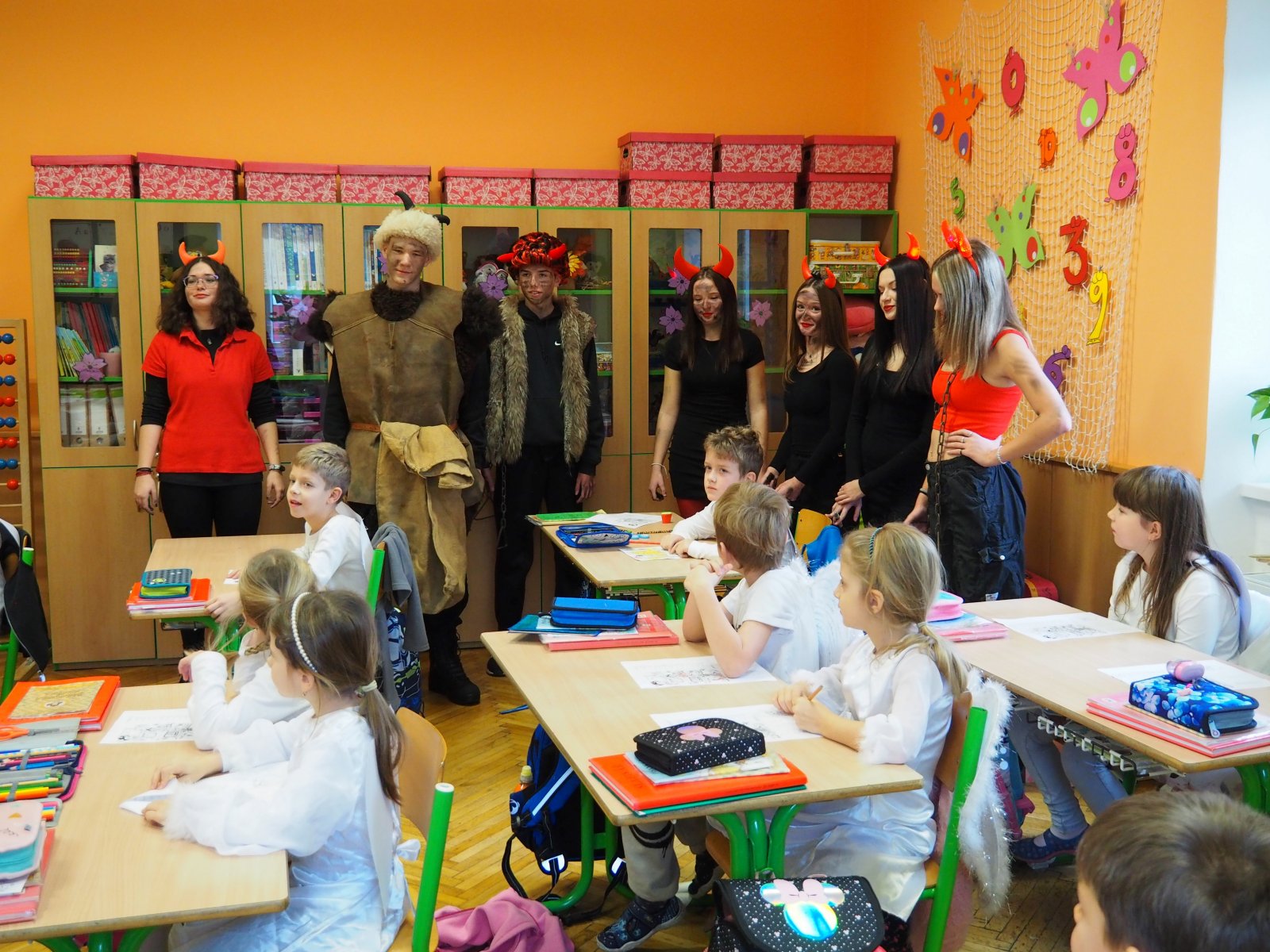 Letos opět po roce si naši deváťáci s radostí připravili pro mladší ročníky mikulášskou nadílku. Žáci 9. A i 9. B si pečlivě připravili své kostýmy, ve kterých si v přestrojení za čerty, Mikuláše a andílky užili spoustu zábavy. Postupně skupiny žáku z devítek zavítaly do všech tříd a na chvíli vstoupily do výuky. Stateční prvňáčci se nedali zastrašit spoustou čertů a nebojácně je zaháněli kouzelným pírkem, a dokonce se jim nestyděli přečíst ze Slabikářů. Mikuláš si vždy poslechl připravené básničky a recitace a z Knihy hříchů vyzval děti, které nebyly zrovna hodné k příslibu polepšení se a u vyšších ročníků musely „zlobivé“ děti splnit některým aktivity symbolizující jejich vykoupení z hříchů. Andílci však vždy rozdali všem dětem čokoládovou nadílku a ozdobili tváře dětí kamínky a třpytkami. Čerti naopak tváře zašpinila sazemi. Den to byl veselý a deváťáci si jej jako každoročně užili.