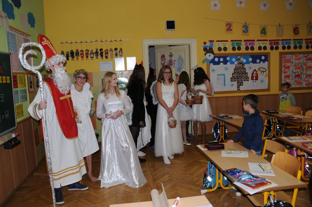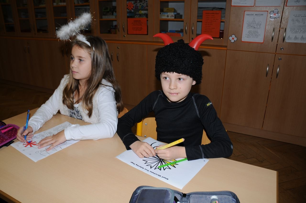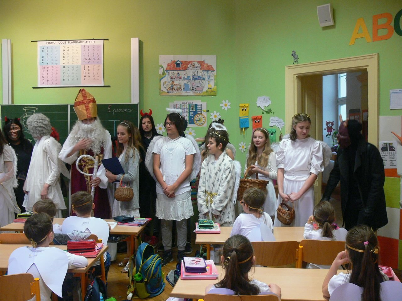 I letos k nám do školy zavítal Mikuláš – ne jeden, ale rovnou dva – v doprovodu hluk vytvářejících čertů i usměvavých a ochranu poskytujících andílků. Na svou misi se žáci devátých ročníků pečlivě připravovali a výsledek stál za to: hříšníci byli napraveni, děti krásně recitovaly a zpívaly a nakonec musely naše Mikulášské výpravy usoudit, že si všichni zaslouží odměnit. Věříme, že si tento den užily nejen děti.