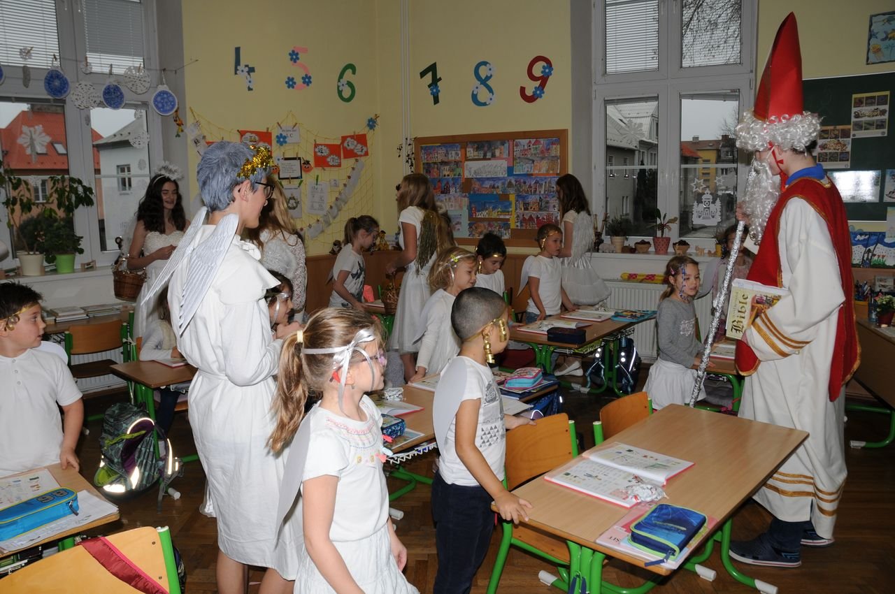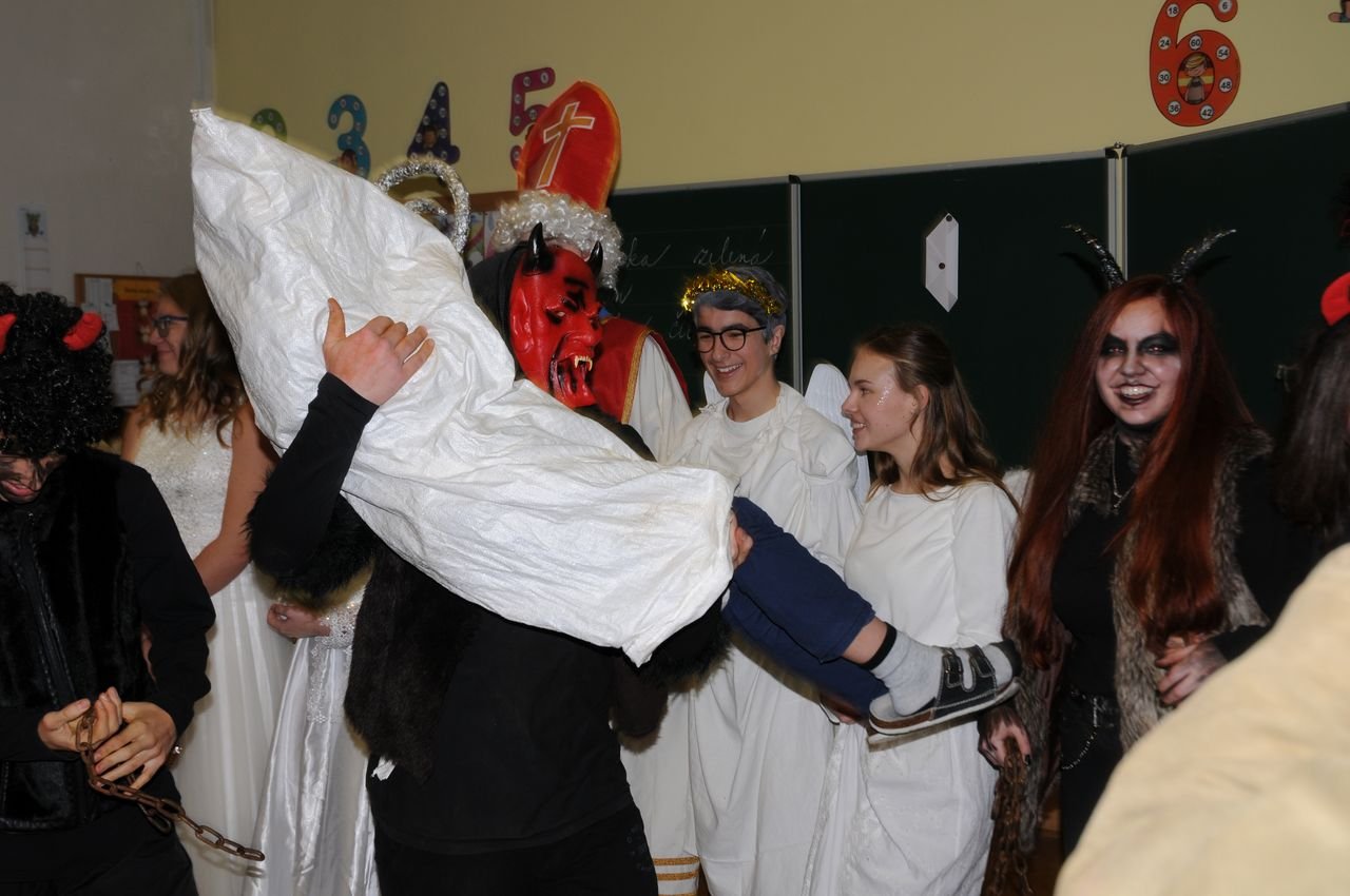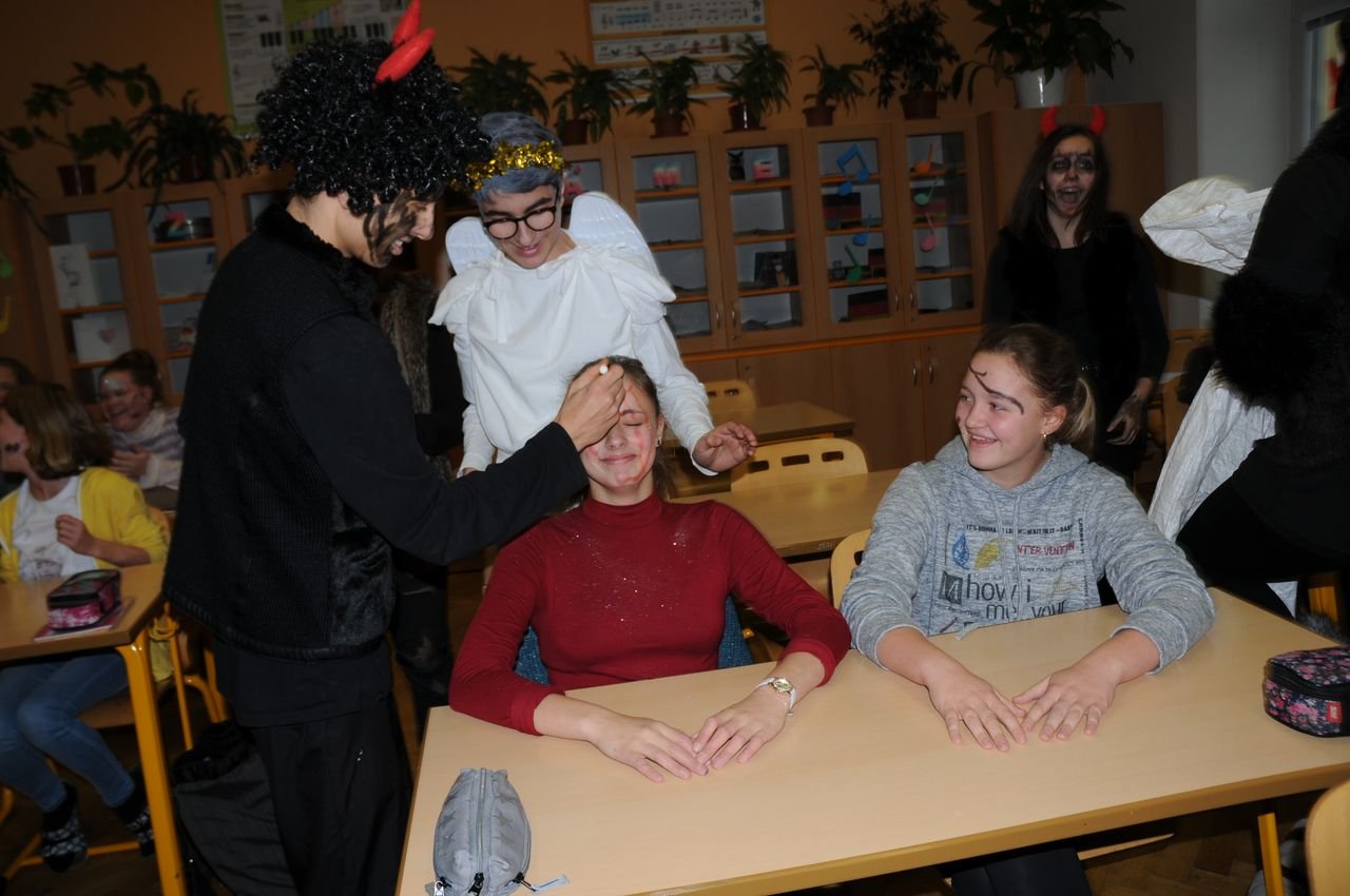 I letos k nám do školy zavítal Mikuláš – ne jeden, ale rovnou dva – v doprovodu hluk vytvářejících čertů i usměvavých a ochranu poskytujících andílků. Na svou misi se žáci devátých ročníků pečlivě připravovali a výsledek stál za to: hříšníci byli napraveni, děti krásně recitovaly a zpívaly a nakonec musely naše Mikulášské výpravy usoudit, že si všichni zaslouží odměnit. Věříme, že si tento den užily nejen děti.