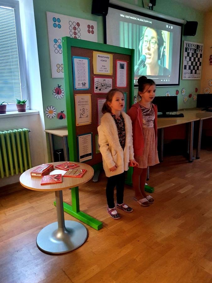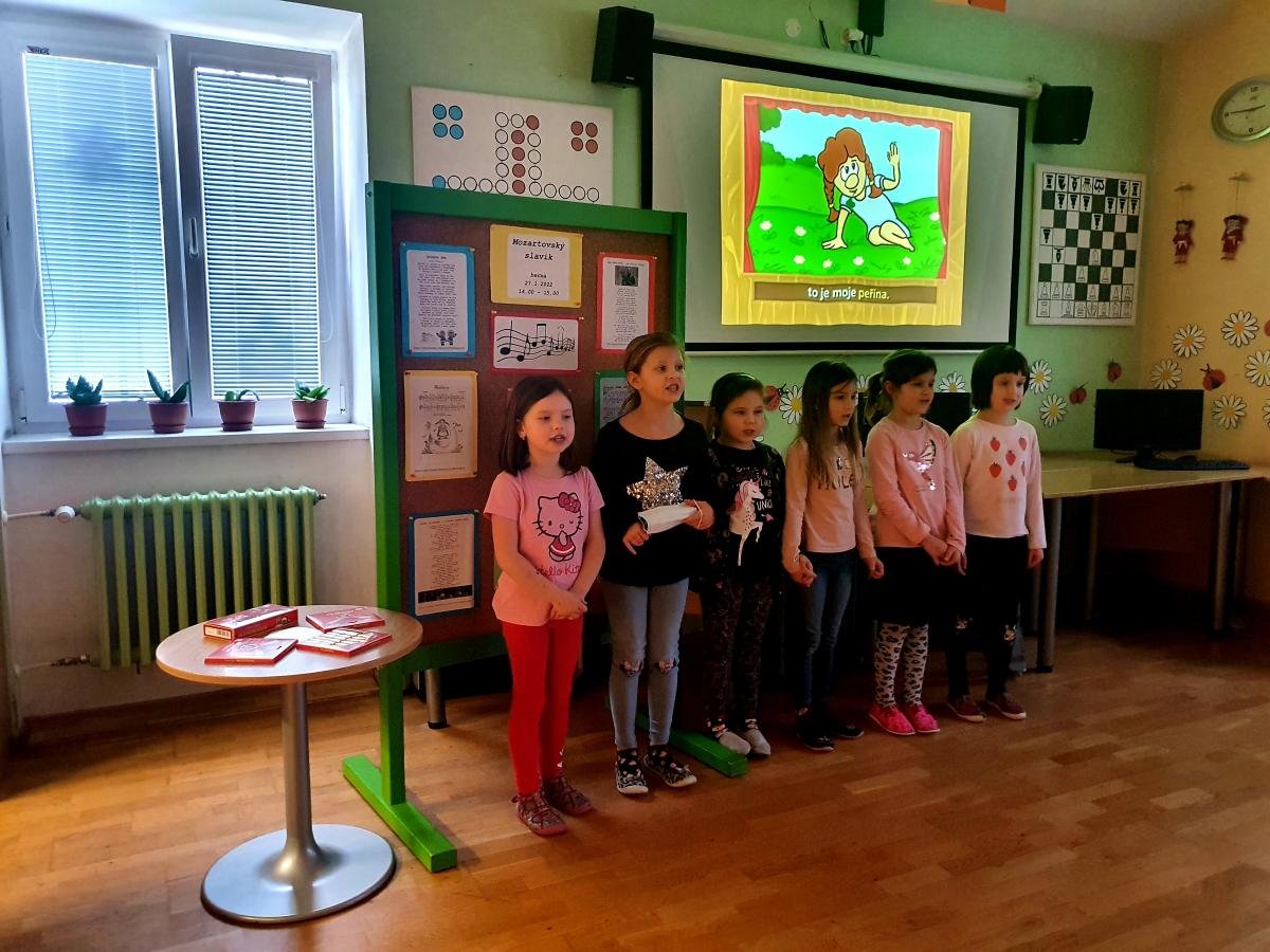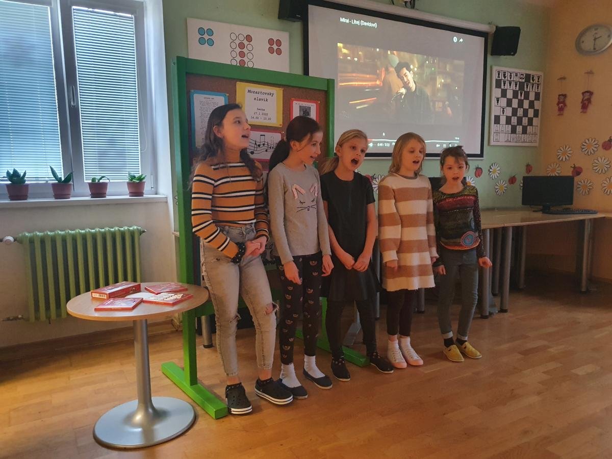 Náš Mozartovský slavík je ale přehlídka odvážných zpěváků a zpěvaček z naší školní družiny, kteří si vybrali a nacvičili svoji oblíbenou píseň.