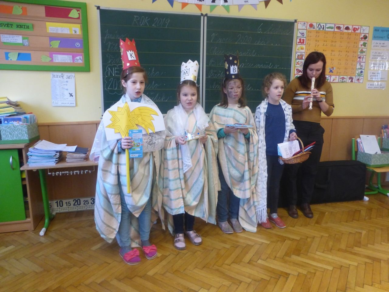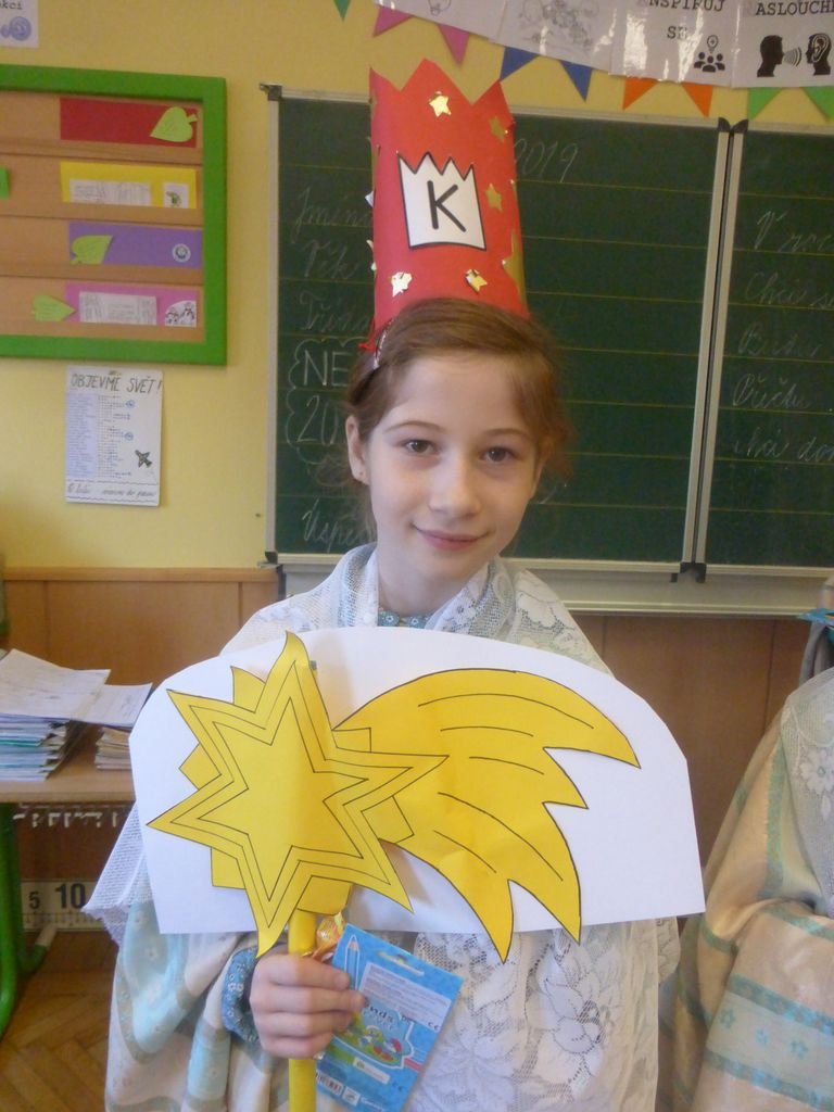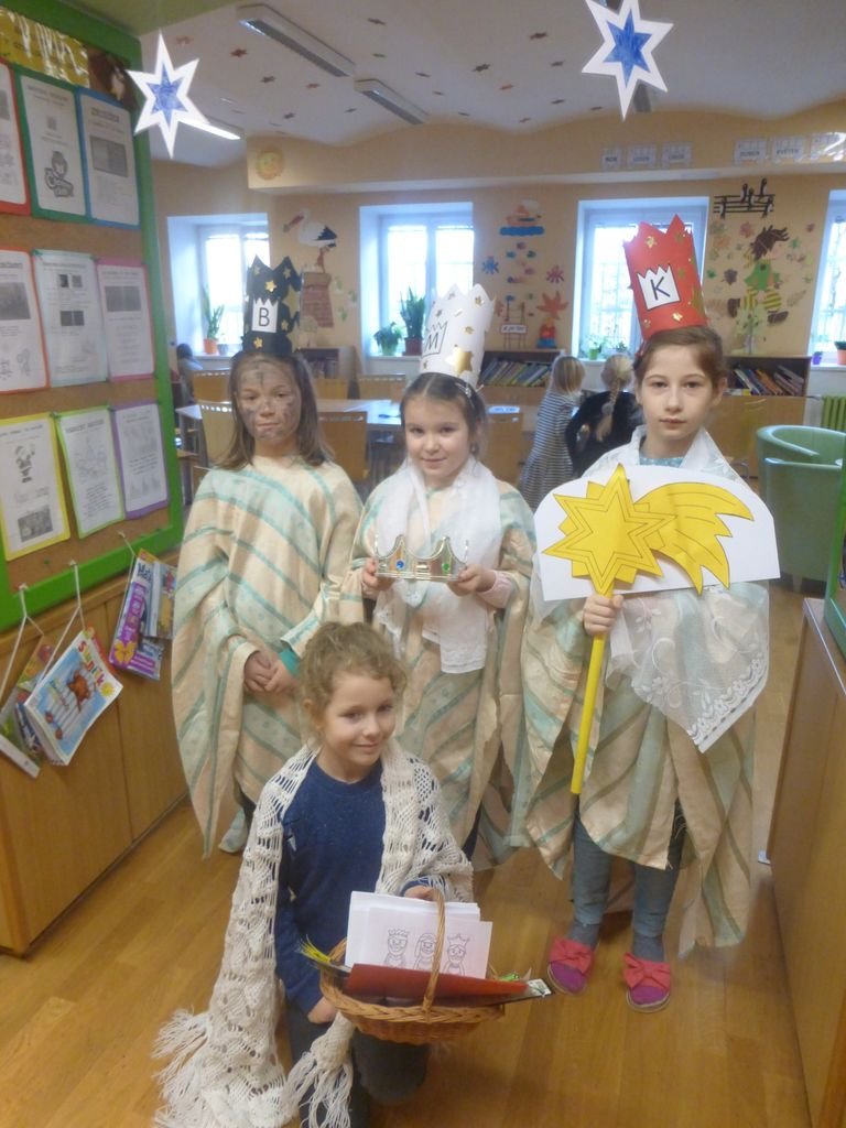 Žáci z kroužku Mozartík se převlékli za tři krále a rozdávali přání do nového roku 2020. Kromě vzkazu na dveře K+M+B, rozdali dětem v družince krásné obrázky. Písnička, kterou si děti mohly společně zazpívat v doprovodu flétny, všechny děti znaly z vánoční besídky.
