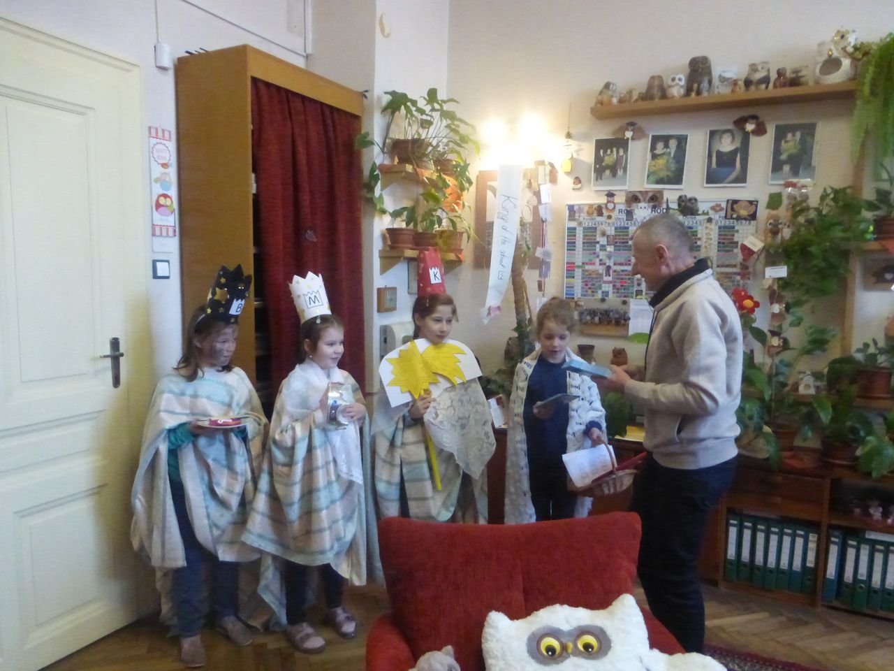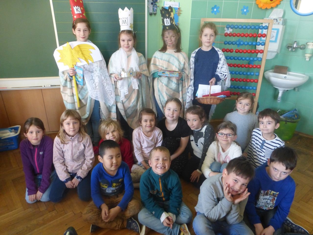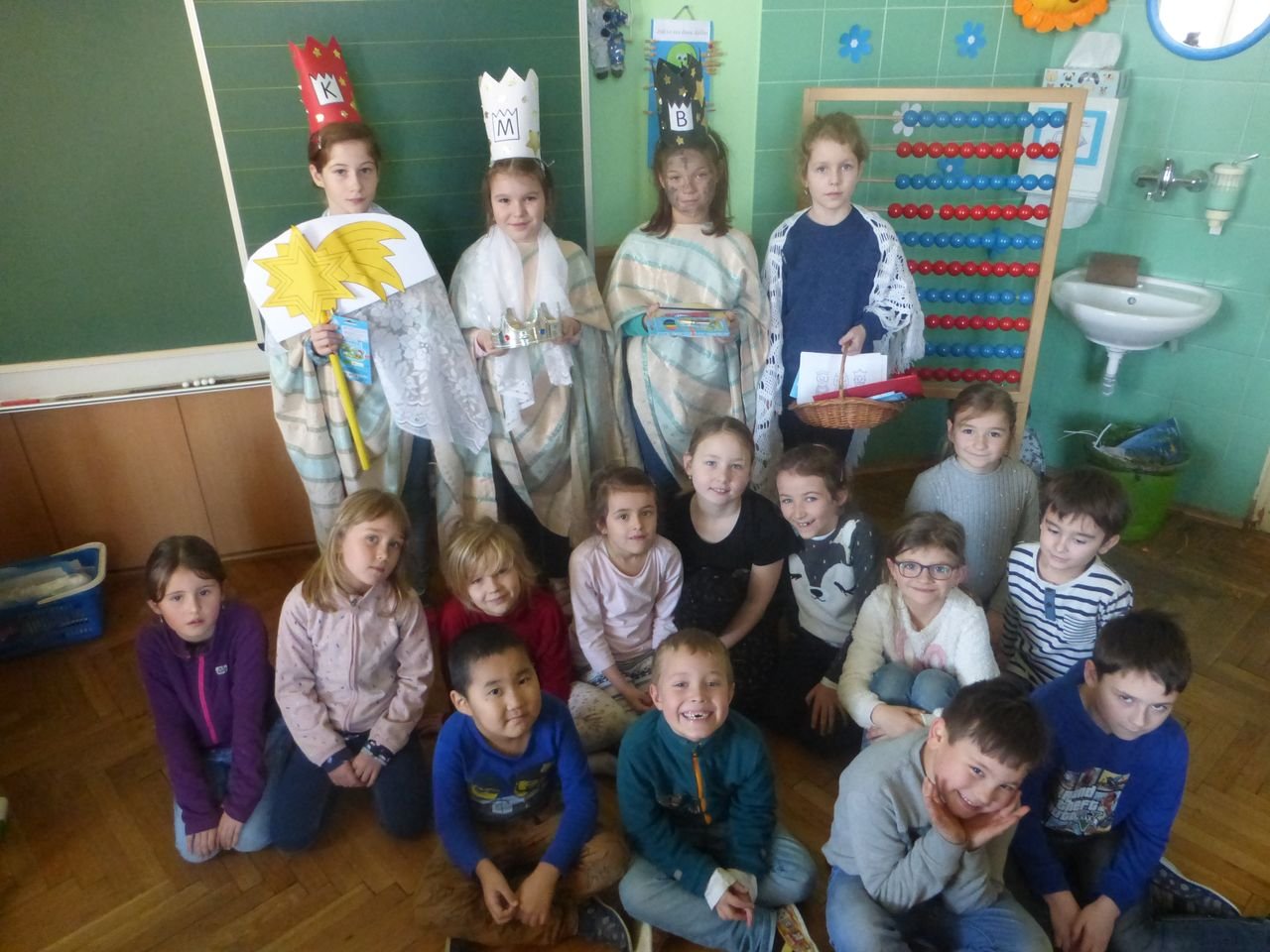 Žáci z kroužku Mozartík se převlékli za tři krále a rozdávali přání do nového roku 2020. Kromě vzkazu na dveře K+M+B, rozdali dětem v družince krásné obrázky. Písnička, kterou si děti mohly společně zazpívat v doprovodu flétny, všechny děti znaly z vánoční besídky.