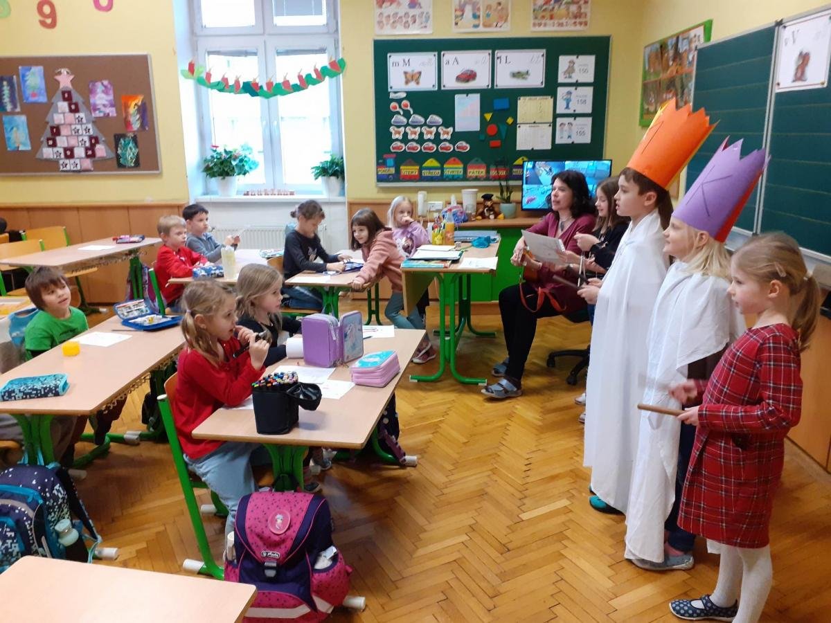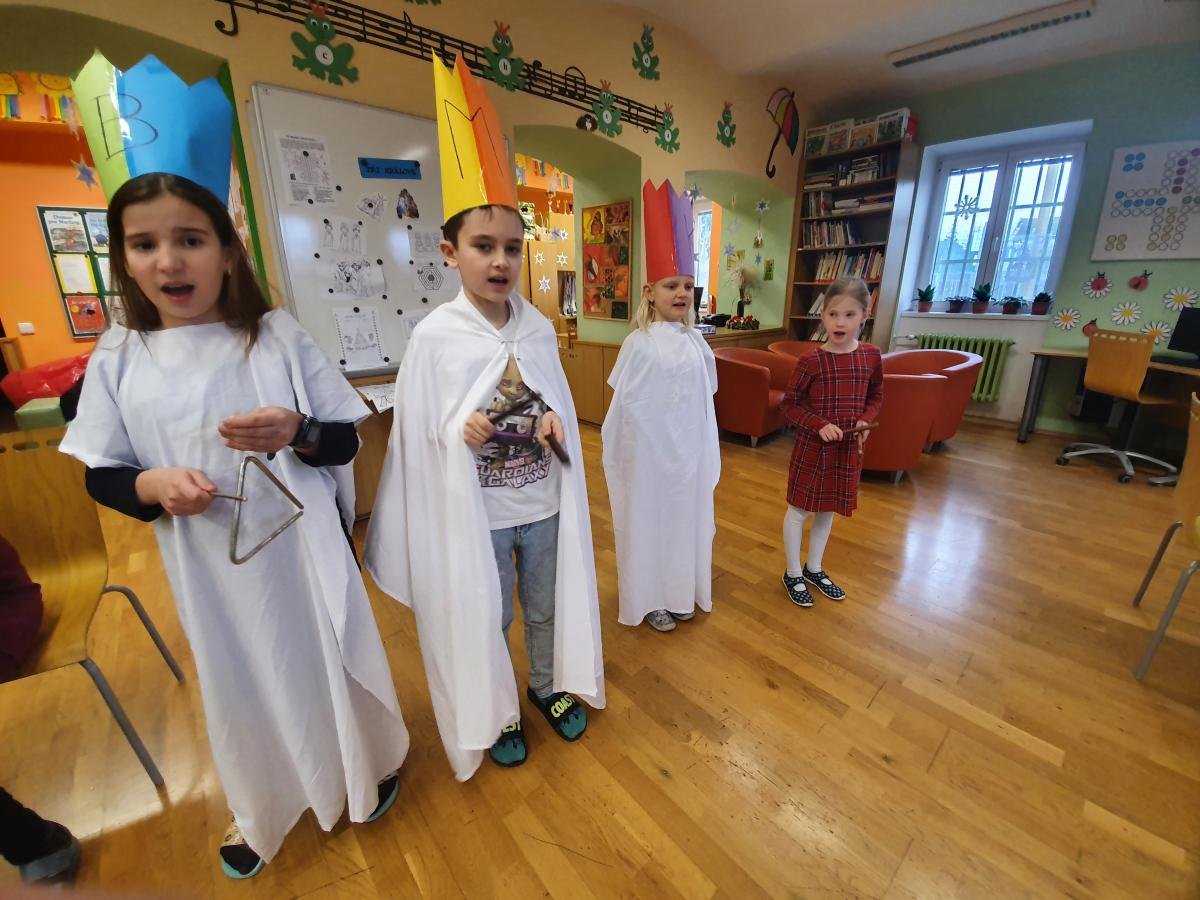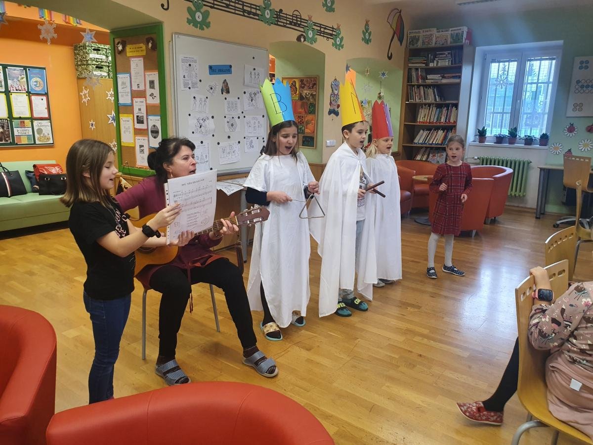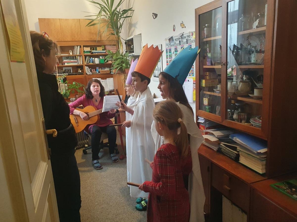 Tři králové vinšovali písněmi Koledu na ledu a My tři králové za doprovodu Orffových nástrojů. Nechyběla jim ani truhlička se zlatem, kadidlem a myrhou.