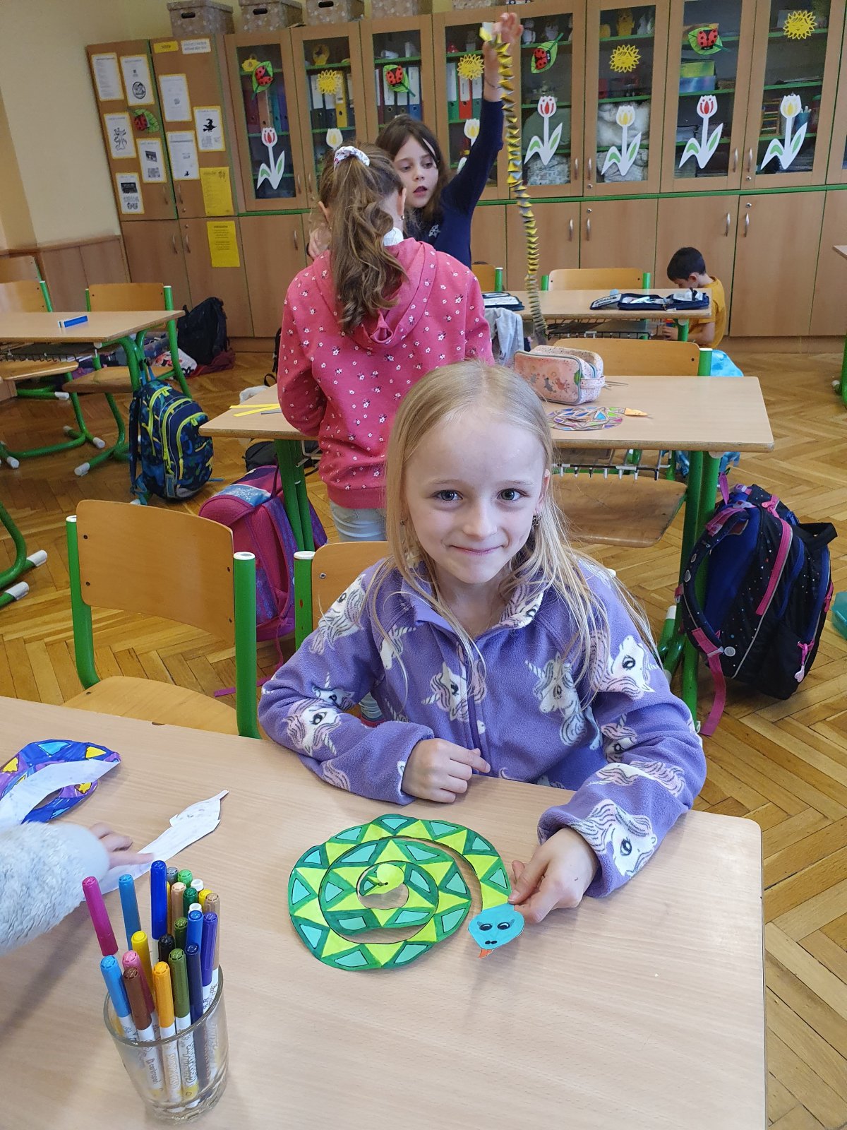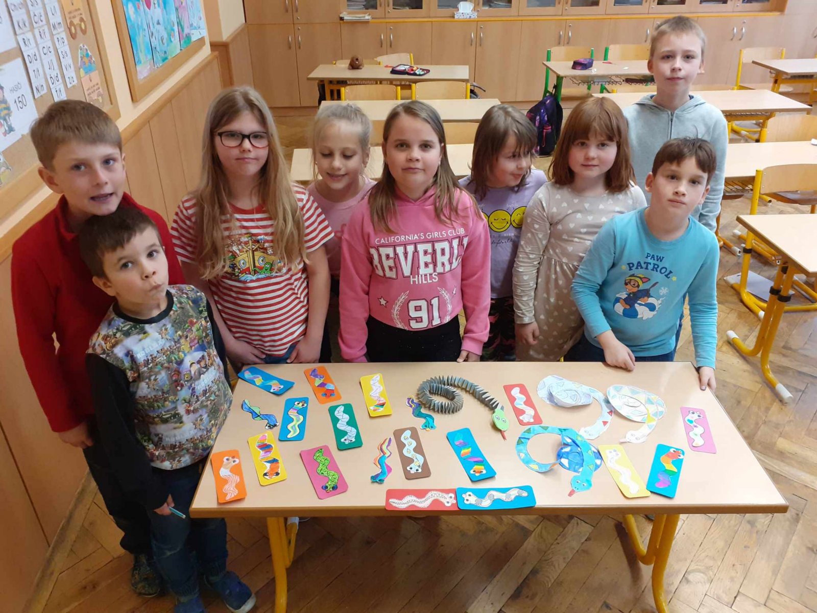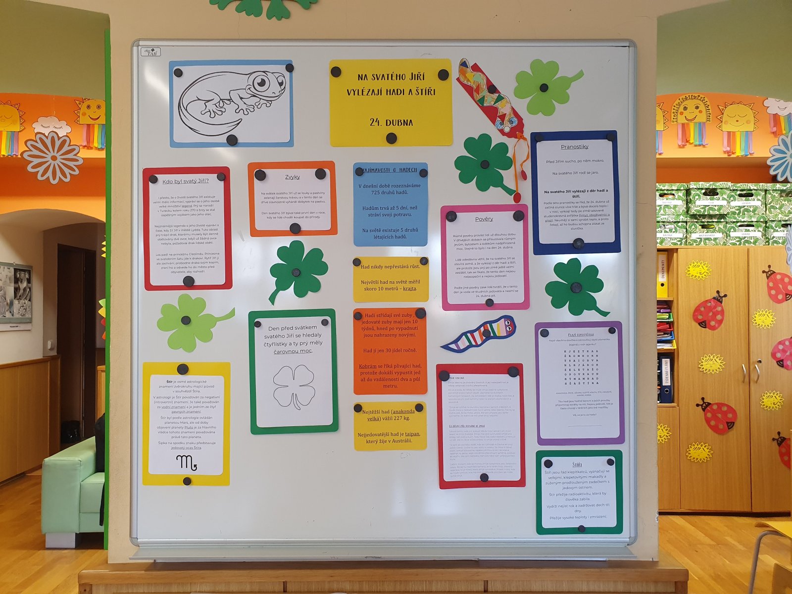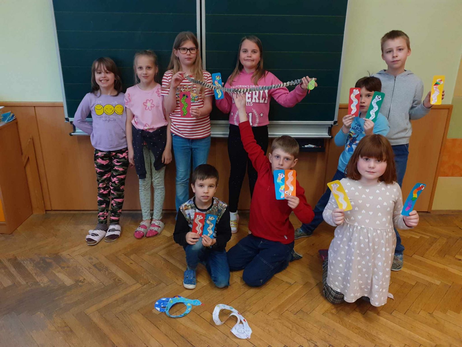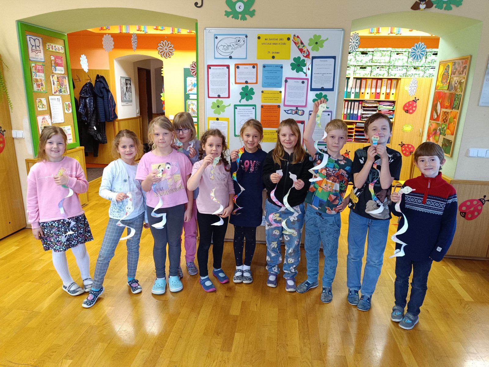 Podle této pranostiky už začíná slunce více hřát a bývá docela teplo i v noci, vylézají tedy po zimě takzvaně studenokrevná zvířátka (hmyz, obojživelníci a plazi). Neumějí si sami vyrobit teplo, a proto čekají, až ho budou schopna získat ze sluníčka. Letos tomu tak úplně nebylo, přesto se to hady ve školní družině jen hemžilo. Byli sice jen papíroví, o to více s nimi však bylo zábavy. A těch zajímavostí, co jsme se dozvěděli – na světě žije 725 druhů hadů, hadi střídají své zuby, jedovaté zuby mají jen 10 týdnů, hned po vypadnutí jsou nahrazeny novými, had nikdy nepřestává růst. A víte, že největší had na světě měřil skoro 10 metrů nebo že nejtěžší vážil 227 kilogramů?