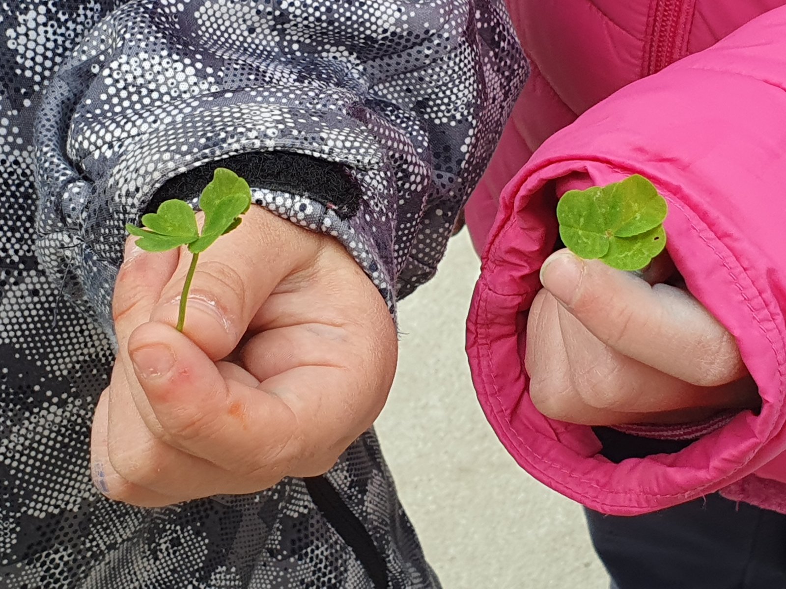 Kouzelnou moc mají i čtyřlístky sbírané den před tímto svátkem. K hledání jsme využili naše školní hřiště, kde jich roste opravdu dost. Věříme, že nám přinesou štěstí.