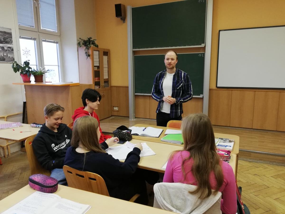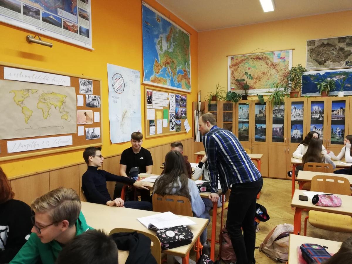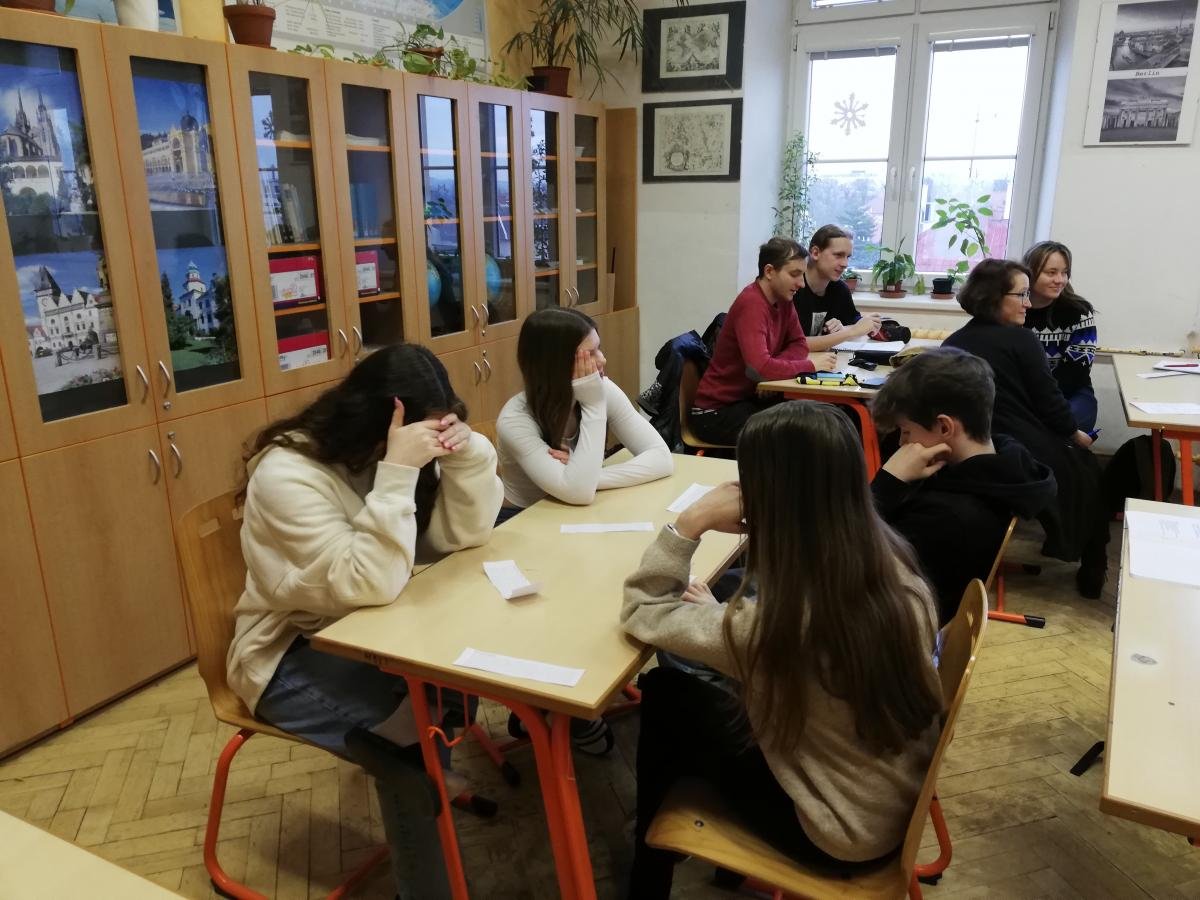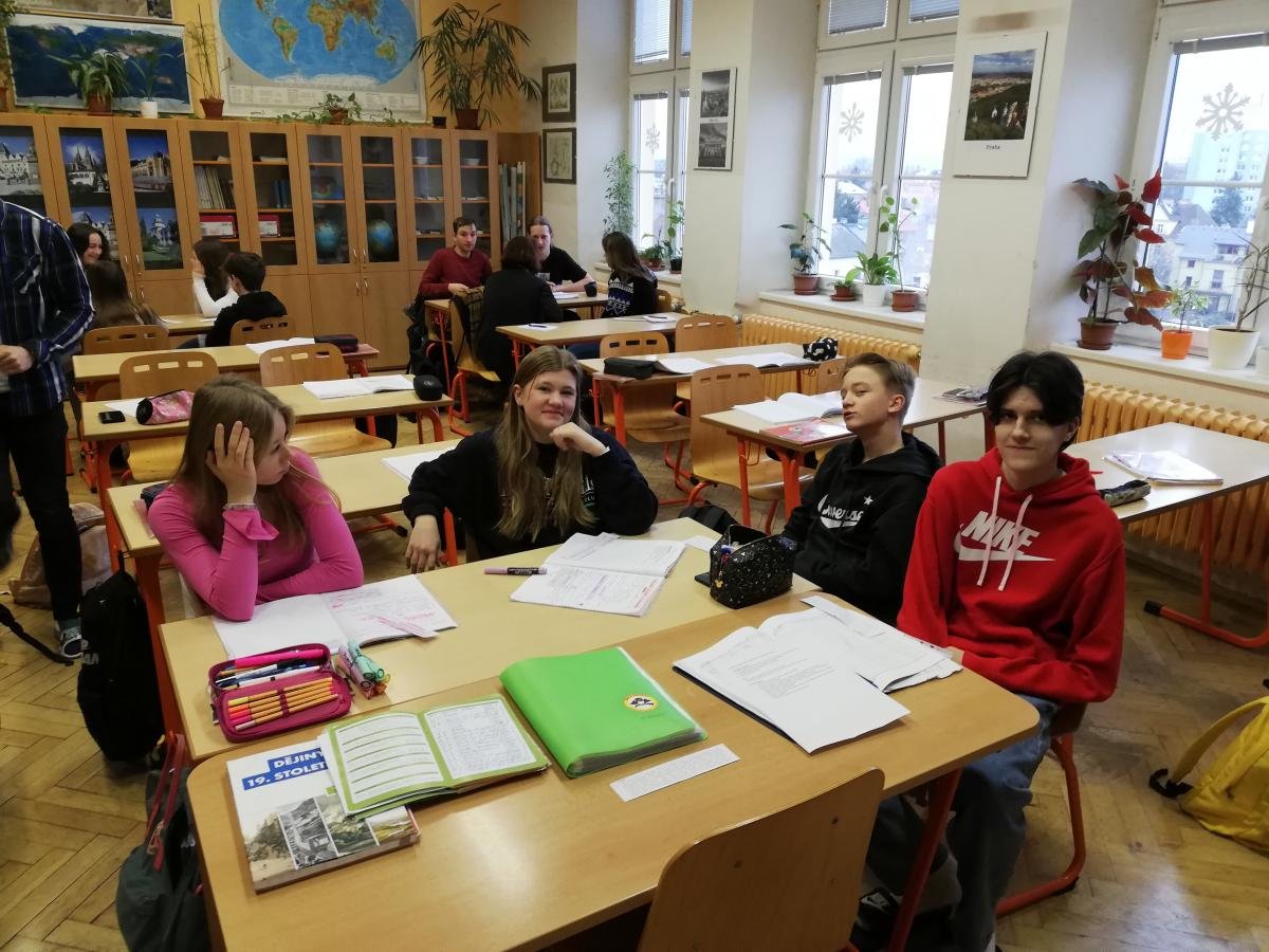 V pondělí 20. února k nám zavítala skupina studentů historie v doprovodu paní docentky Radmily Prchal Pavlíčkové z Katedry historie FF UP. Jejich cílem bylo shlédnout moderně pojatou výuku dějepisu zaměřenou na téma průmyslové revoluce. Naši žáci se na 45 minut vžili do vybraných rolí souvisejících s nově vznikající industriální společností. Ve třídě se tak objevily těžce pracující děti, ženy trápící nerovnoprávné postavení, muži pracující v nebezpečném prostředí továren, nezaměstnaní i majitelé podniků s úplně jiným viděním světa.