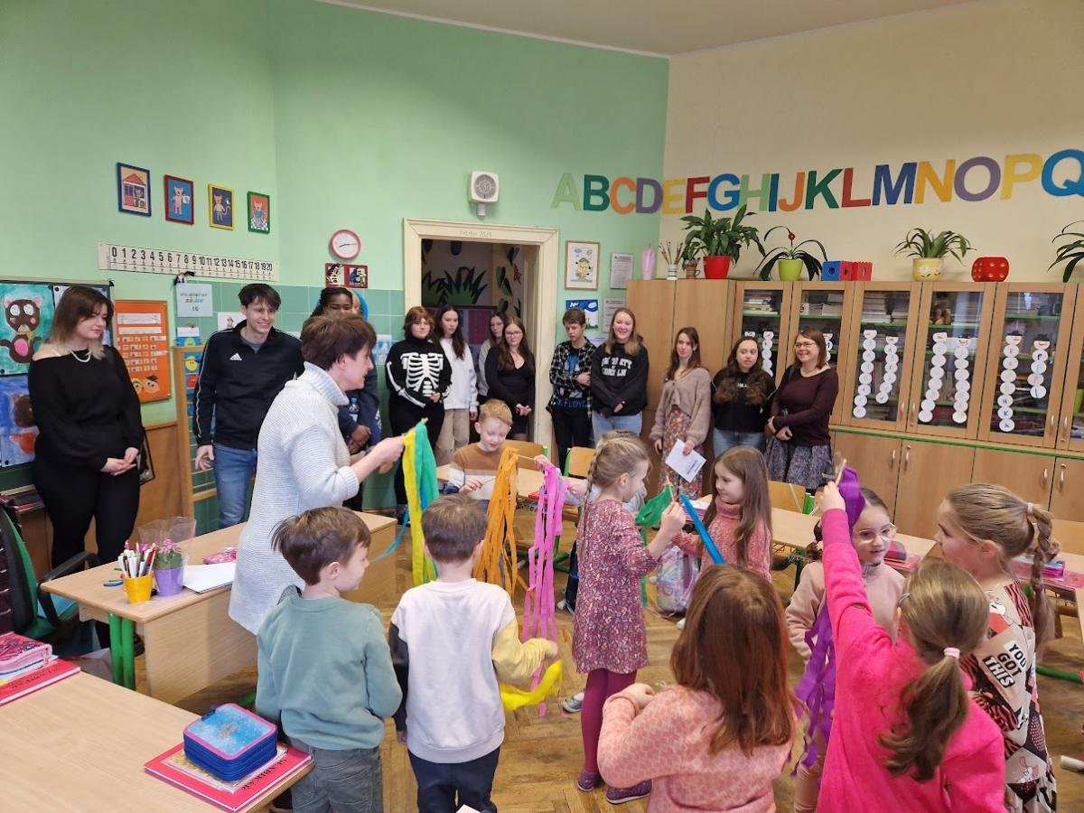 Hned ráno první den po pololetních prázdninách k nám zavítala pětice vysokoškolských studentů z Anglie. Myšlenka na takový zajímavý a netypicky laděný den vznikl díky osvědčené spolupráci s paní Janou Kořínkovou z Ústavu cizích jazyků při PdF UPOL. Skupinka mladých a nadšených studentů z univerzity v Lincolnu, což je město na severovýchodě Anglie, se s chutí chopila šance prožít den v naší škole s našimi dětmi. Studenti se přišli podívat na to, jak pracujeme s dětmi, popovídali si s nimi a také nám pověděli něco málo o městě, ve kterém sami studují. My jsme si pro studenty připravili prohlídku školy a pozdravili jsme i naše nejmenší angličtináře. Naši žáci prozradili něco o sobě, o svém životě, o svém volném čase, o místech v Olomouci a vůbec o naší zemi, kterou jistě stojí za to navštívit. Vyučování jsme zakončili ochutnávkou typických českých sladkostí, slaných pochoutek a nápojů! Návštěvě také moc chutnal oběd ze školní jídelny, takže mohou říct, že zažili den v české škole jak se patří se vším všudy!