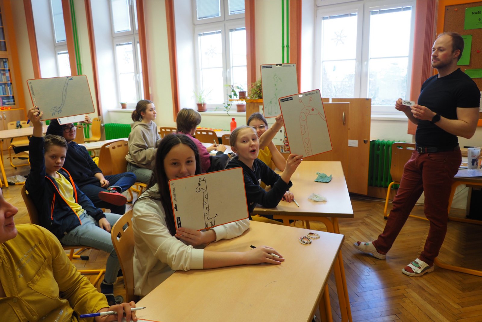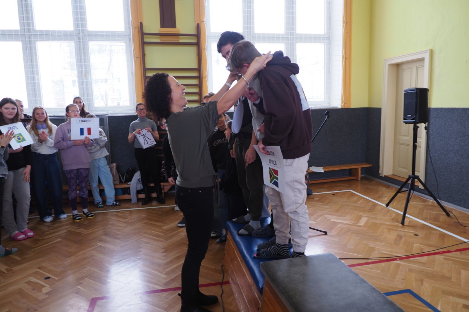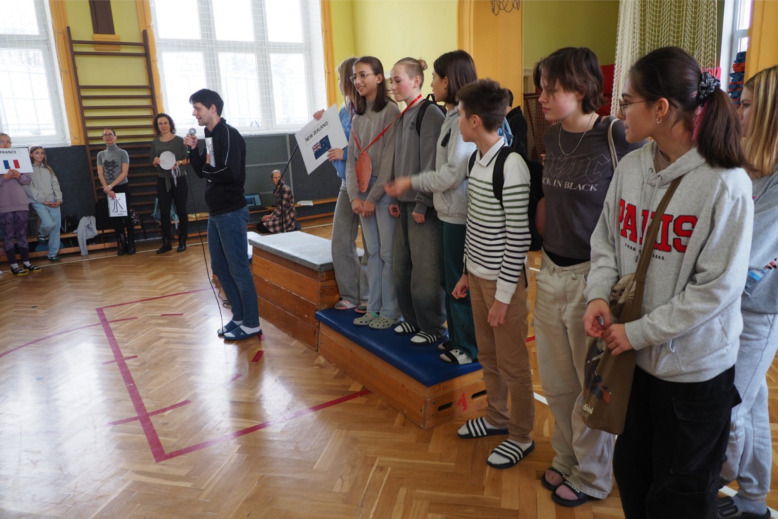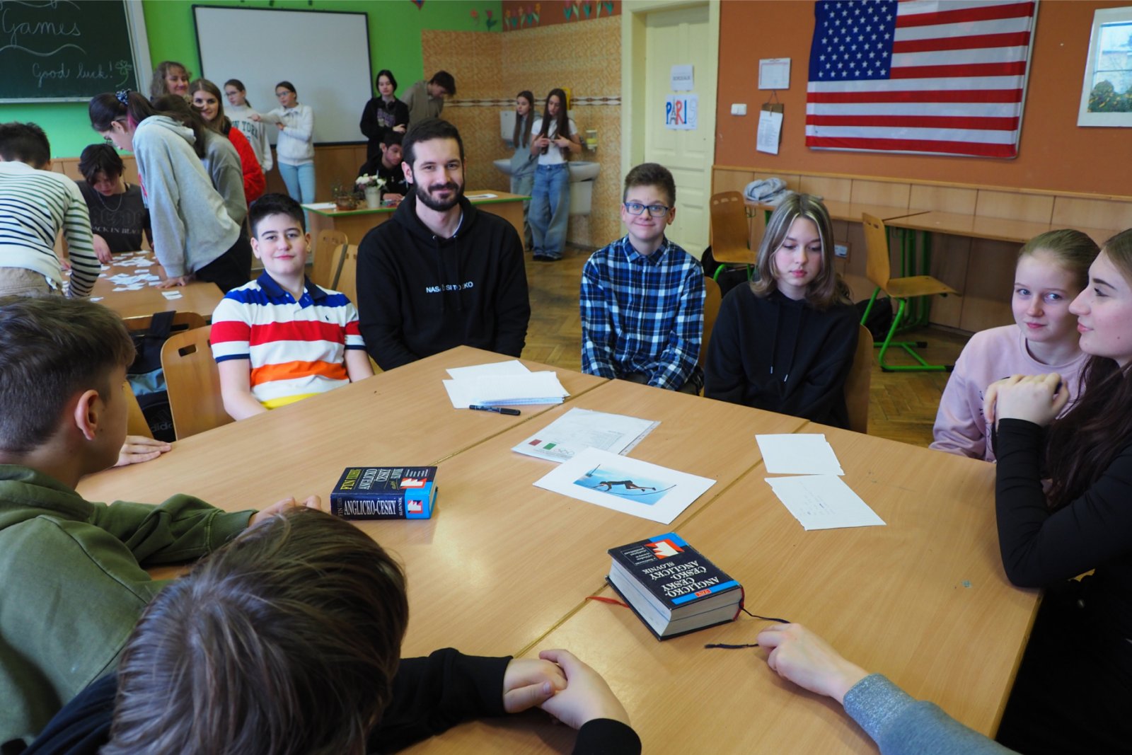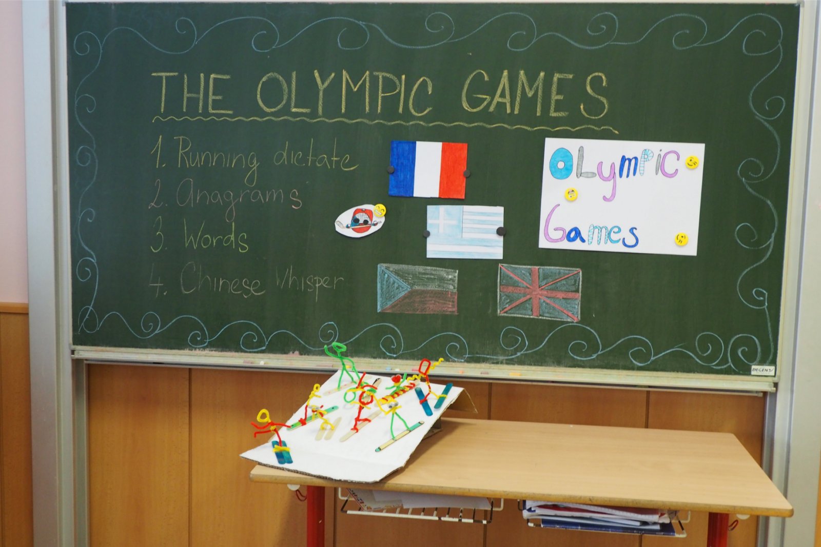 - složených ze žáků napříč ročníky - pojmenovaných dle různých světových zemí. Celý den tak žáci prvního i druhého stupně soutěžili, procházeli pestrými workshopy a sbírali cenné body do celkového hodnocení historicky Prvních olympijských her v anglickém jazyce na naší škole. A protože olympiáda znamená výkony, tak jednotlivá stanoviště reprezentovala dílčí disciplíny, které jsou součástí letních her. Soutěže a klání jako je štafeta, skok daleký, sprint, hod oštěpem nebo maraton jsme použili pro různé jazykové aktivity. Tedy například na stanovišti PARIS se děti utkaly v hodu oštěpem, ve štafetě a v trojskoku. Na místě MONTPELLIER změřily síly ve vrhu koulí, ve skoku dalekém a v maratonu. A co děti tedy opravdu plnily? Názvy disciplín sloužily jen jako metafory pro činnosti jako tvoření slov, skládání vět, slovní pyramida, uvádění správných tvarů nepravidelných sloves, vyhledávání klíčových informací v textu, psaní příběhů... Abychom dětem připomněli, že Olympijské hry 2024 se budou letos konat ve Francii, připravili jsme jim vědomostní kvíz a některé disciplíny byly věnované i historii olympijských her. Sportovní duch nás provázel celý den a ti nejšikovnější nakonec zvítězili. Závěrečný medailový ceremoniál v tělocvičně náš den anglického jazyka slavnostně zakončil. Mnoho jsme se naučili a všichni jsme si to moc užili.