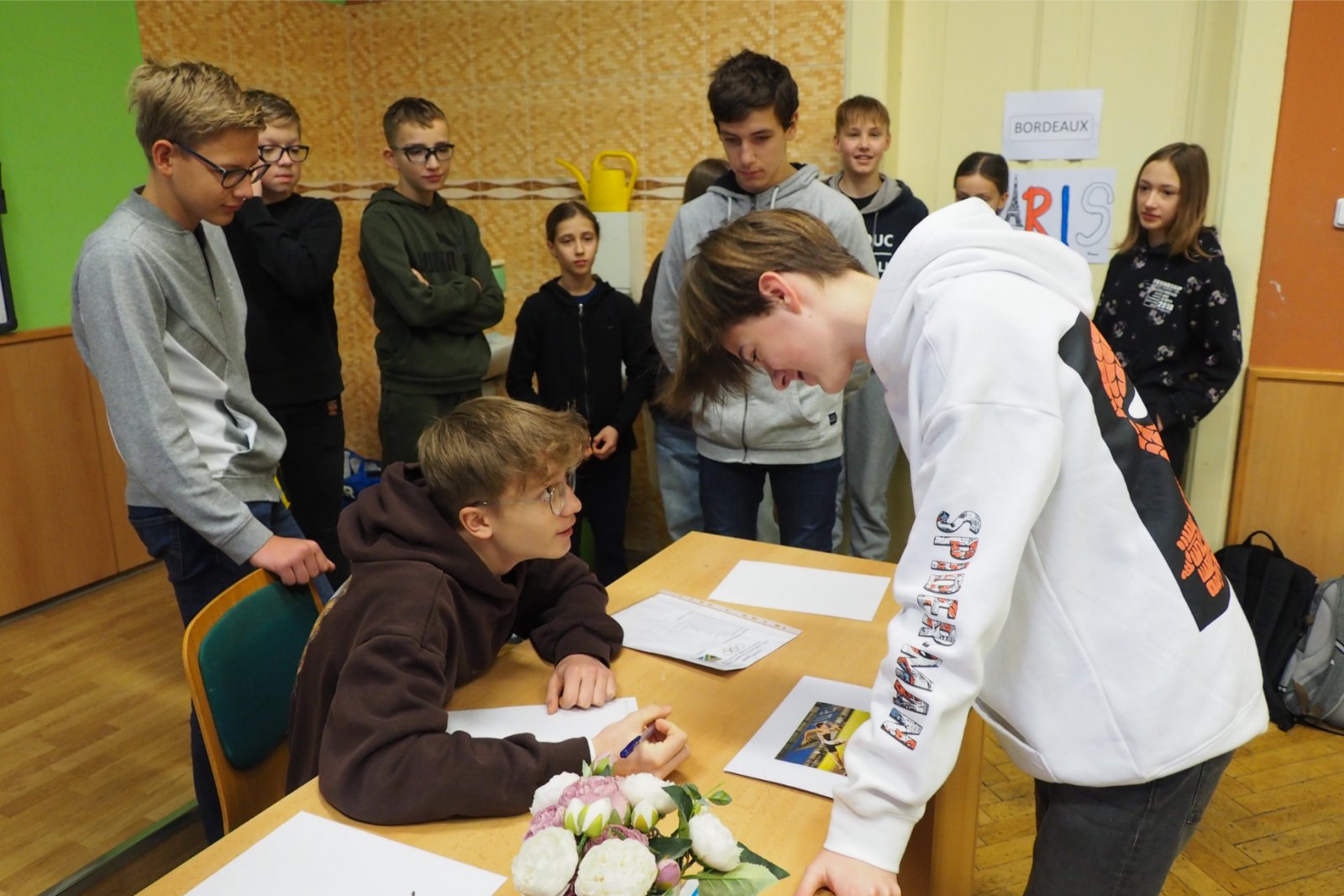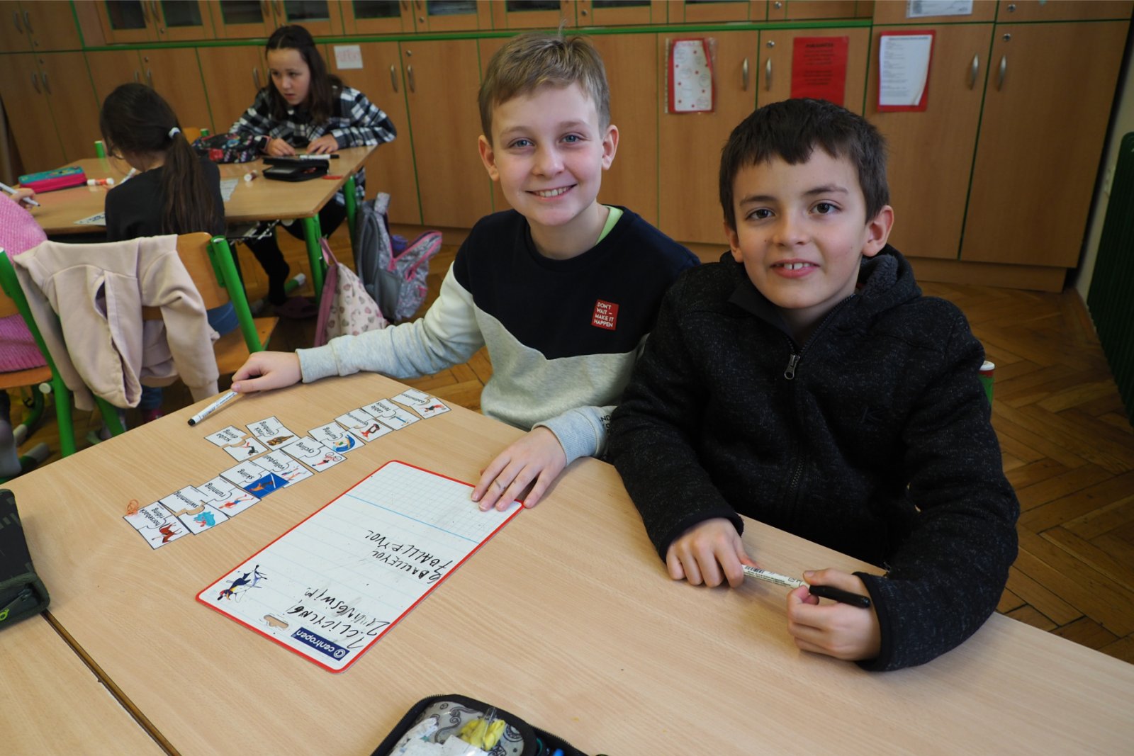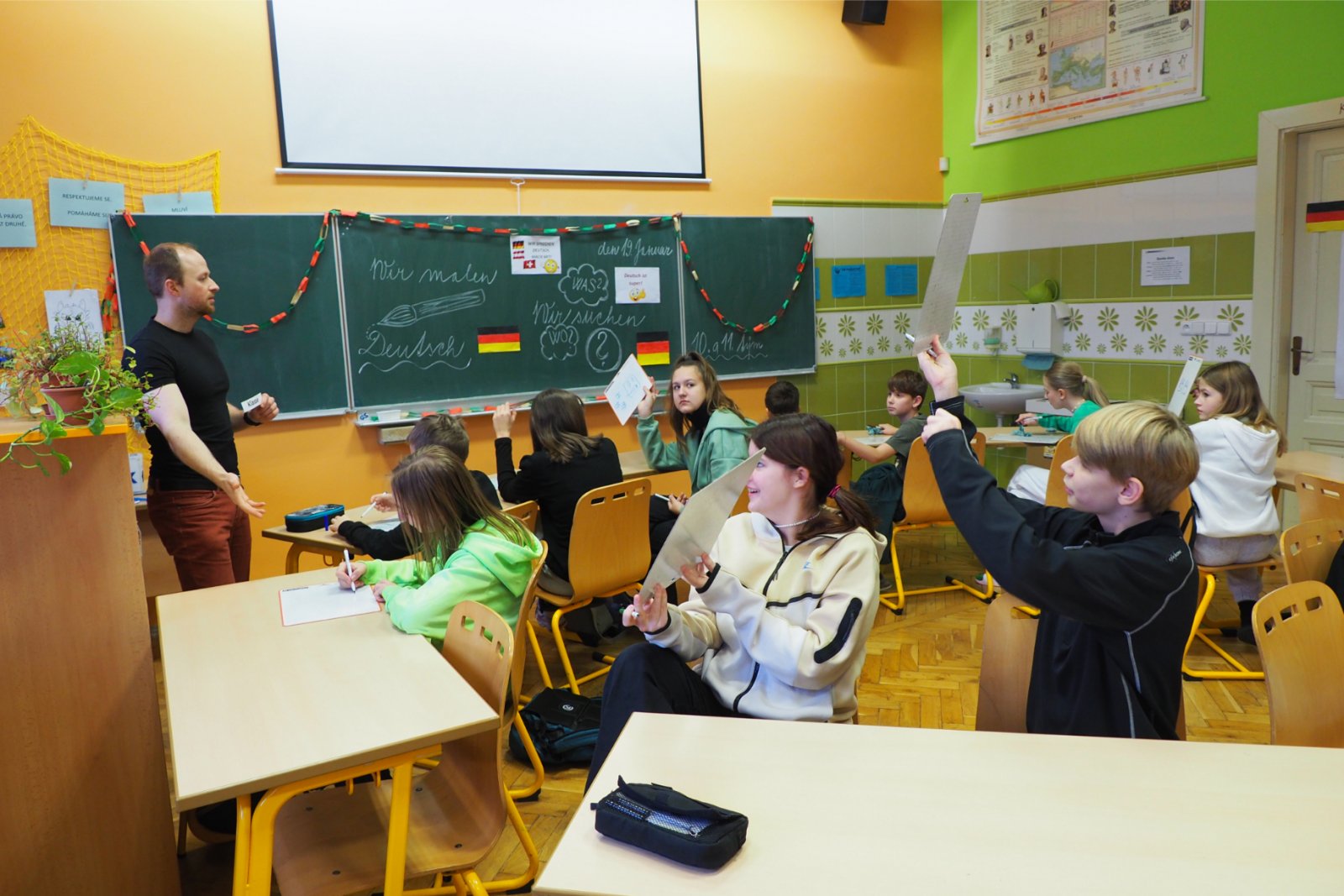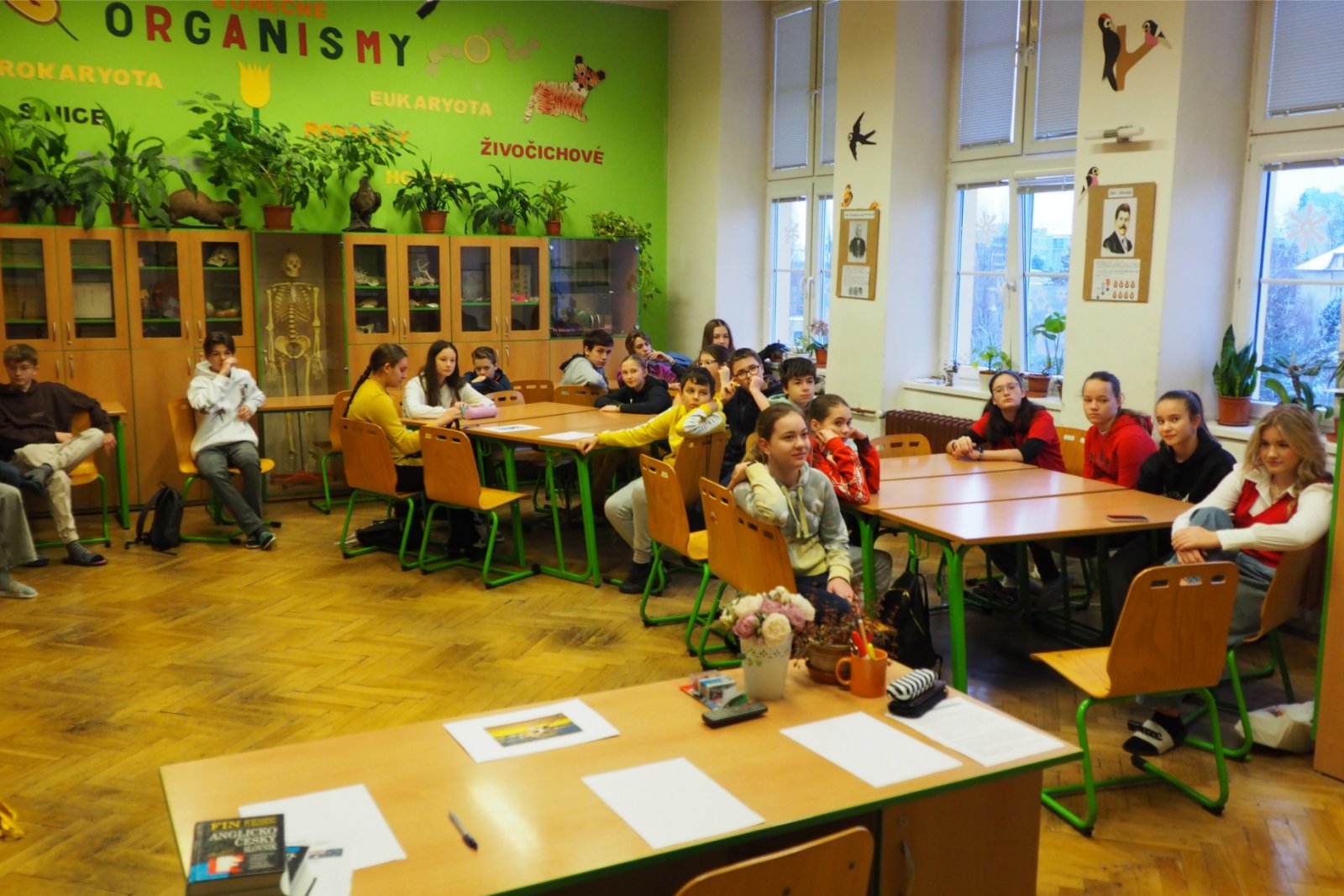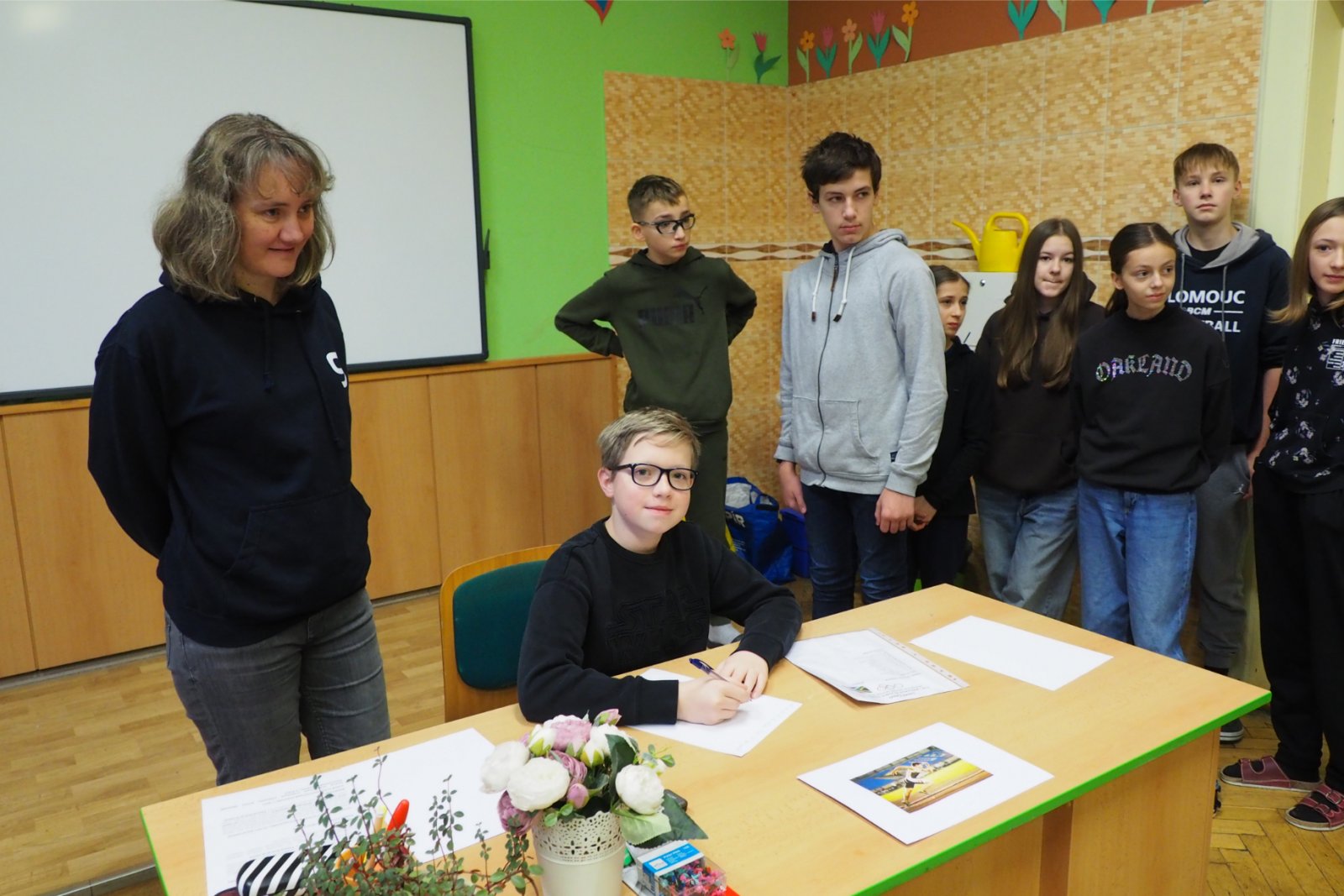 - složených ze žáků napříč ročníky - pojmenovaných dle různých světových zemí. Celý den tak žáci prvního i druhého stupně soutěžili, procházeli pestrými workshopy a sbírali cenné body do celkového hodnocení historicky Prvních olympijských her v anglickém jazyce na naší škole. A protože olympiáda znamená výkony, tak jednotlivá stanoviště reprezentovala dílčí disciplíny, které jsou součástí letních her. Soutěže a klání jako je štafeta, skok daleký, sprint, hod oštěpem nebo maraton jsme použili pro různé jazykové aktivity. Tedy například na stanovišti PARIS se děti utkaly v hodu oštěpem, ve štafetě a v trojskoku. Na místě MONTPELLIER změřily síly ve vrhu koulí, ve skoku dalekém a v maratonu. A co děti tedy opravdu plnily? Názvy disciplín sloužily jen jako metafory pro činnosti jako tvoření slov, skládání vět, slovní pyramida, uvádění správných tvarů nepravidelných sloves, vyhledávání klíčových informací v textu, psaní příběhů... Abychom dětem připomněli, že Olympijské hry 2024 se budou letos konat ve Francii, připravili jsme jim vědomostní kvíz a některé disciplíny byly věnované i historii olympijských her. Sportovní duch nás provázel celý den a ti nejšikovnější nakonec zvítězili. Závěrečný medailový ceremoniál v tělocvičně náš den anglického jazyka slavnostně zakončil. Mnoho jsme se naučili a všichni jsme si to moc užili.