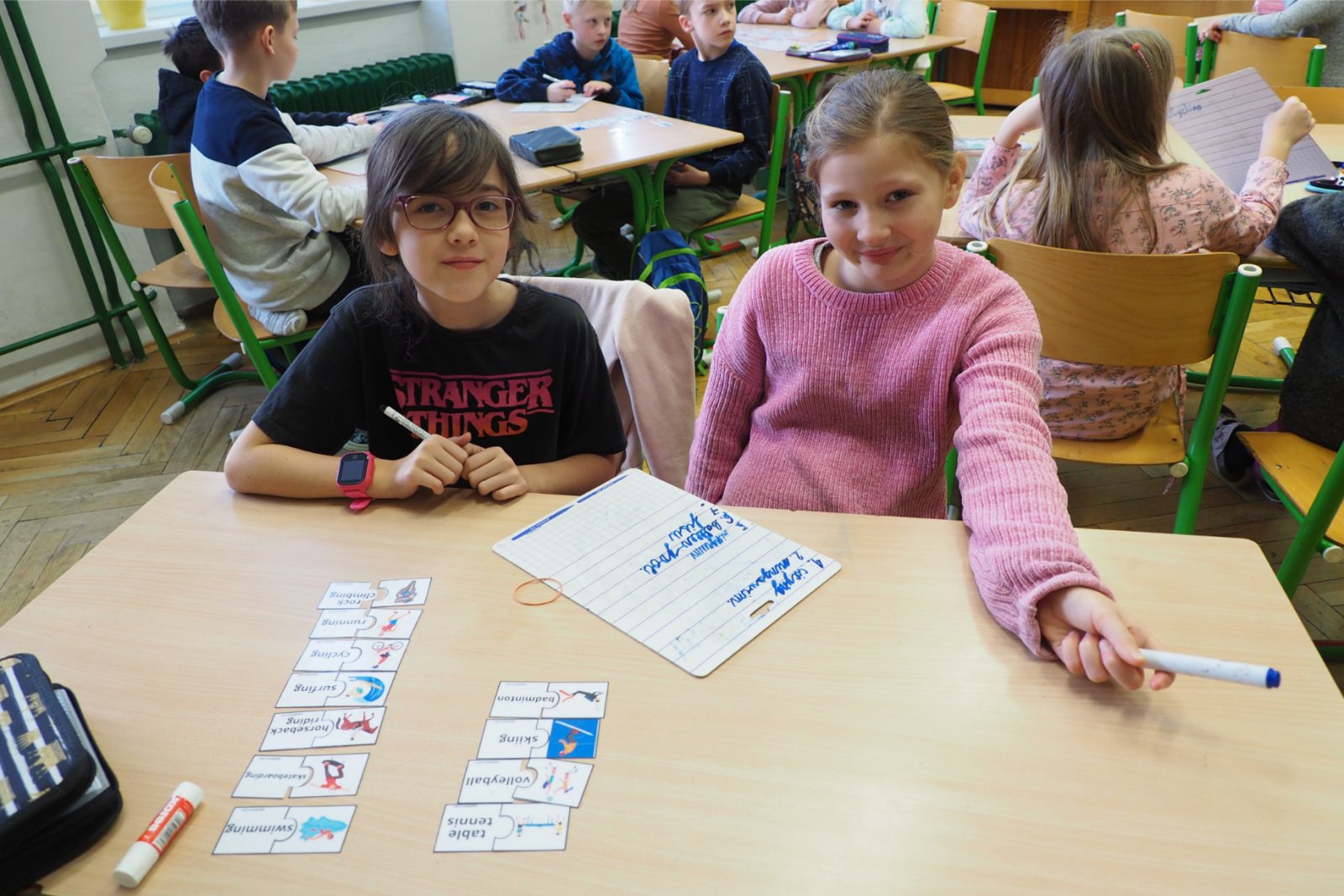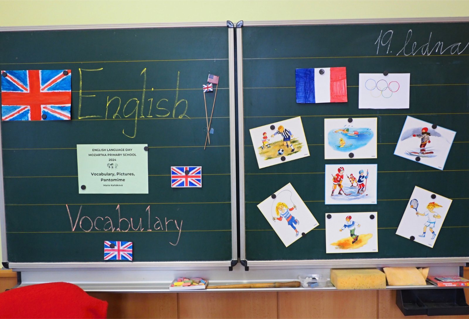 Devatenáctý leden patřil angličtině a sportovním hrám, neboť vyučující anglického jazyka se při volbě tématu nechali inspirovat nadcházejícími Olympijskými hrami konajícími se letos ve Francii. Uspořádali jsme dětem školní olympijské hry, avšak jazykové, tedy program tak trochu po našem. Děti soutěžily ve dvanácti týmech