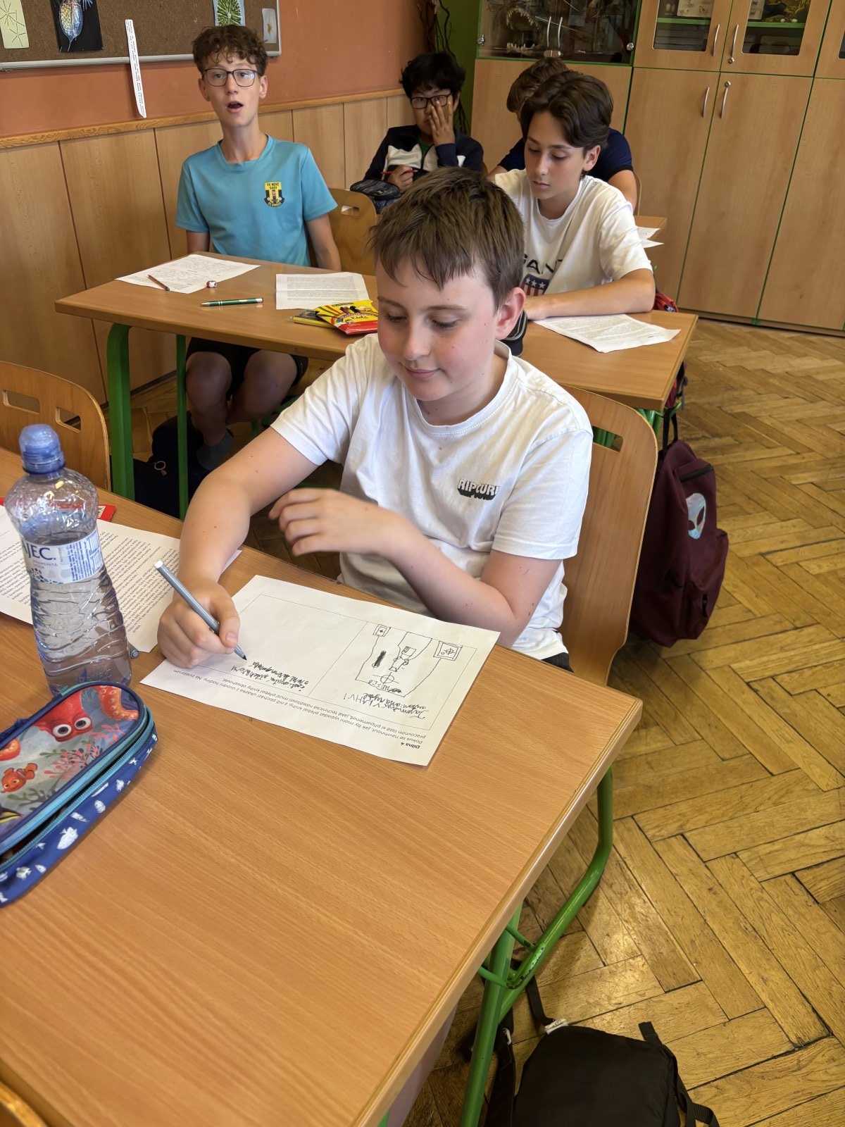 Ve čtvrtek 19. června 2025 se konal na naší škole již tradiční oborový den „Den čtenářství“, jehož cílem bylo podpořit a prohloubit čtenářskou gramotnost, a tím posílit kladný vztah žáků ke čtení. Žáci si prostřednictvím jednotlivých stanovišť vyzkoušeli nejen porozumění textu, ale především to, že je vždy důležité se nad přečteným textem zamyslet. Na prvním stanovišti si žáci pod vedením učitele společně vhodnou formou přečetli výchozí ukázku a následně plnili připravené úlohy k textu. Poté následovala další stanoviště – tvorba komiksu, předvídání