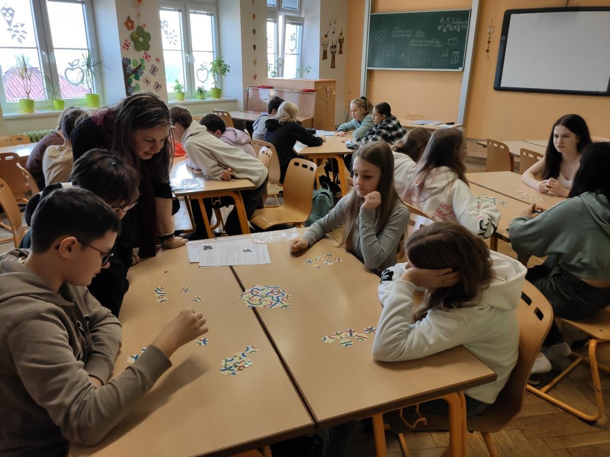 První čtvrtletí školního roku jsme v pátek 25. 11. uzavřeli oborovým dnem, který byl věnovaný MATEMATICE. Celé dopoledne strávily děti prvního i druhého stupně řešením logických úloh a hádanek, procvičily si prostorovou představivost, potrénovaly vizuální paměť. Oblíbeným stanovištěm bylo řešení logických hlavolamů zpracovaných v online prostředí Kahoot. Děti se dobře bavily a dokázaly, že si nejen umí hrát, ale také spolupracovat a pomáhat si.