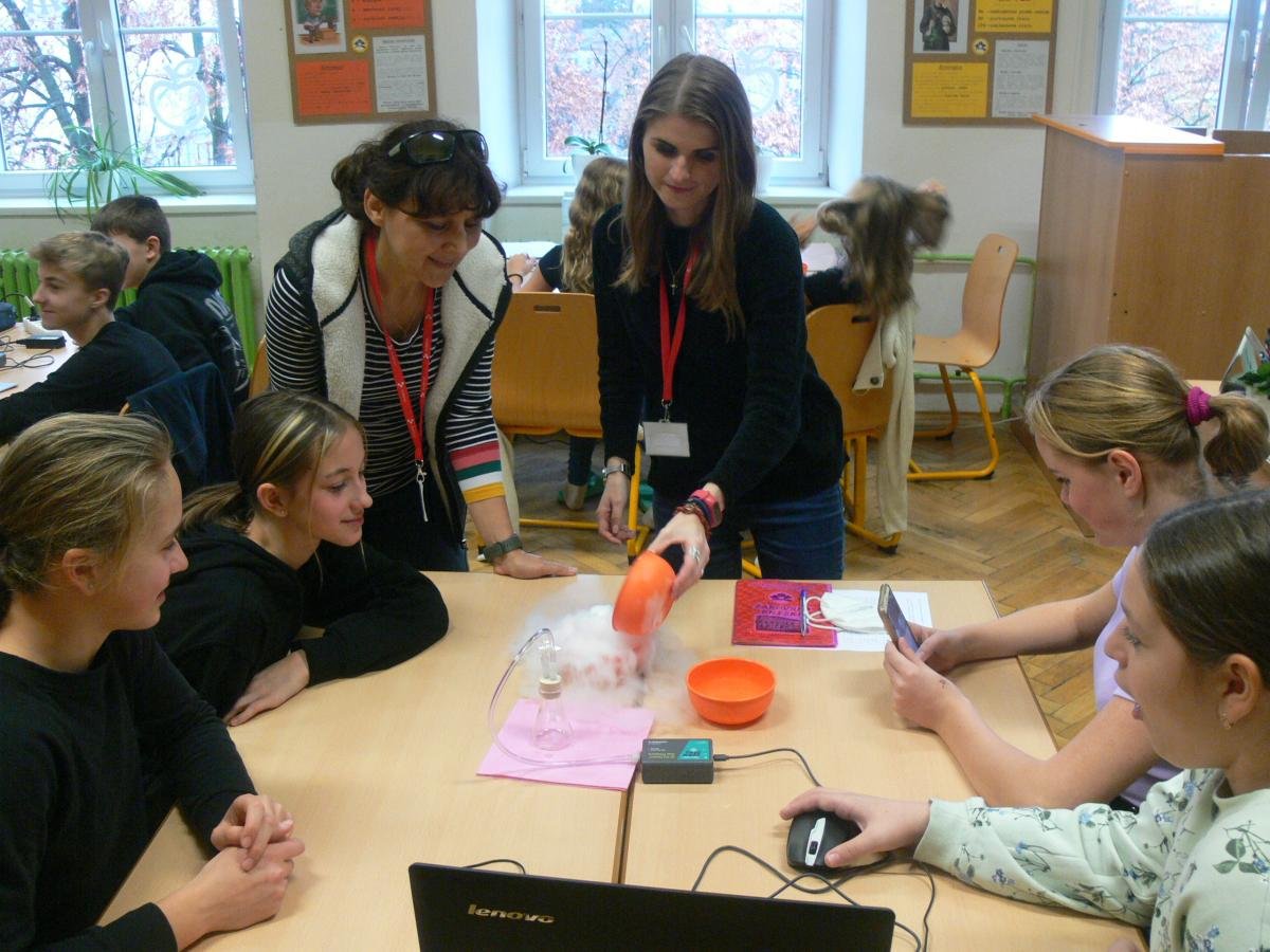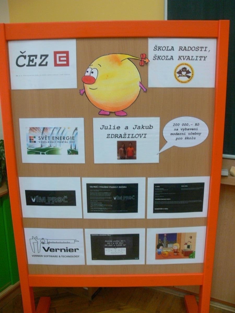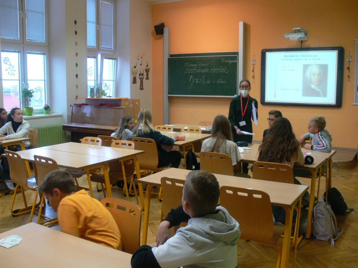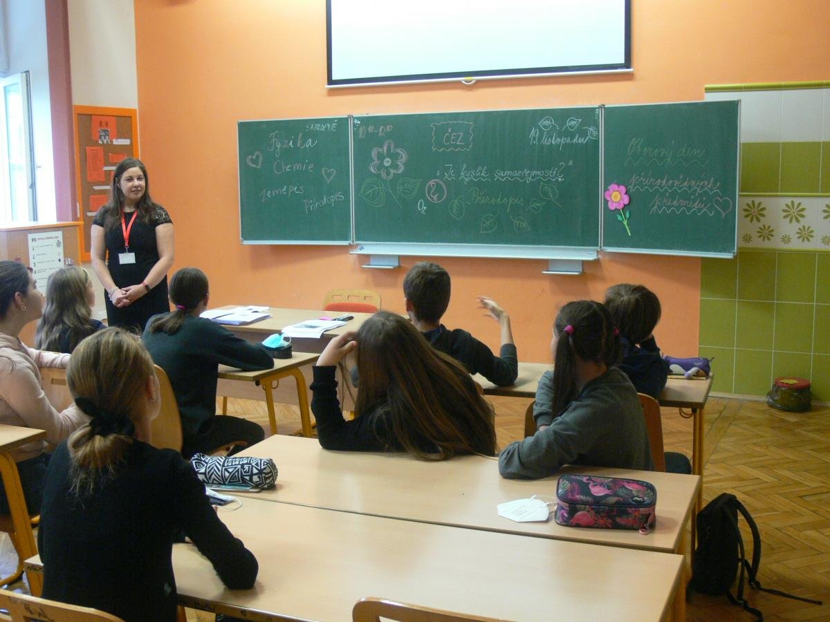 V pátek 19. listopadu se naši žáci stali malými vědci, na naší škole se totiž konal dlouho připravovaný oborový den přírodovědných předmětů u příležitosti předání ocenění za výhru v soutěži „Vím proč“ (o které jsme psali již dříve). U slavnostního předání samozřejmě nemohla chybět zástupkyně Nadace ČEZ Lucie Urbánková a jsme moc rádi, že se na naší akci přišli podívat i popularizátoři vědy z Pevnosti poznání a Univerzity Palackého v Olomouci.