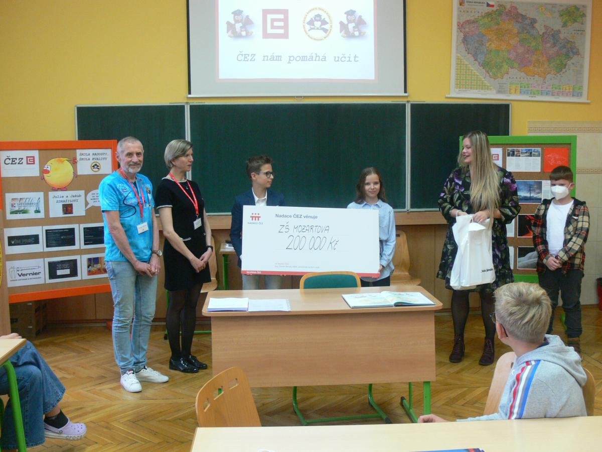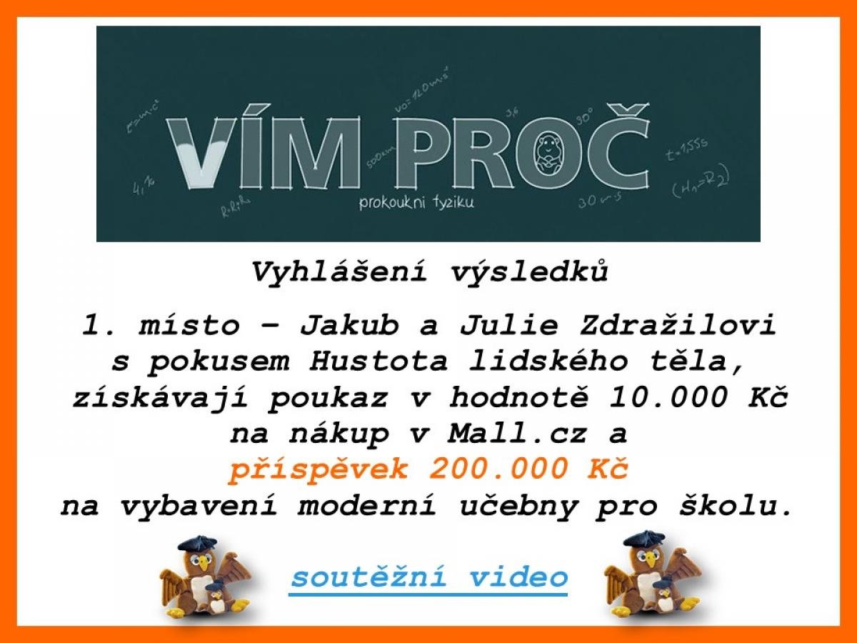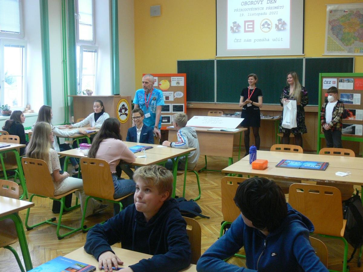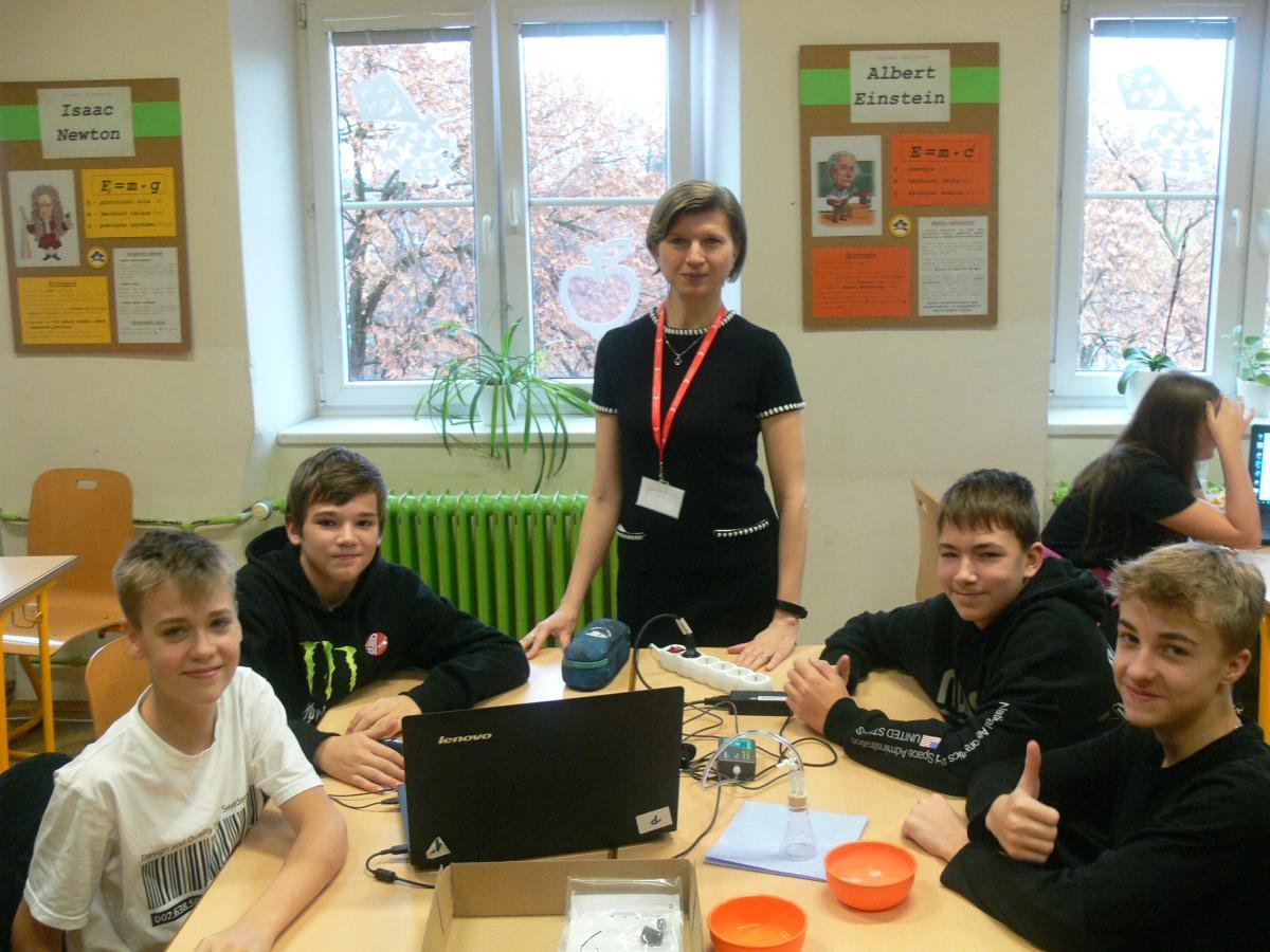 V pátek 19. listopadu se naši žáci stali malými vědci, na naší škole se totiž konal dlouho připravovaný oborový den přírodovědných předmětů u příležitosti předání ocenění za výhru v soutěži „Vím proč“ (o které jsme psali již dříve). U slavnostního předání samozřejmě nemohla chybět zástupkyně Nadace ČEZ Lucie Urbánková a jsme moc rádi, že se na naší akci přišli podívat i popularizátoři vědy z Pevnosti poznání a Univerzity Palackého v Olomouci.