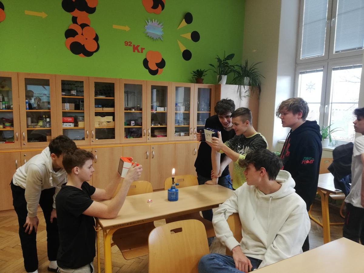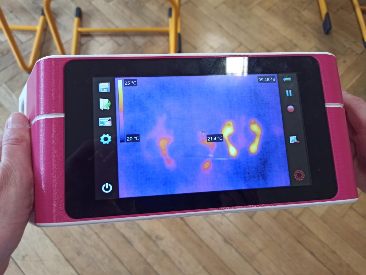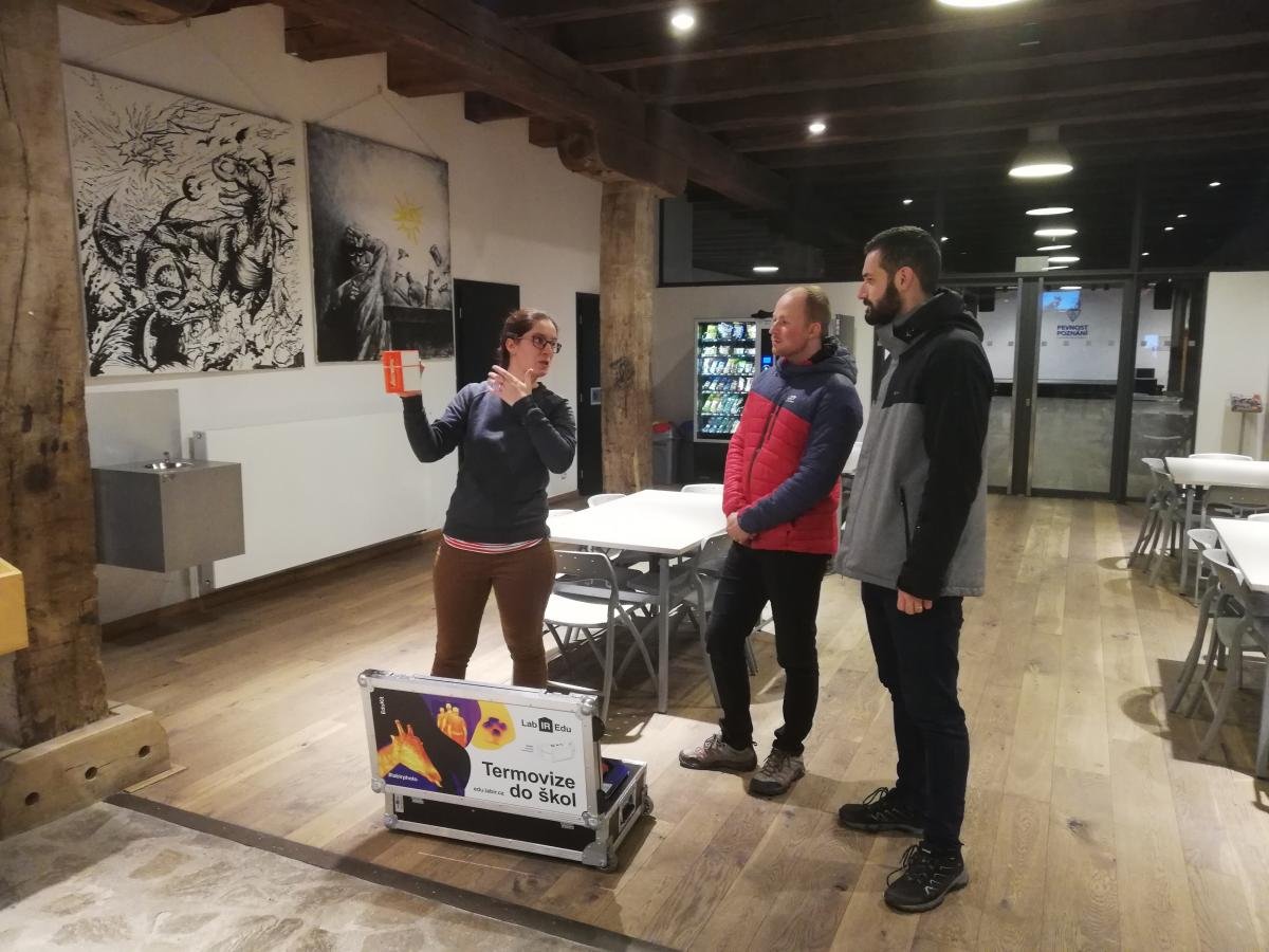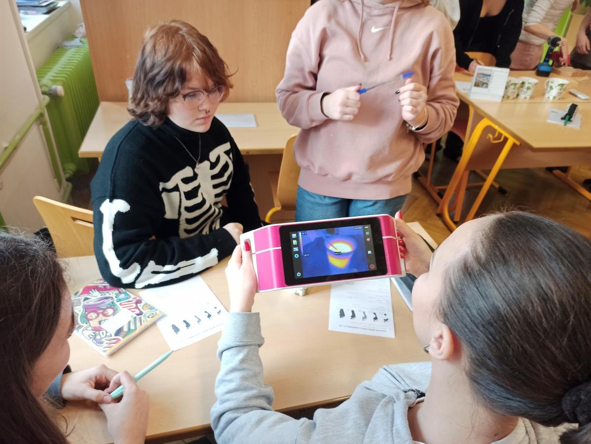 V rámci spolupráce s Pevností poznání jsme si zapůjčili do výuky přírodovědných předmětů výukovou pomůcku 21. století - termokameru. Ve škole jsme tak měli kufr s pěti kamerami k dispozici necelý měsíc. Kde jsme kamery využili? Co jsme se naučili, ověřili a co nás překvapilo? Například ve fyzice jsme pozorovali sdílení tepla u různých těles, v chemii reakční teplo a v přírodopisu studenokrevná zvířata. Skupinová práce s kamerami byla pro žáky zajímavou zkušeností, jak se podívat kolem sebe jinýma očima.