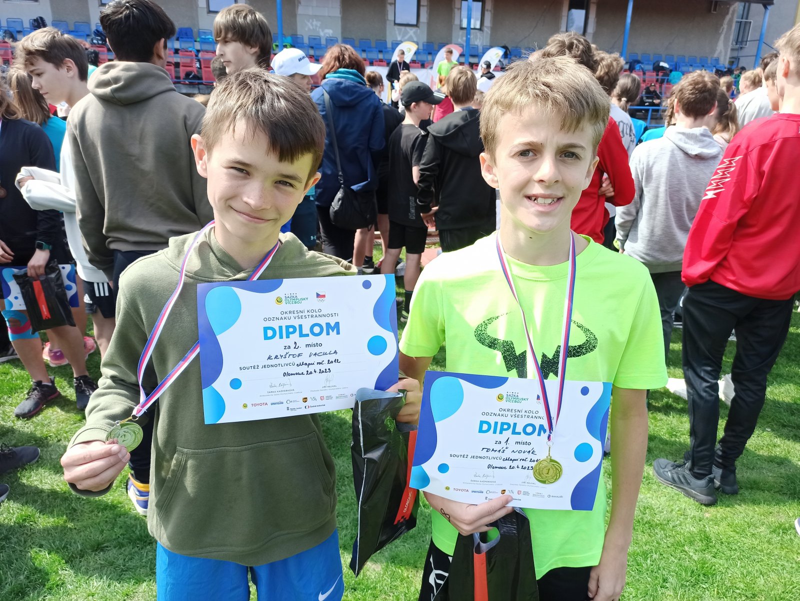 Dne 20. dubna 2023 se naše škola zúčastnila okresního kola Odznaku všestrannosti olympijských vítězů 2023. Akce, jíž se zúčastnilo 16 škol (20 týmů) z Olomouce a okolí, se konala na atletickém stadionu TJ Lokomotiva Olomouc. Naše škola sestavila dvě družstva. Starší tým byl složen z těchto žáků: Sofie Dvořáková, Tereza Mrnková, Kristýna Navrátilová, Dominika Tvardíková, Mikuláš Hrubý, Jakub Loveček, Michal Pompa a Teodor Štěpánek. Mladší tým reprezentovali: Julie Janíková, Anna Kubešová, Julie Tvardíková, Viktorie Weiserová, Erik Dubický, Tomáš Novák, Kryštof Vacula a Vít Weiser. V kategorii jednotlivců za naši školu závodili: Sofie Mlčáková a Lukáš Hebelka.