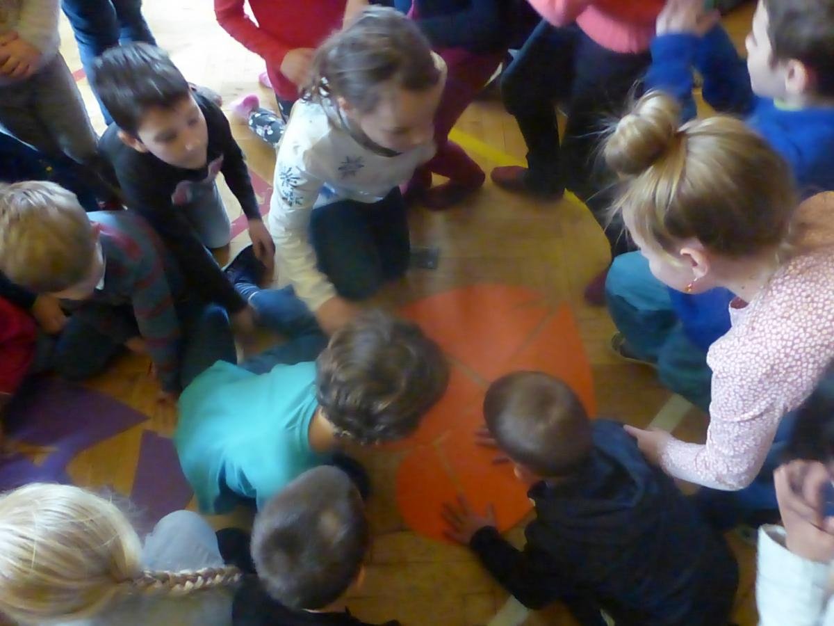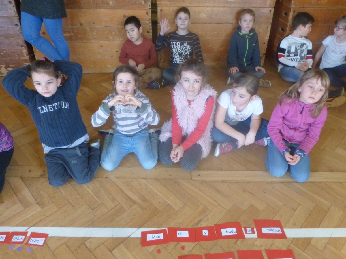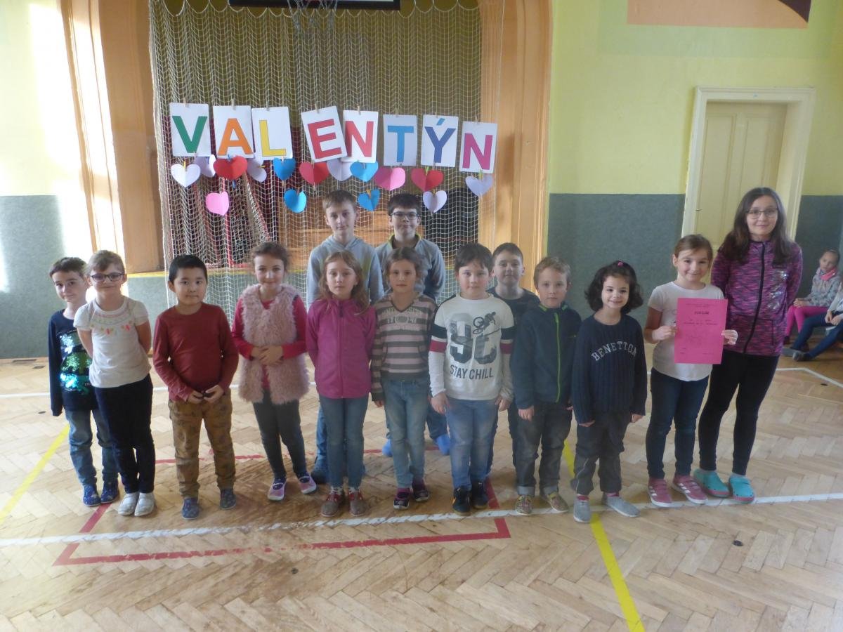 Ve čtvrtek jsme si s dětmi v tělocvičně uspořádali zábavné valentýnské odpoledne. Oddělení mezi sebou soutěžila ve čtyřech disciplínách: skládání papírového srdce, hledání srdíček, slalom ve dvojici s balónem, skládání zamilované věty.