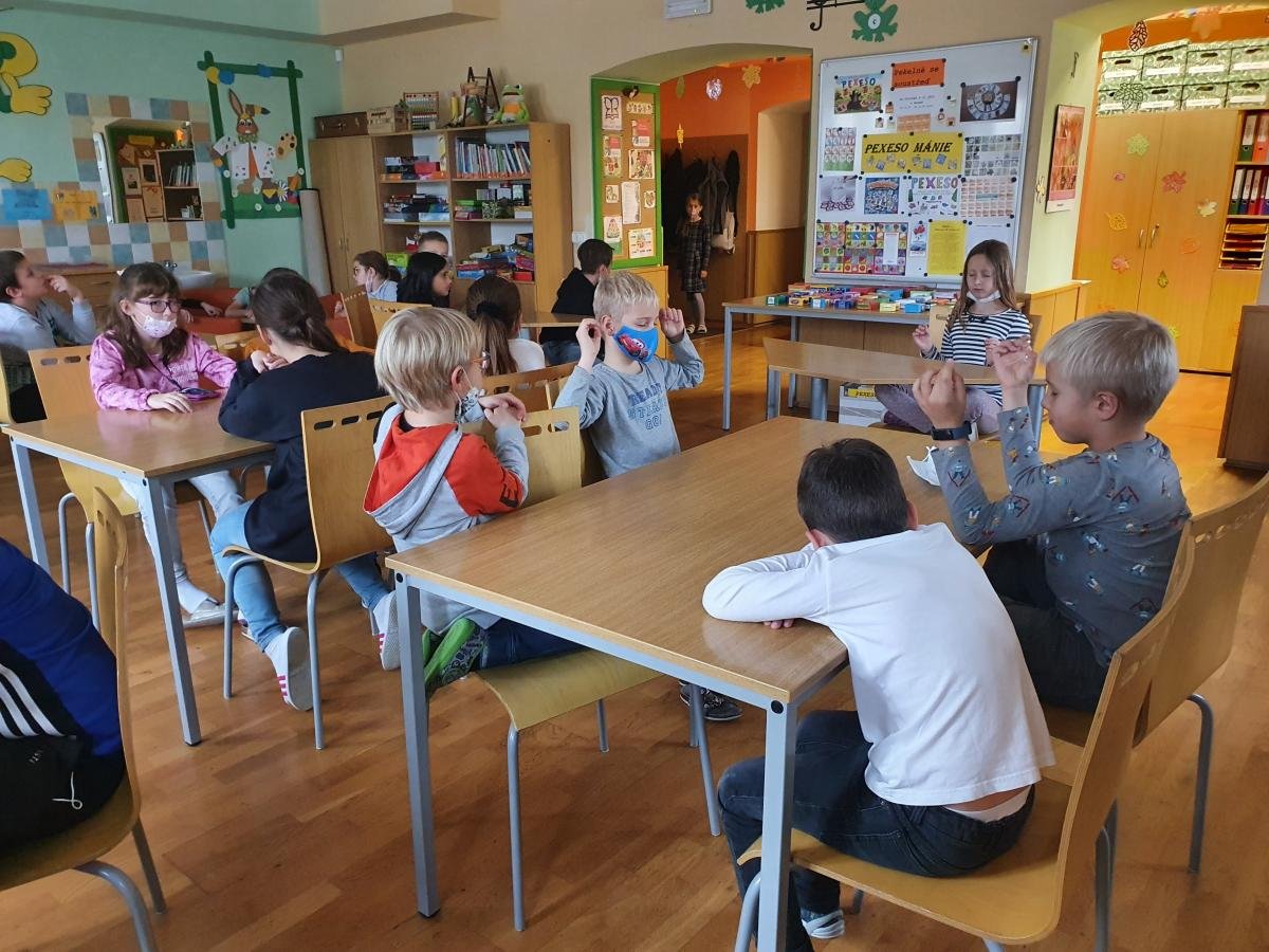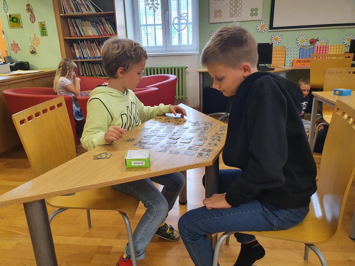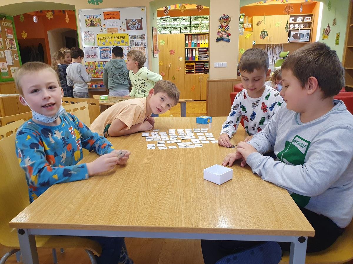 Víte, že název karetní hry pexeso vznikl právě z těchto slov PEKelně SE SOustřeď? Děti ze školní družiny to ví a opravdu se ve čtvrtek v herně pekelně soustředily při hrách ve dvojicích i čtveřicích. Na výběr měly z více než dvaceti druhů pexes různých obtížností. Velký zájem vzbudilo také sluchové pexeso.