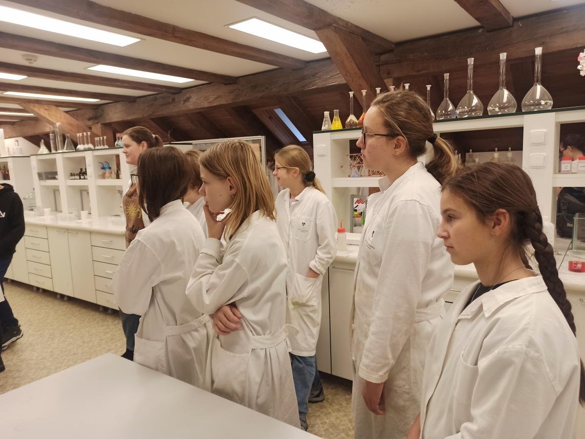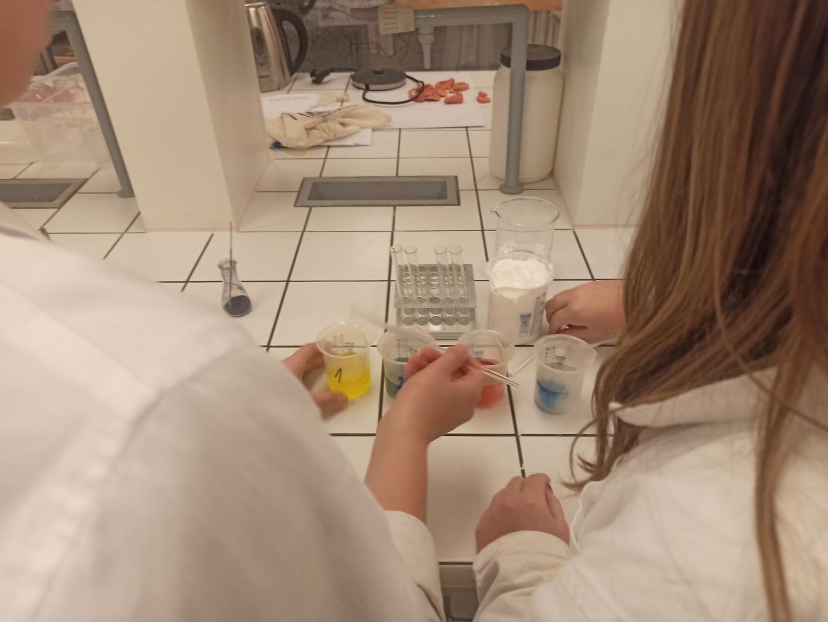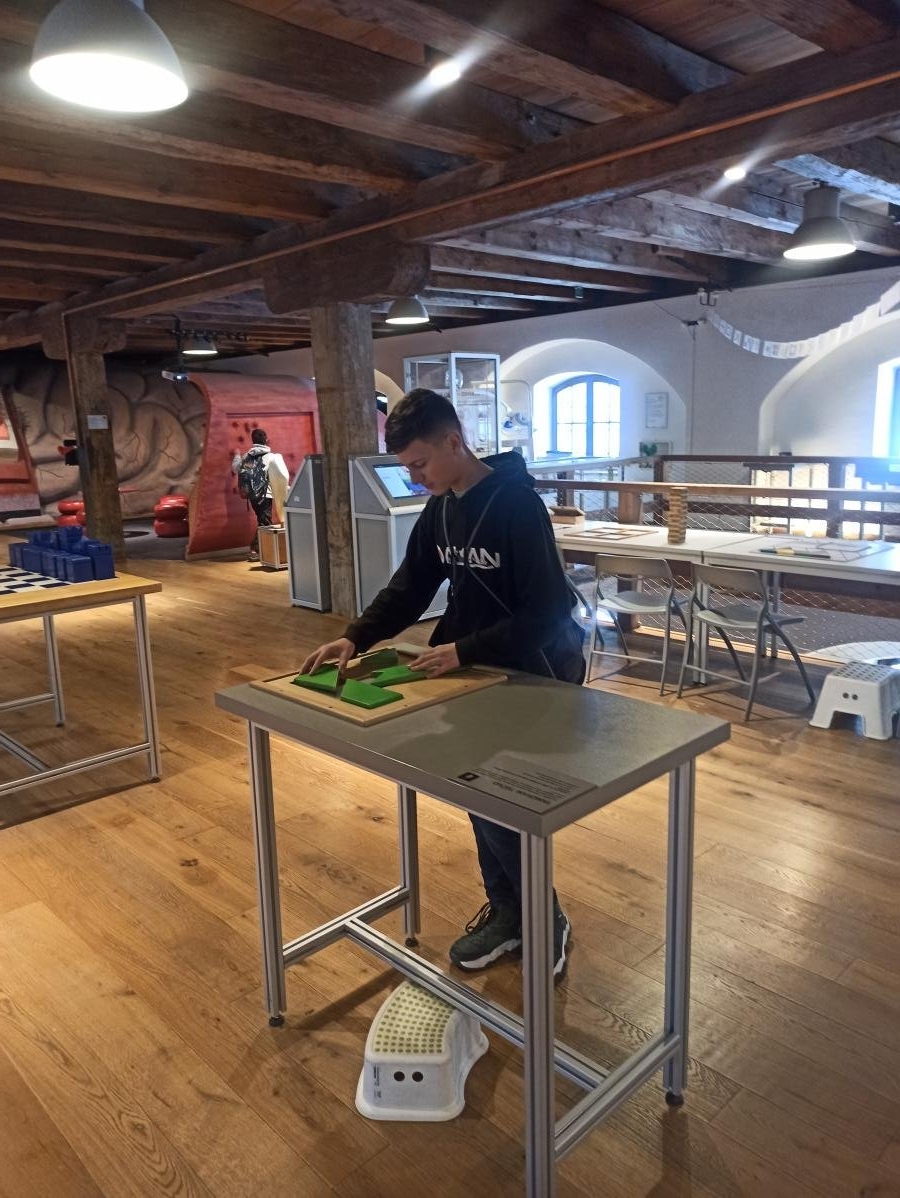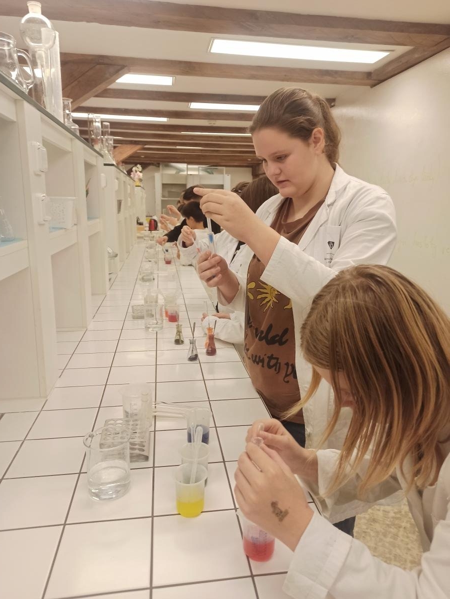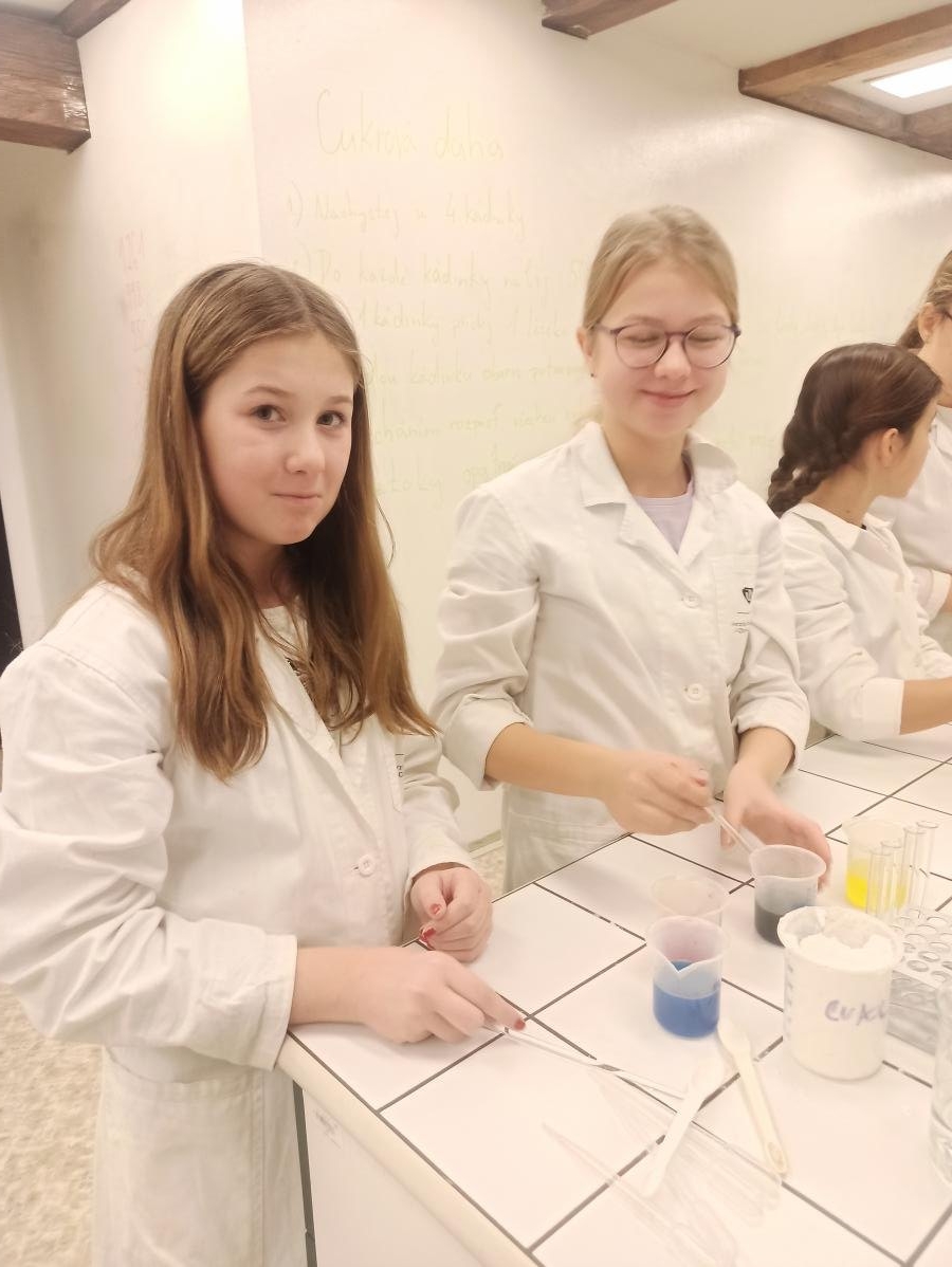 s teoretickými poznatky – co je to hustota i jak ji vypočítáme. V praktické části pak žáci dostali ochranný plášť a následně si vyzkoušeli laboratorní práci - ukázku v laboratoři s jednotlivými roztoky. Děti praktická demonstrace moc bavila, dozvěděly se mnoho nových poznatků a také si užily hodně smíchu a radosti. V druhé části programu si pak žáci prohlédli jednotlivé zajímavé expozice, které si prakticky vyzkoušeli, a z celého dne si tak s sebou mohli odnést cenné poznatky.