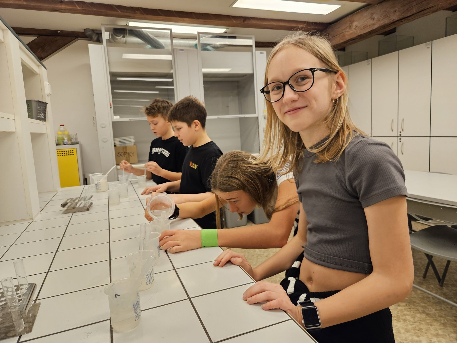 Naši šesťáci se v únoru vydali do Pevnosti poznání, kde je čekal program Hustá chemie. V laboratoři si na vlastní oči ověřili, jak hustota ovlivňuje svět kolem nás.