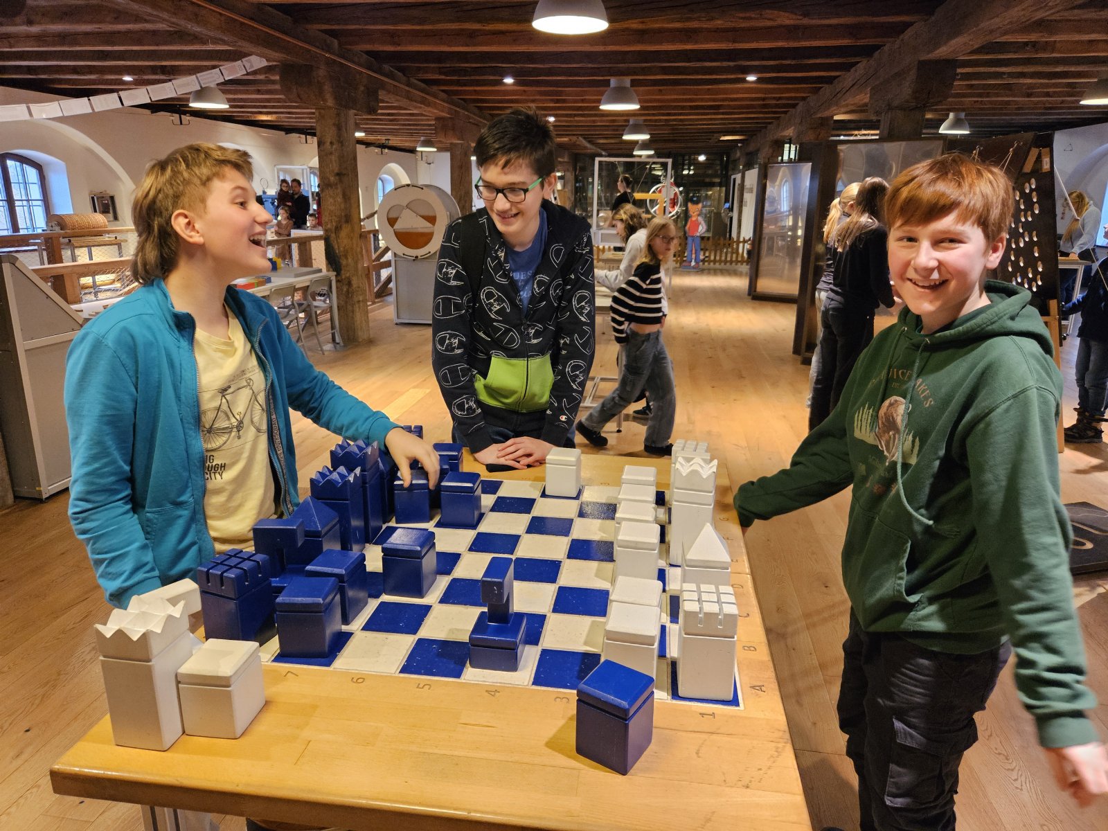 V kreativní dílně se pak věnovali srovnávání hustoty různých látek – vody, vzduchu, dřeva či železa. Po experimentování si mohli prohlédnout interaktivní expozici Rozum v hrsti, kde se pobavili i poučili