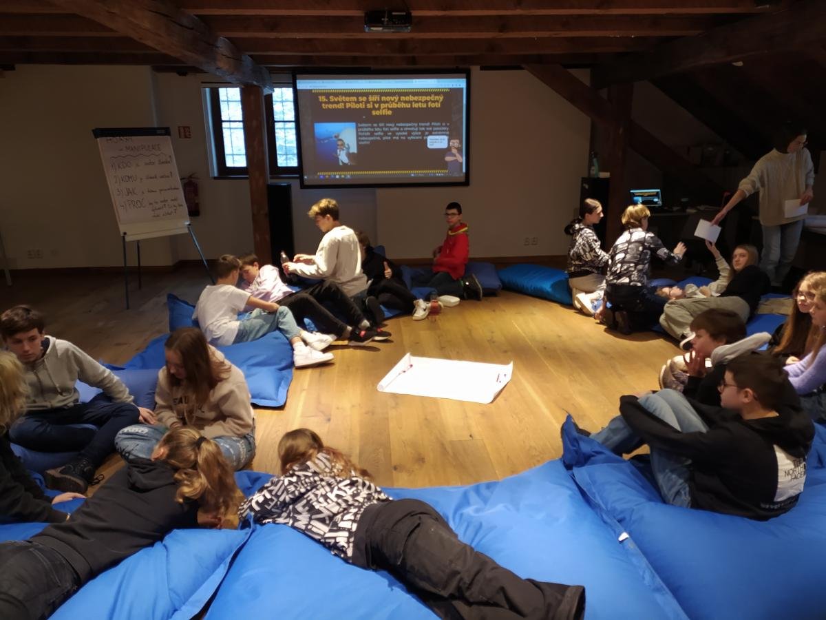 V první části nejdříve žáci zažili brainstorming na téma dezinformace a sociální sítě, poté řešili pravdivosti různých informací a dozvěděli se, na co si mají dávat pozor.