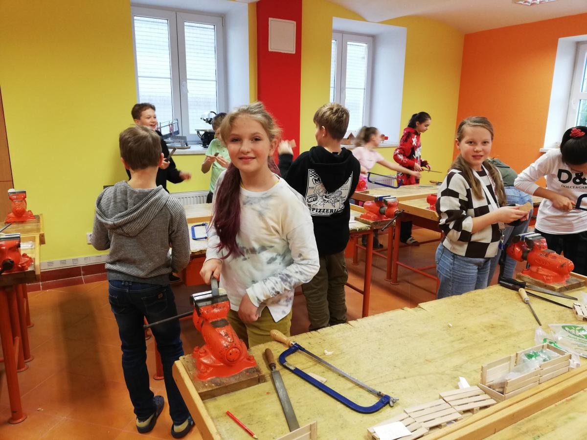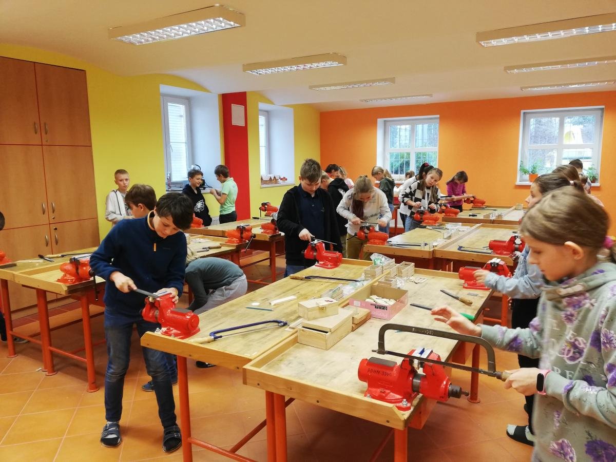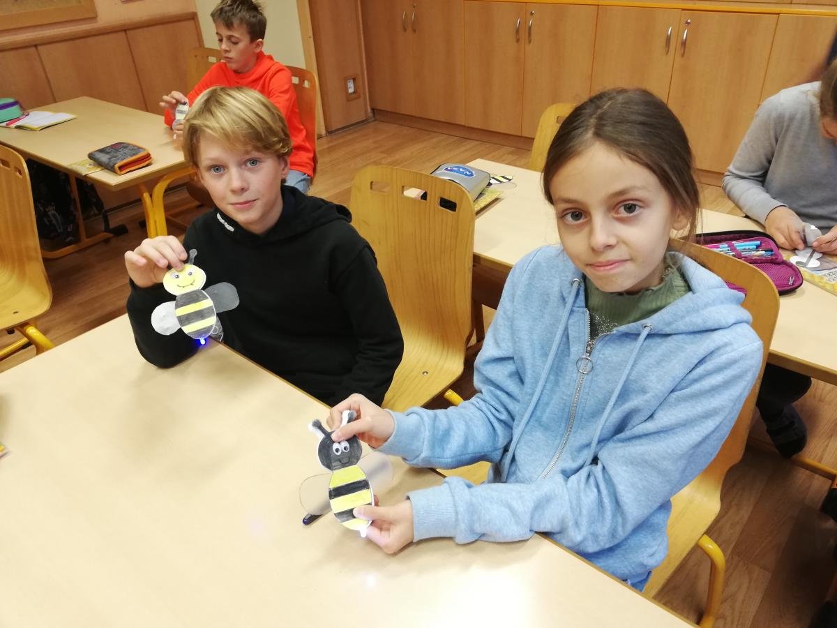 Nejprve jsme si připravili jednoduchou svačinku z pečiva, másla a medu. Potom jsme si vyrobili svítící včelku, která měla místo žihadla LED diodu. Zároveň jsme se tak naučili, něco málo o elektrickém proudu. Projekt jsme zakončili ve školní dílně. Úkolem bylo vyřezat klíčenku ve tvaru včelí plástve, navrtat do ní dírku pro závrtné očko a zkompletovat ji. V přiložené fotogalerii se můžete podívat, jak se nám dařilo a jak nám chutnalo.