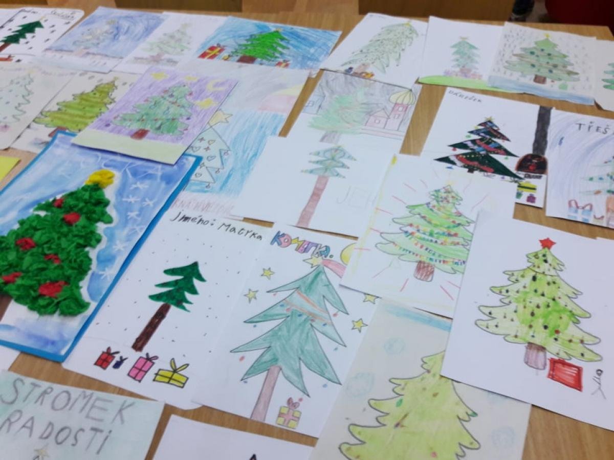 Statutární město Olomouc vyhlásilo letos již 16. ročník tradiční soutěže POJMENUJ VÁNOČNÍ STROM. Každoročně jsou naše děti účastníky tohoto klání, před několika lety jsme dokonce zvítězili - vánoční stromeček byl pojmenován našimi dětmi - NADĚJE. Jak to bude letos, to je ve hvězdách. Ve školní družině, na prvním i druhém stupni jsme stromečky malovali, namalované pojmenovali a teď jsme moc a moc zvědaví, jak obstojíme v soutěžním klání. Několik obrázků, které namalovaly děti ze školní družiny Vám nyní ukazujeme.