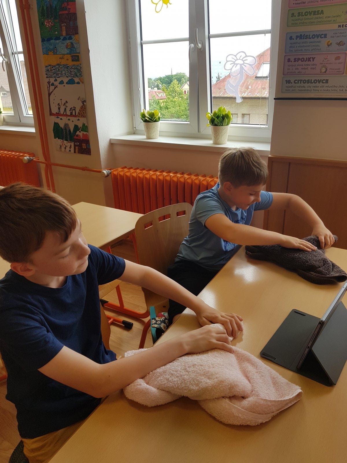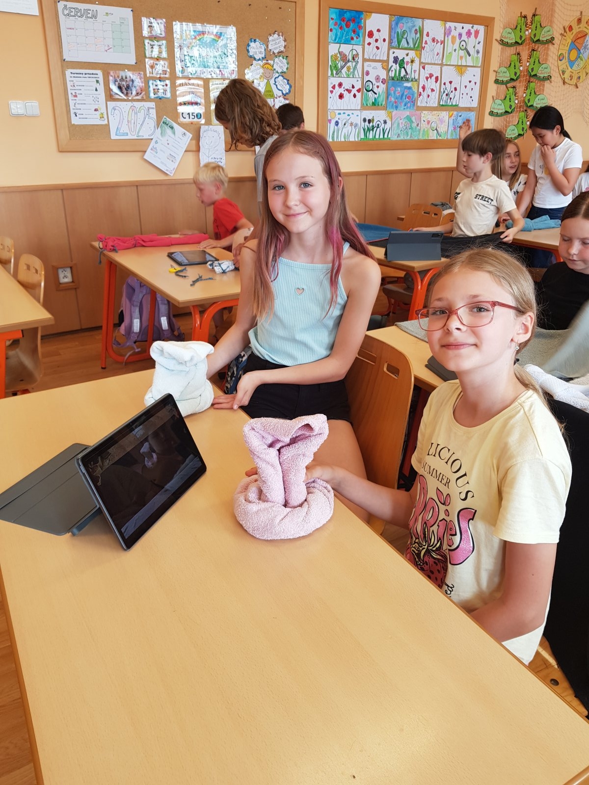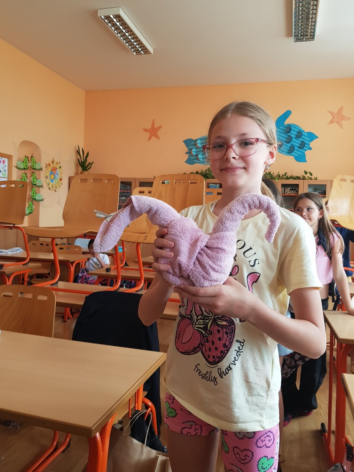 V hodině pracovní činnosti jsme se tentokrát pustili do tvoření s netradičním materiálem – ručníkem. Žáci si vyzkoušeli svou zručnost a kreativitu při výrobě zvířátek z ručníků, a výsledky byly opravdu povedené!