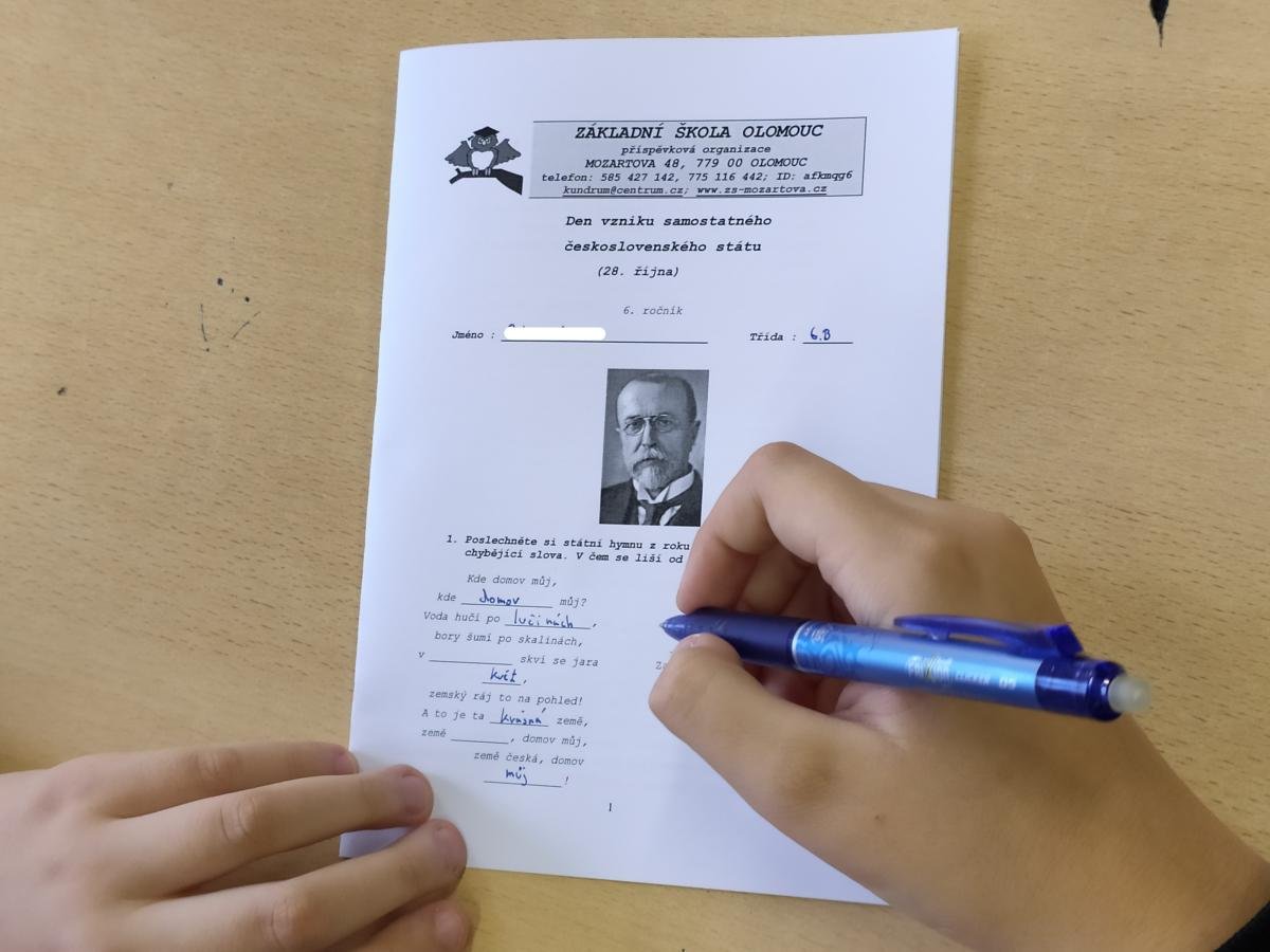Věříme, že žáci státní svátky nebrali pouze jako dny volna, ale také pochopili jejich význam. V těchto tematicky zaměřených hodinách budeme i nadále pokračovat a příště si připomeneme výročí vzniku samostatné České republiky.