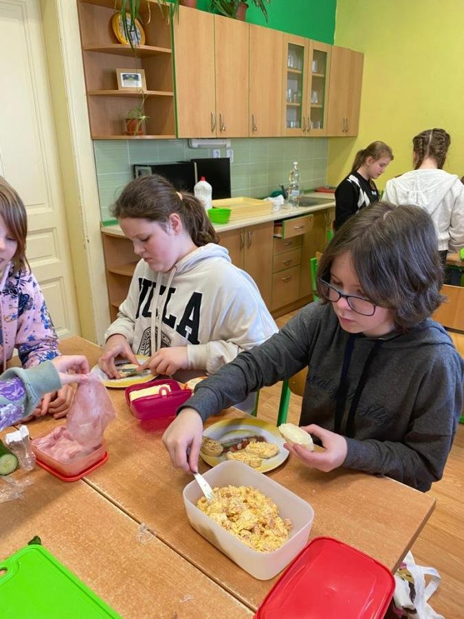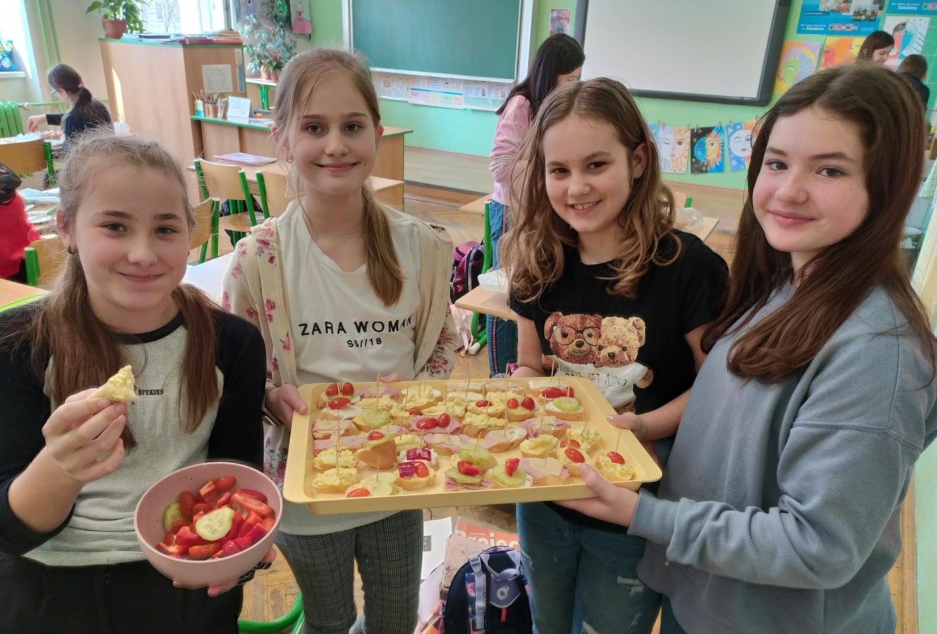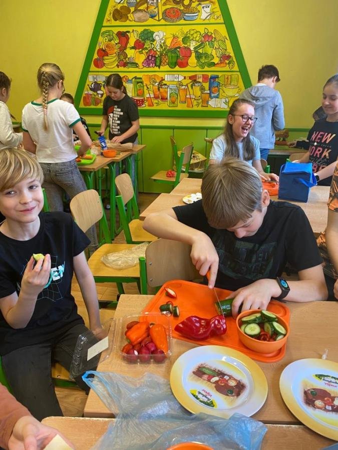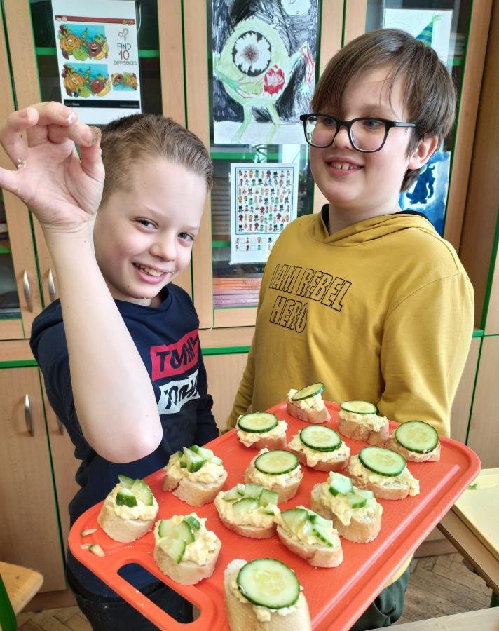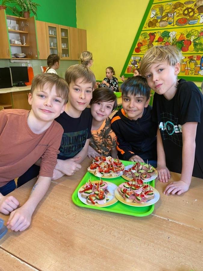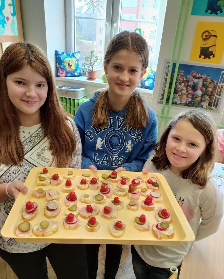 Žáci pátých tříd svou výuku pracovních činností pojali tentokrát úplně jinak. Náplní jejich hodiny byla zdravá výživa a příprava jednoduchého pokrmu. Žáci si přinesli potřebné suroviny, které během hodiny očistili, nakrájeli a pak už zapojili svou fantazii a pustili se do samotné přípravy a zdobení. Na závěr hodiny jsme měli možnost ochutnat jednohubky i svých spolužáků. Ve třídě vládla přímo kuchařská atmosféra a v galerii můžete posoudit, jak se žákům podařilo splnit tento úkol.