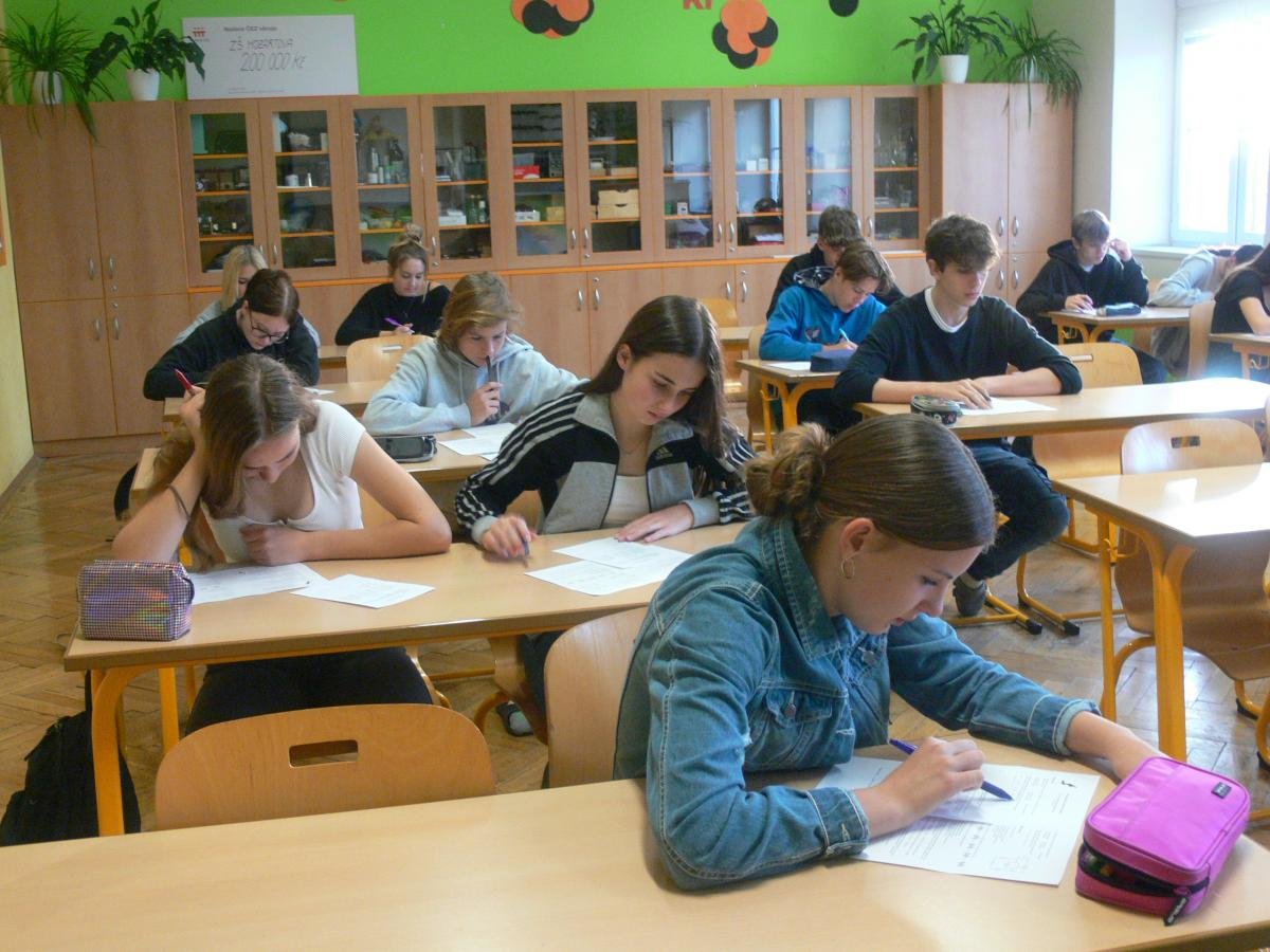 Ve středu dne 12. října 2022 proběhla na naší škole soutěž Přírodovědný klokan, kterou pořádá Přírodovědecká fakulta Univerzity Palackého v Olomouci ve spolupráci s Pedagogickou fakultou UP v Olomouci. Cílem soutěže je vzbudit zájem žáků o technické a přírodovědné obory. Soutěž byla určena pro žáky 8. a 9. tříd. Žáci řešili celkem 24 otázek z oblasti biologie, fyziky, chemie, matematiky a zeměpisu. Nejlepší řešitelkou Přírodovědného klokana se stala žákyně třídy 9. B Anička Šavrňáková se ziskem 64 bodů. Gratulujeme.