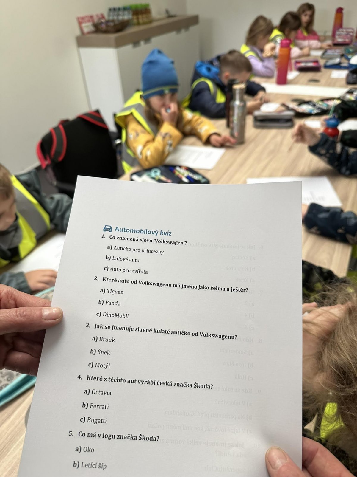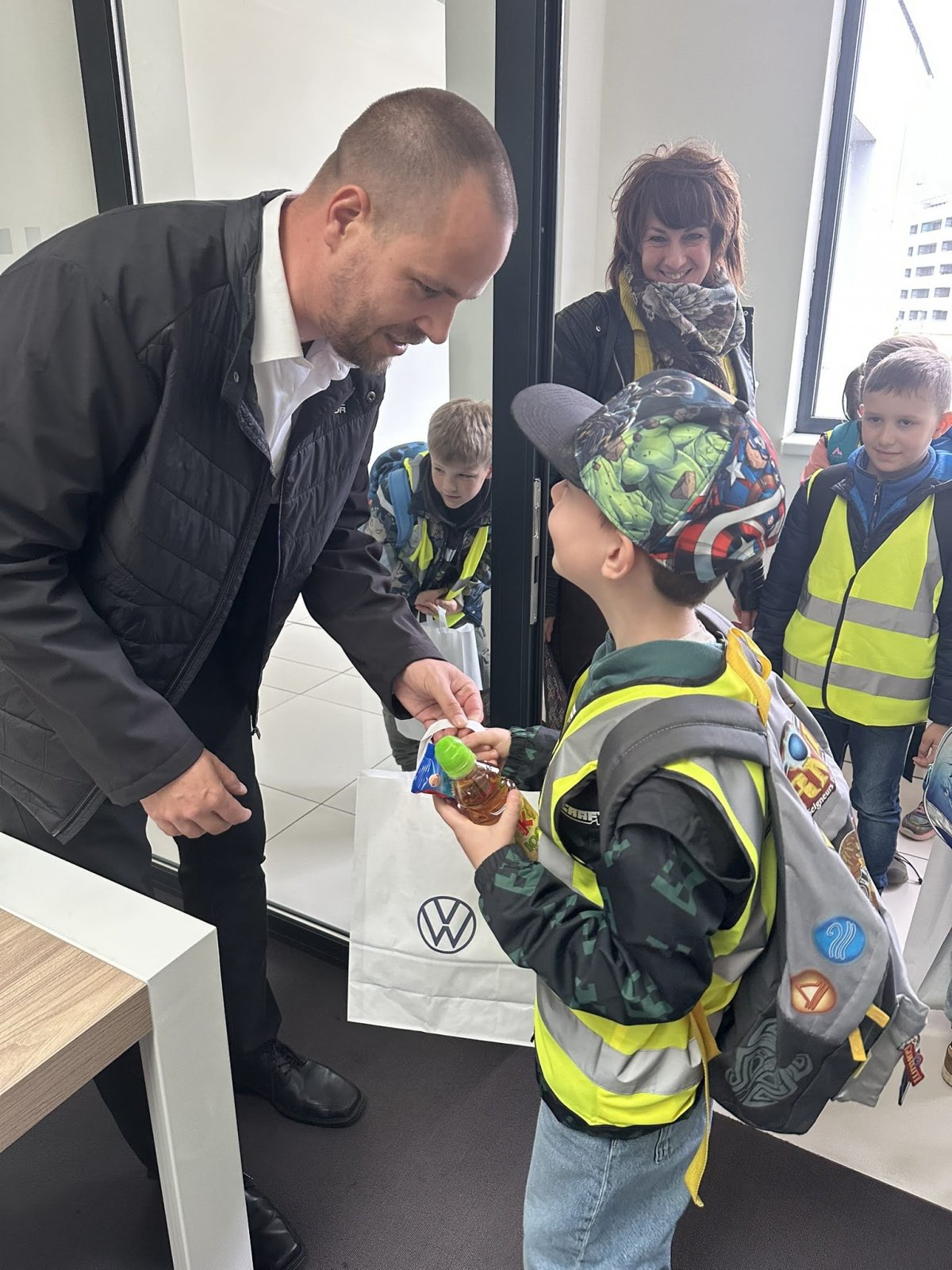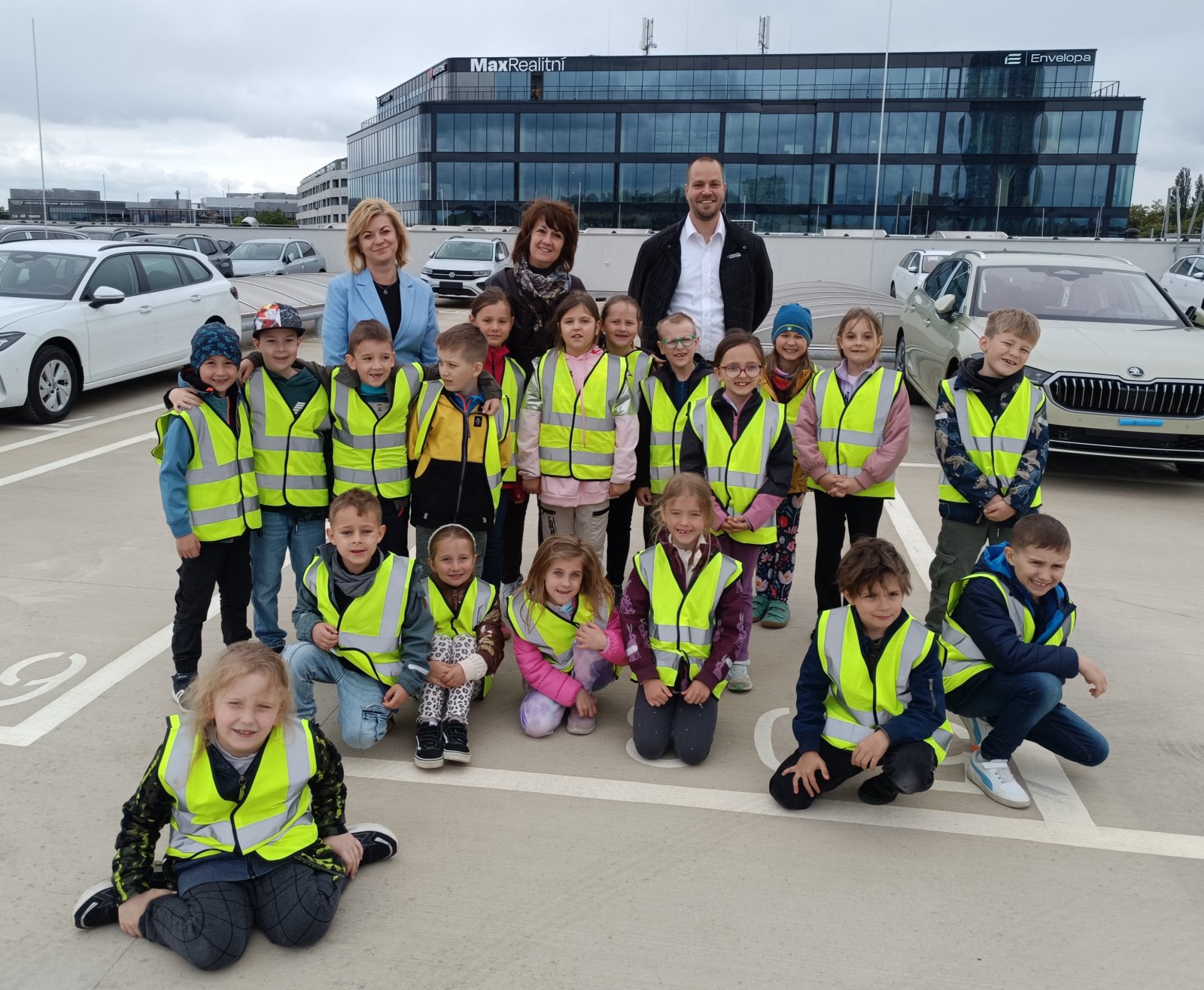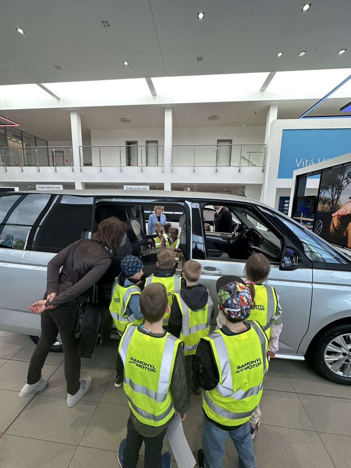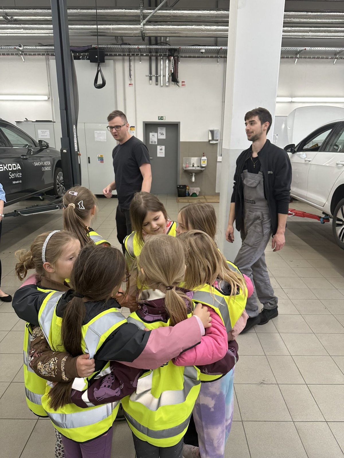 Cesta tam i zpět byla trošku v duchu turistiky, ale na bolavé nohy se díky zážitkům brzy zapomnělo. Děti si prohlédly nové vozy značky Audi, VW a Škoda a následně navštívily přidružené provozy, které dbají na kvalitu aut a spokojenost zákazníků. V dílně si každý prvňáček zkusil zašroubovat šroub při výměně kol a velkým zážitkem byla i cesta výtahem pro auta na střechu firmy. Po úspěšném absolvování závěrečného kvízu děti od našeho hostitele převzaly taštičku s dárky. Radost nebrala konce a my pevně věříme, že ji měly nejen malí školáci a paní učitelky, ale také všichni zaměstnanci, kteří se jim v průběhu dopoledne věnovali.