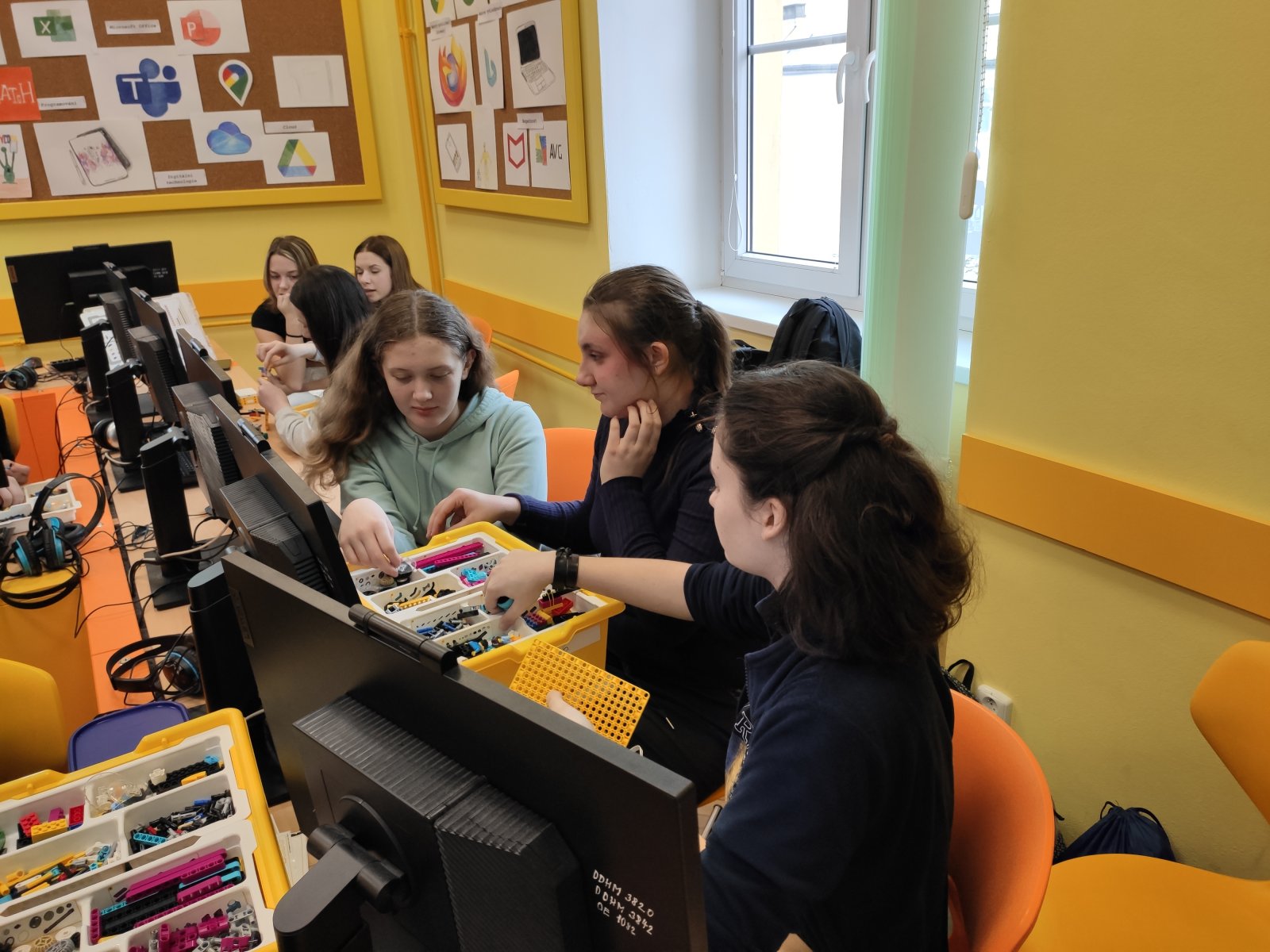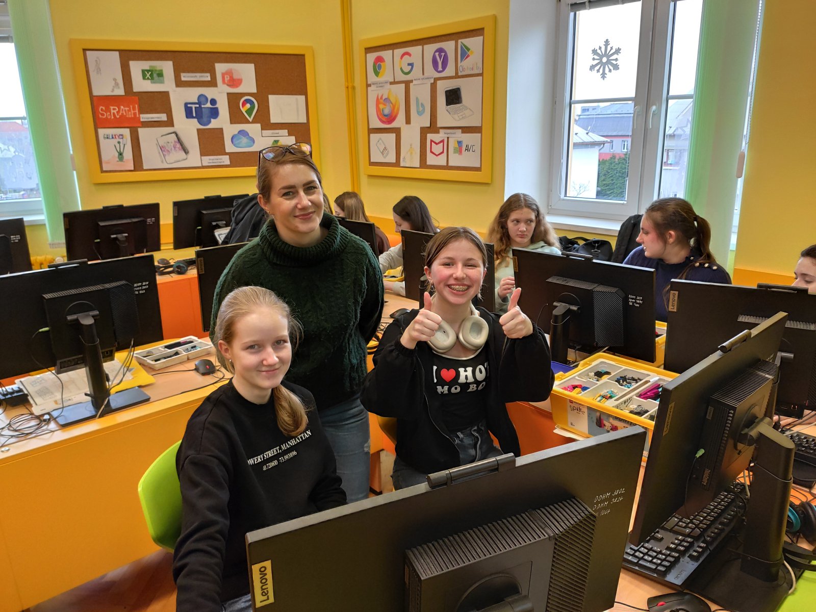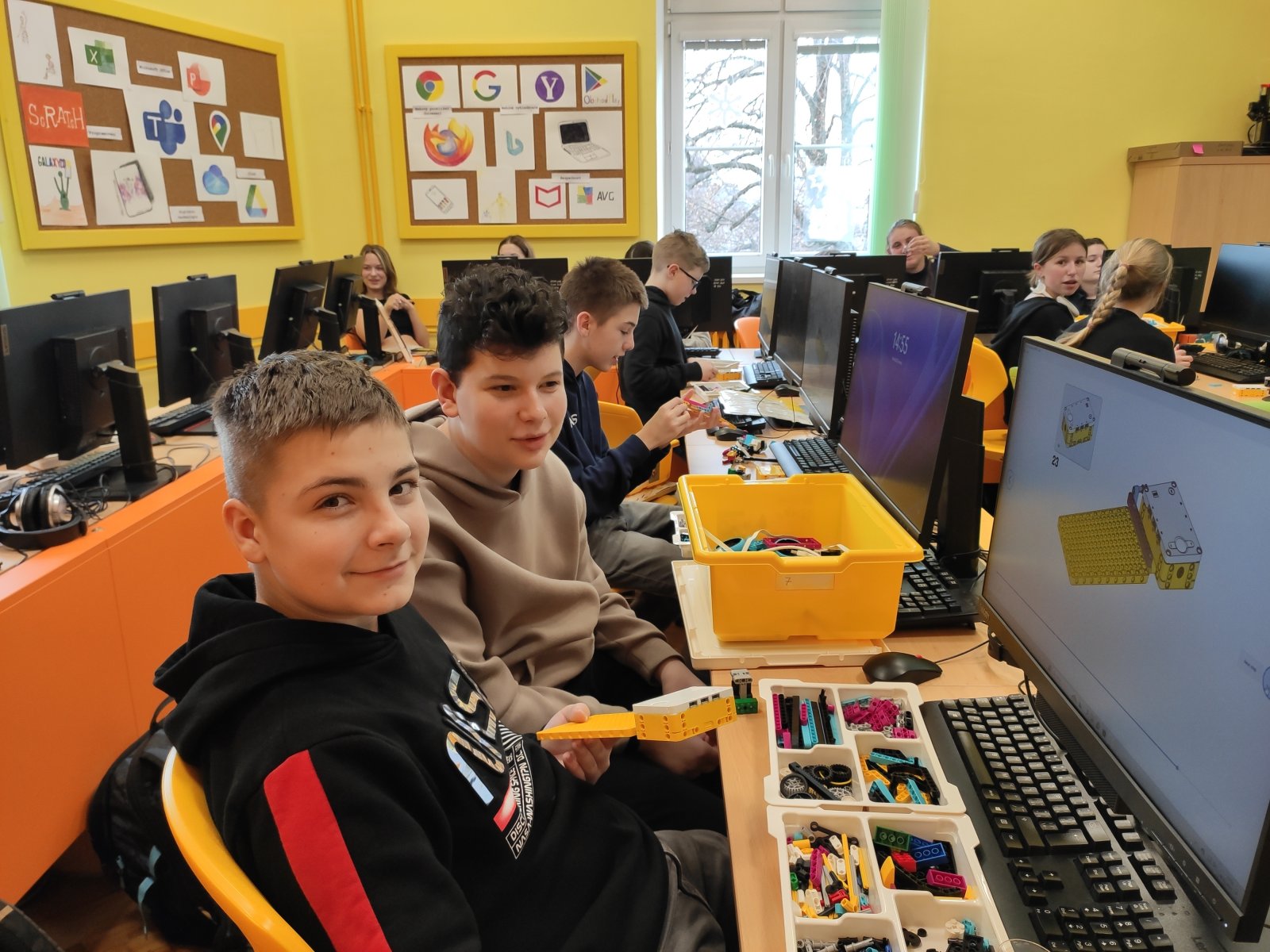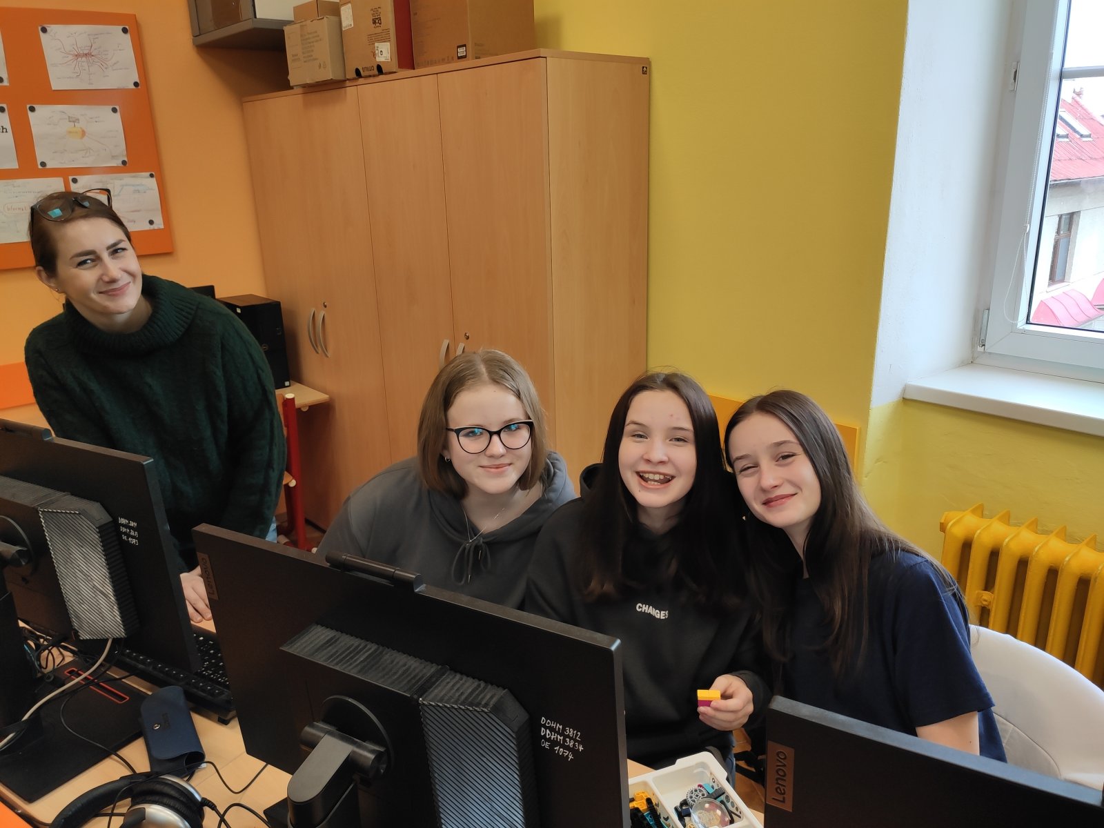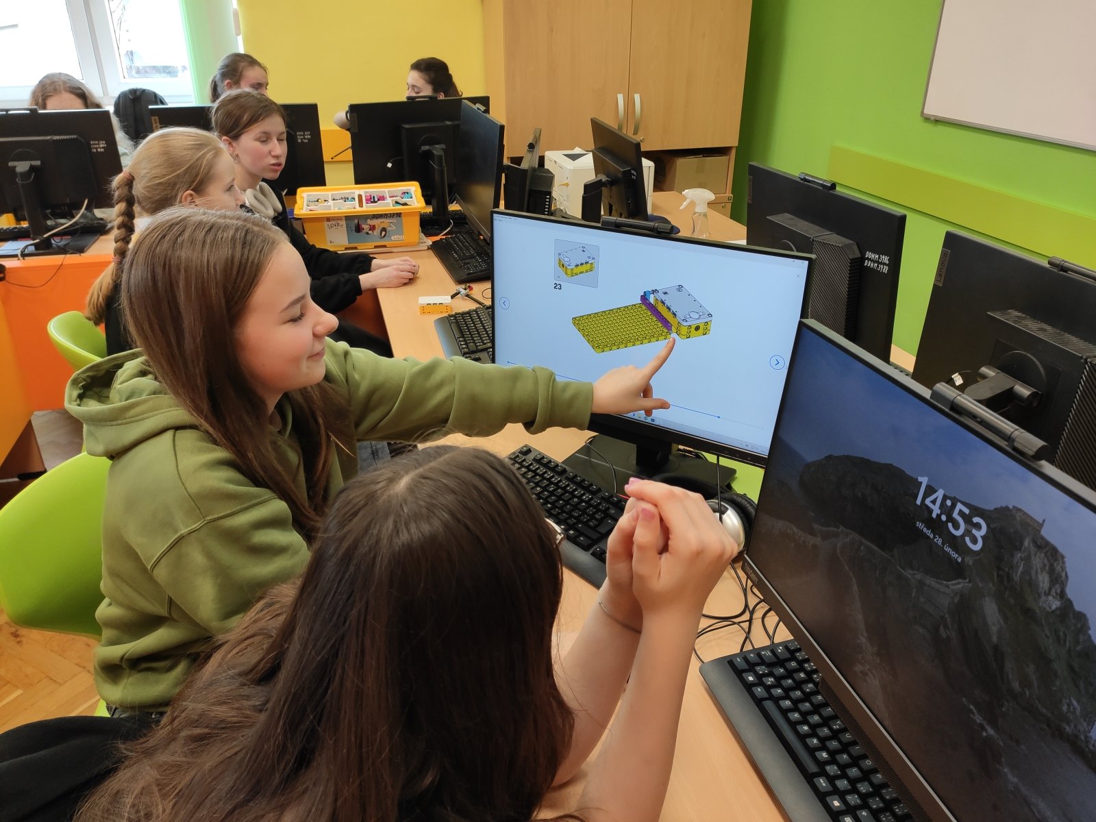 Programování se pro naše žáky stalo běžnou součástí hodin informatiky. Postupně se učí vytvářet různé algoritmy vedoucí k vyřešení zadaného problému. Většinou se tato činnost odehrává v prostředí Scratch, ve kterém žáci „udílejí pokyny“ virtuálním postavám. V 8. ročníku se žáci posouvají na další úroveň, a sice na programování fyzického objektu – robota. Ve škole pracují se stavebnicí LEGO Education SPIKE, jejíž více než 500 součástek nabízí značný potenciál pro žákovskou kreativitu. Žáci se učí sestavovat robota podle návodu, seznamují se s funkčností senzorů, s prostředím aplikace, vyhledávají chyby v programu a sestavě, vymýšlejí vlastní inovace a nakonec dospějí až ke stavbě a naprogramování vlastního robota.
