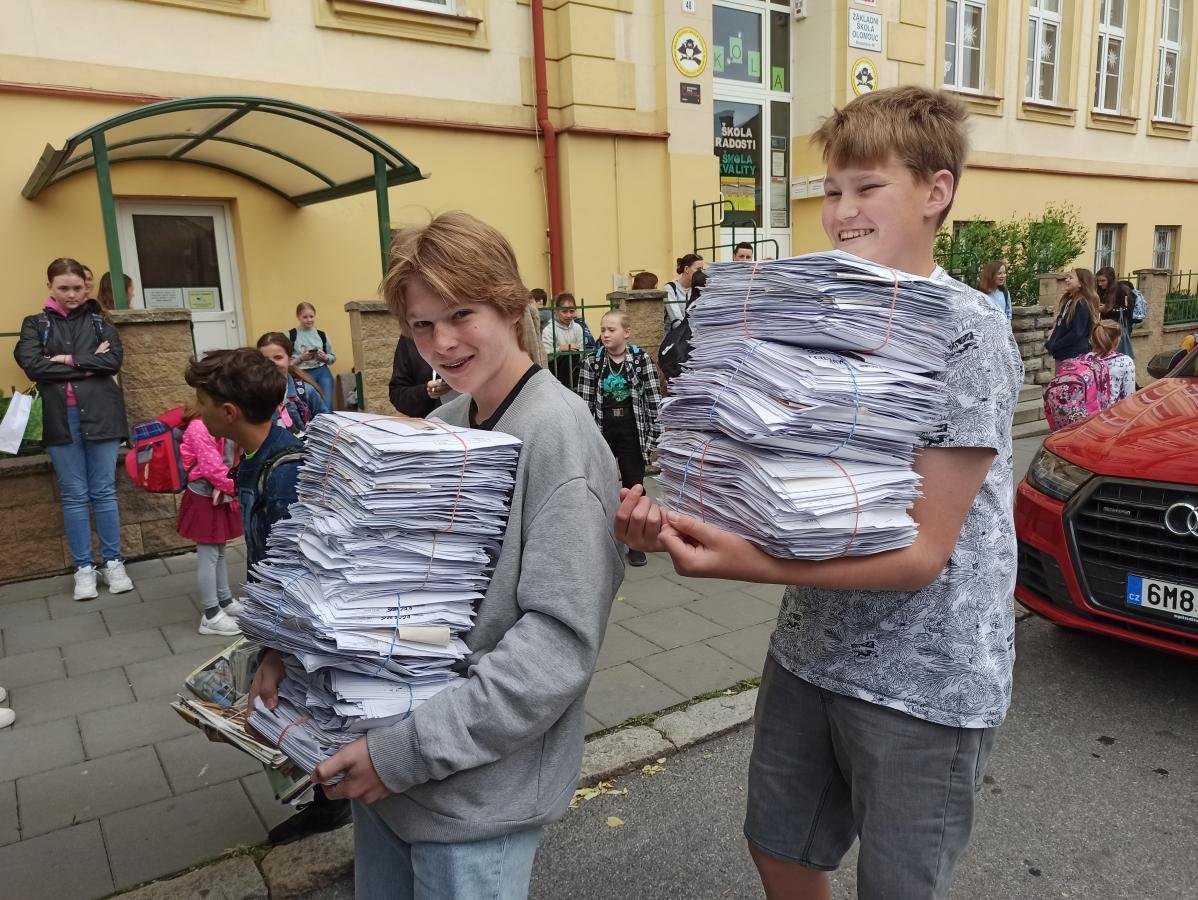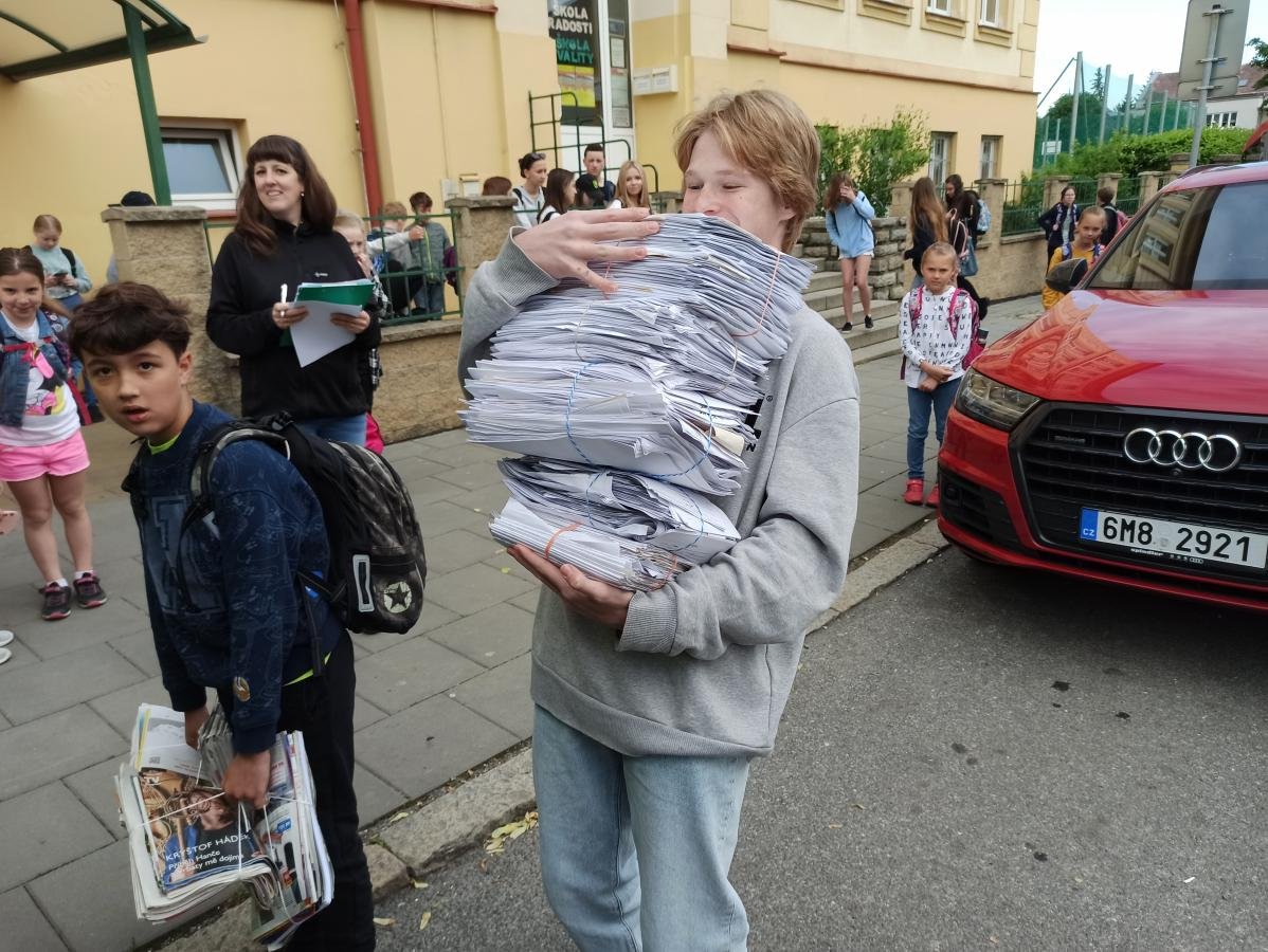 Ve dnech 23. až 27. května 2022 proběhl na naší škole sběr starého papíru. Soutěžilo se mezi třídami i jednotlivci o nejlepšího sběrače. Zapojili se žáci prvního i druhého stupně. V kategorii tříd se na prvním místě umístila třída 4. B s celkovým množstvím 598 kg nasbíraného papíru, na druhém místě 1. A (428 kg) a třetí místo obsadila třída 6. A (426 kg). Mezi jednotlivci zvítězila Monika Bartoňová ze třídy 4. B, která nasbírala celkem 294 kg starého papíru. Na druhém místě pak Markéta Bartoňová ze třídy 2. A a na místě třetím Karla Salajková ze třídy 6. A. Mezi dalšími oceněnými byli Klára Hubáčková (1. A), Ema Salajková (1. A), Eva Ostřanská (4. B), Matěj Říha (3. A) a Alice Hubáčková (6. A). Celkem se letos podařilo nasbírat 4 045 kg starého papíru.