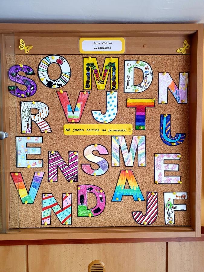 Zahráli jsme si různé hry, kde jsme se blíže poznali. Zjistili jsme, že nejvíce dětí v naší školní družině má hnědé oči a nejzajímavější domácí mazlíček je podle dětí pavouk. Děti si malovaly svoje oblíbené písmeno, které je mělo charakterizovat.