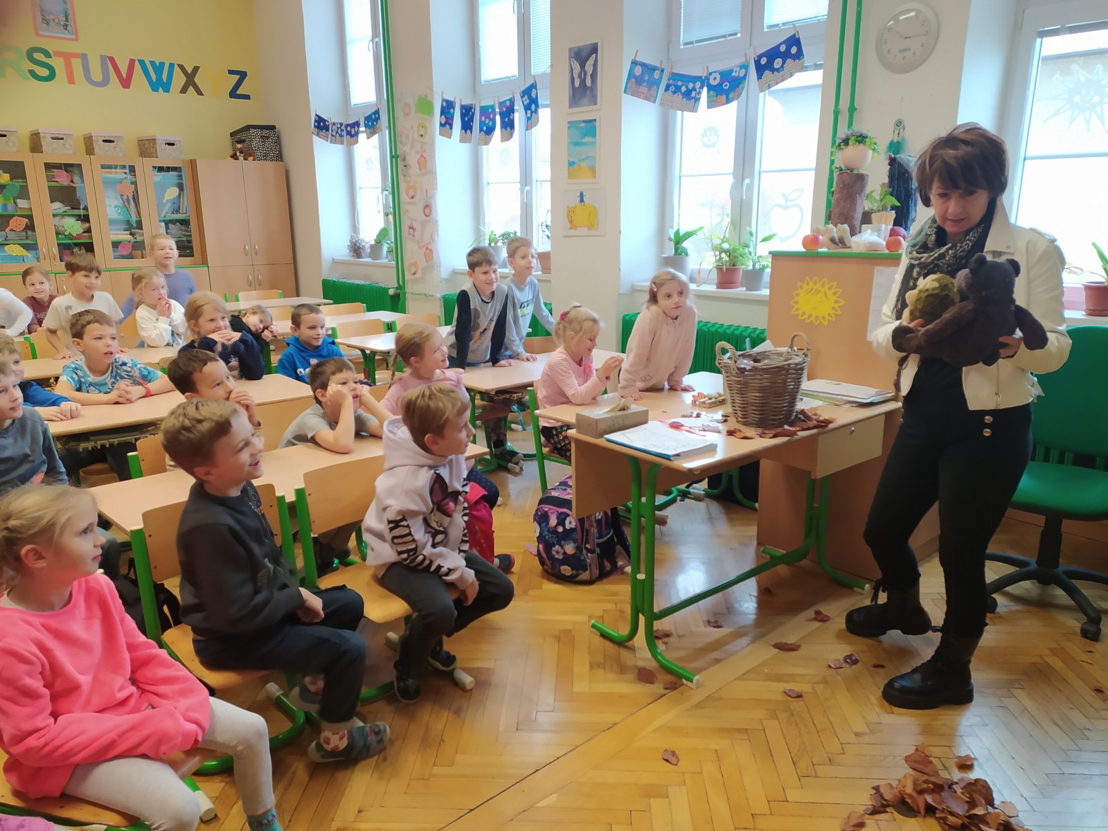 Děti si v průběhu společné hodiny užily zpěv, čtení i dramatizaci s maskoty; plyšovým medvídkem Jožánkem a jeho kamarádem ježečkem Bohouškem. Zvířátka se s dětmi rozloučila před zimním spánkem. Na jaře se k našim prvňáčkům opět vrátí a poslechnou si, jestli naši malí čtenáři nezaháleli a práci se Slabikářem věnovali potřebný čas.