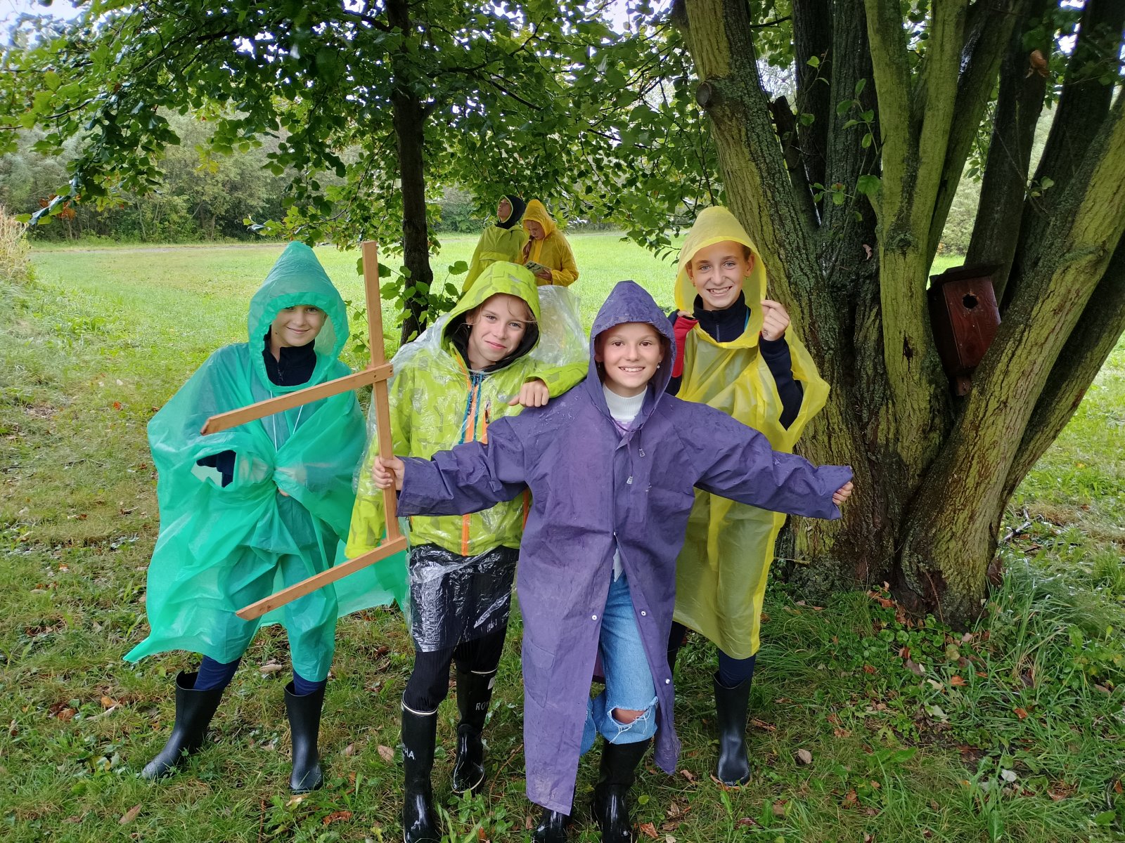 Ačkoliv počasí nebylo ideální a celý den bylo deštivo, děti se díky pláštěnkám a gumákům nevzdaly a s nadšením zvládly všechny úkoly. Den strávený v přírodě se nakonec vydařil.