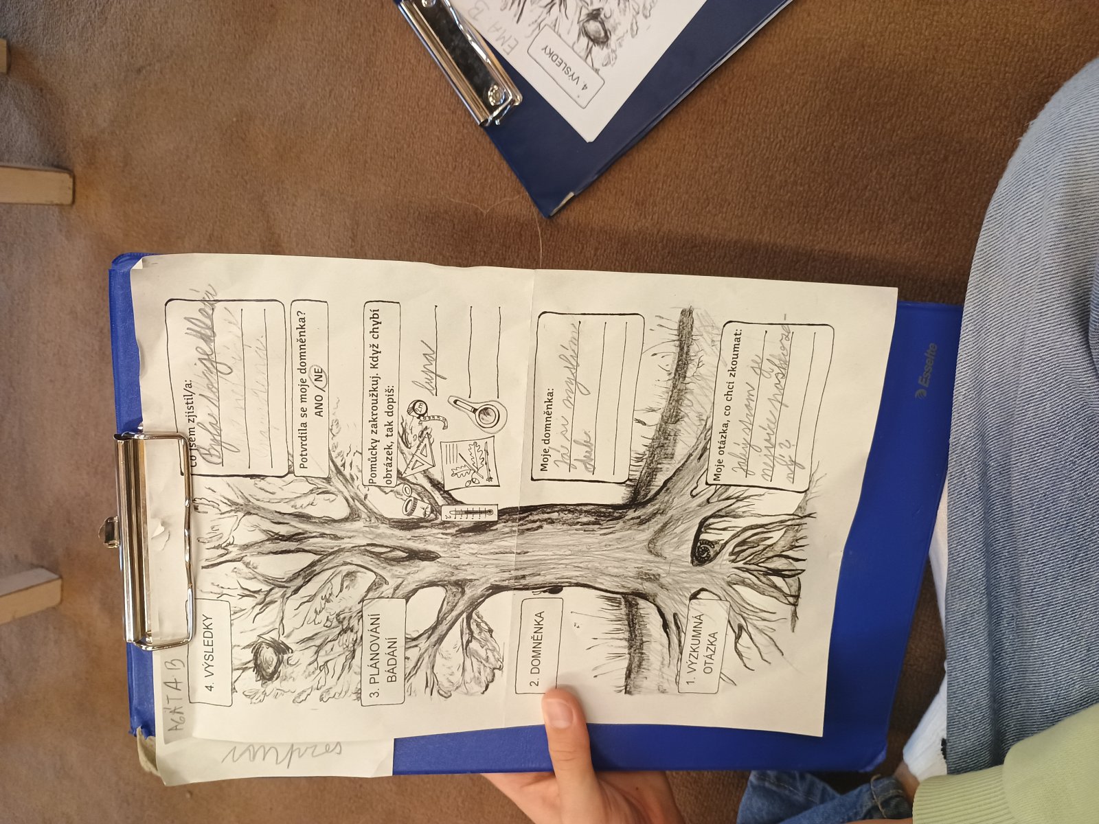 Během tohoto dne se děti ponořily do role malých vědců. Stromy a keře, které jsou běžnou součástí našeho okolí, jim najednou nabídly příležitost k objevování. Dopoledne začalo tím, že si děti samy zvolily téma svého zkoumání. Napsaly hypotézu, vybraly potřebné pomůcky a následně se vydaly do přírody, kde se pustily do terénního výzkumu. Po návratu prezentovaly své výsledky a sdílely, co o stromech a keřích zjistily.