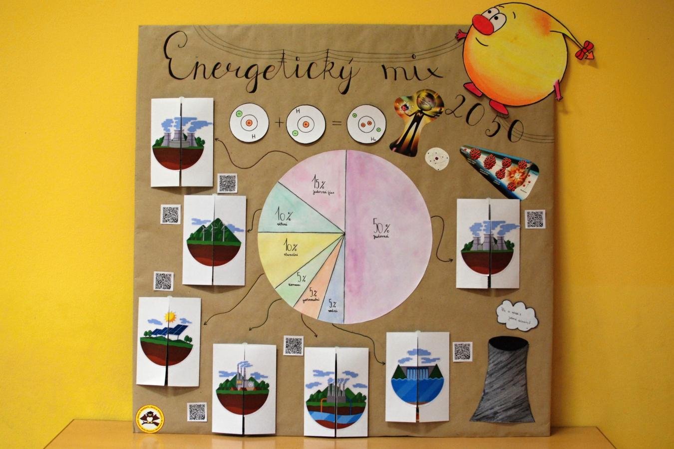 Výroby LAPBOOKu se zhostil tým sestavený ze zapálených žáků 9. ročníku. Zvolili si budoucnost relativně nedalekou, a to Energetický mix pro rok 2050. Tvorbě "koláče" předcházela diskuze žáků, kolik procent si jednotlivé energetické zdroje v budoucnu z tohoto koláče ukrojí. Další diskuze proběhla nad grafickým designem a způsobem uchycení jednotlivých částí lapbooku. Po společné shodě nad procenty i designem jsme se pustili do práce.