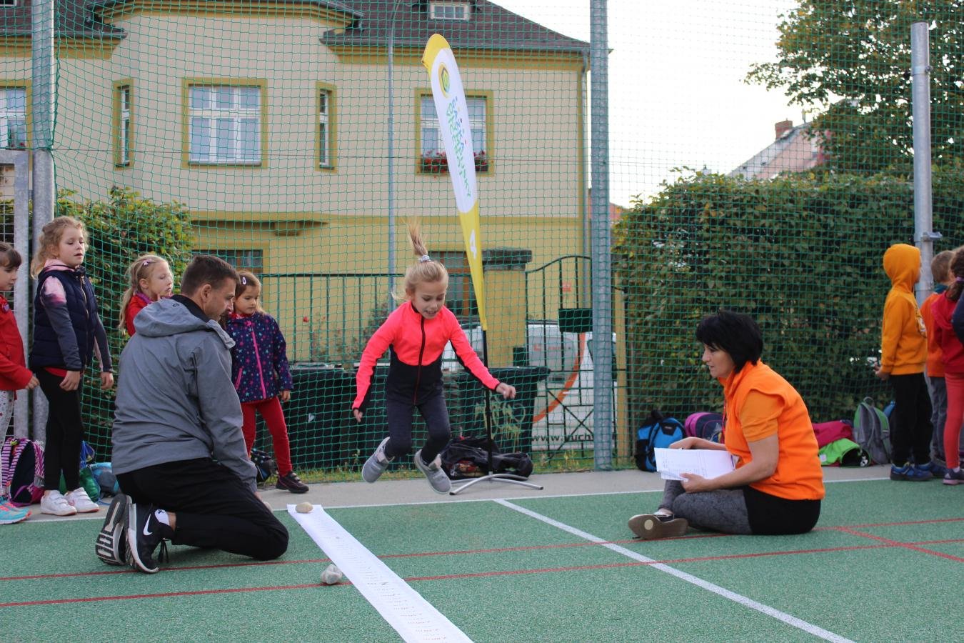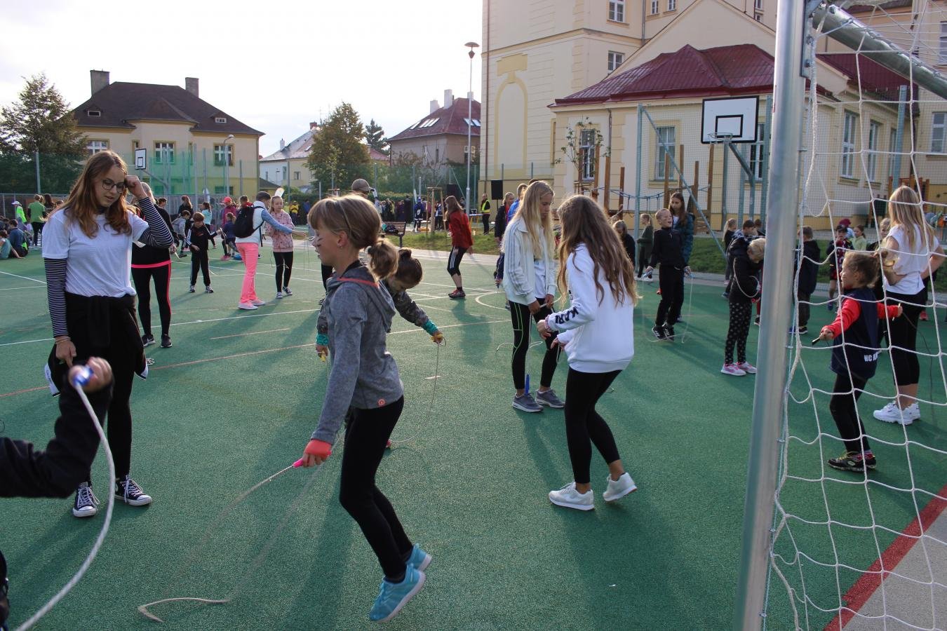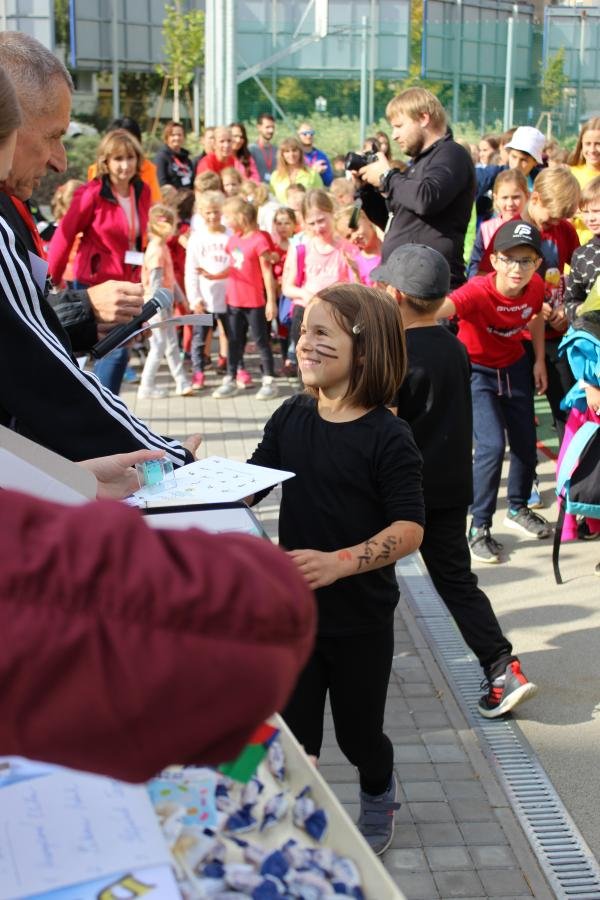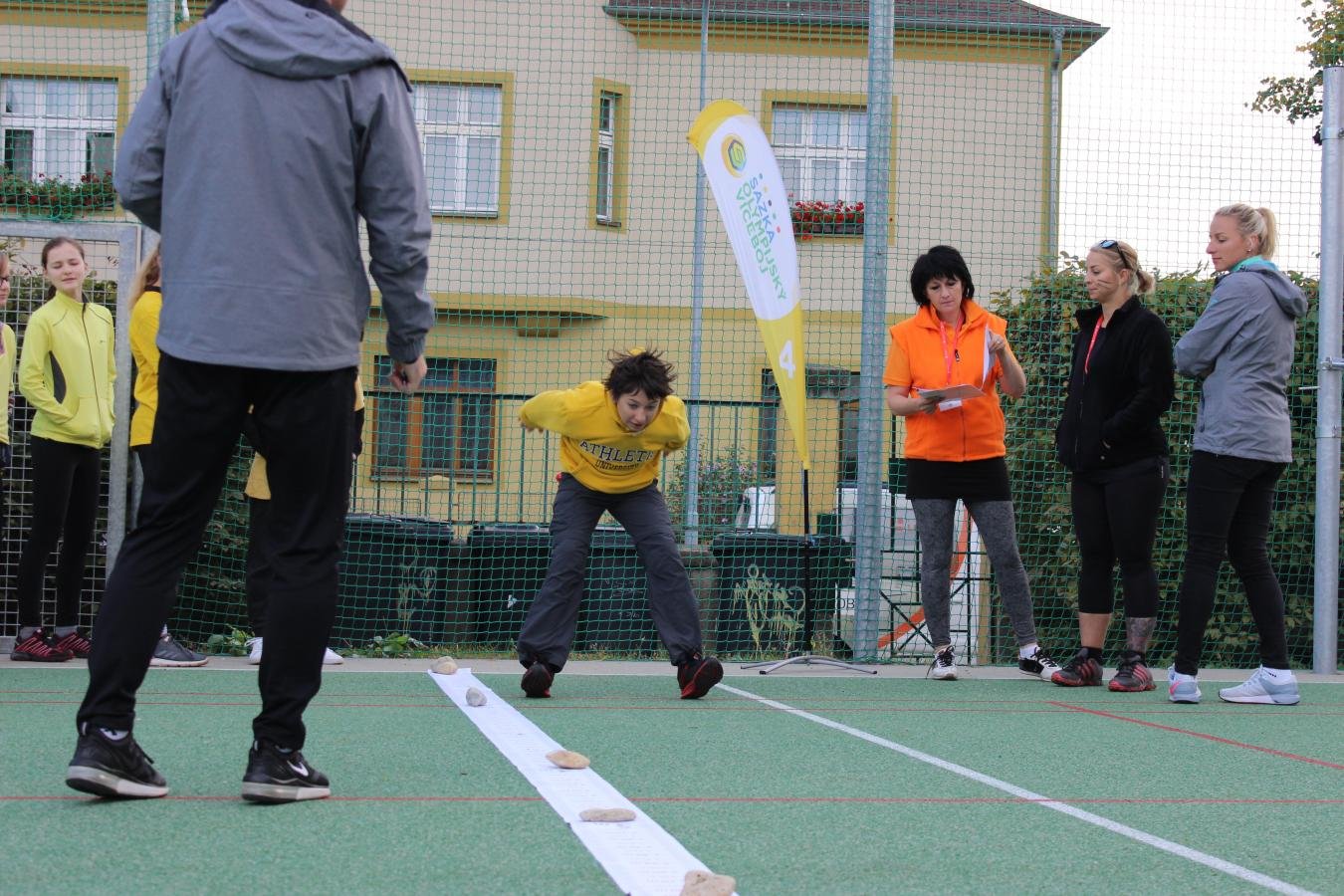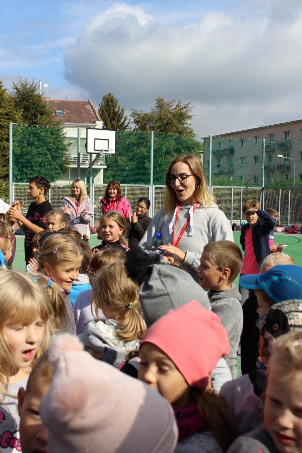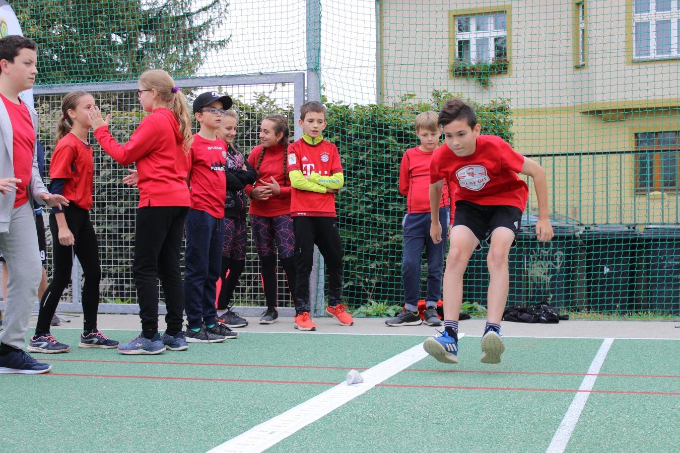 Dne 26. 9. 2019 se na naší škole konal již dlouho slibovaný a připravovaný Sportovní den. Děti si vyzkoušely tři disciplíny z Odznaku všestrannosti olympijských vítězů (OVOV): Skok/ trojskok z místa, přeskok přes švihadlo a sed-lehy. Po absolvování víceboje si děti vyzkoušely: lukostřelbu, petanque, kuličky, střelbu na florbalovou branku a zahrály si vybíjenou. Zároveň probíhal závod vítězů jednotlivých tříd v běhu na 50 metrů a skoku dalekém. Finále Sportovního dne vyvrcholilo exhibičním utkáním v kopané, kdy naši žáci posíleni Martinem Hálou z SK Sigma Olomouc hráli proti učitelům, kterým pomáhali florbalistky Vlaďka Maděrová, Lucie Suchánková (1. SC Tempish Vítkovice) a Vít Beneš, kapitán SK Sigma Olomouc.